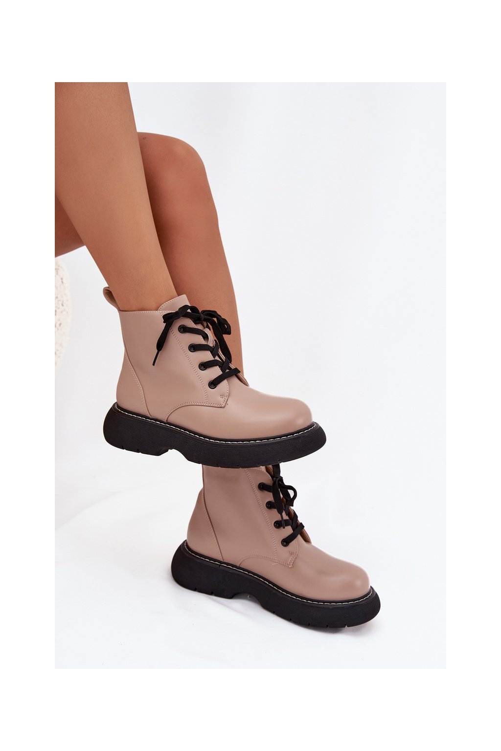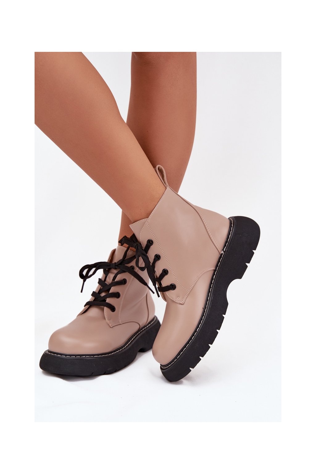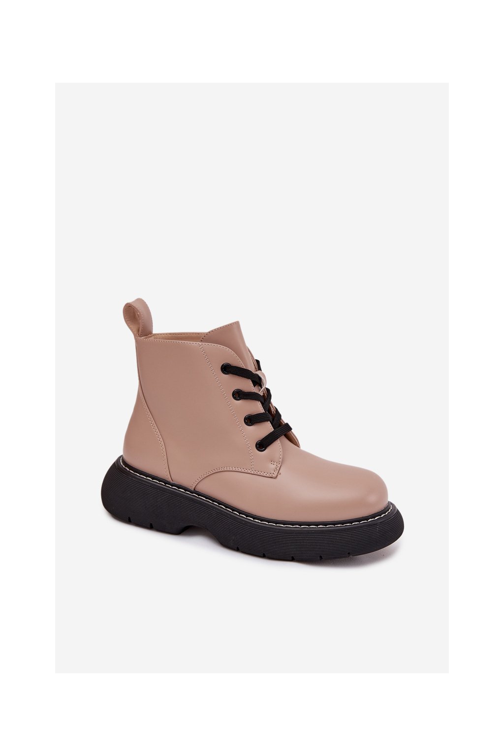 Zateplené dámske členkové topánky na platforme na šnurovanie béžové Harmine LQ-26 Khaki