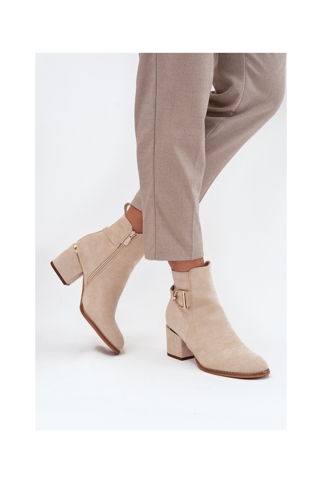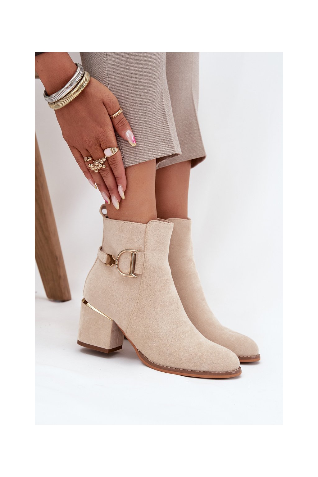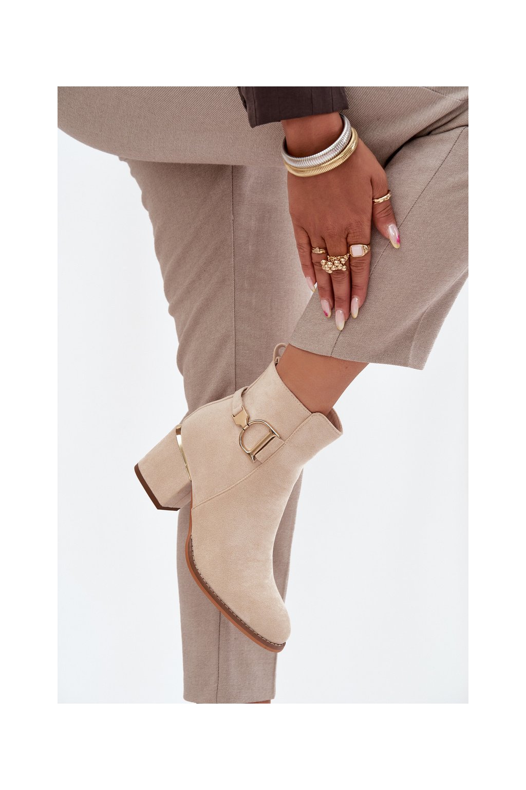 Zateplené dámské kotníkové boty na podpatku se zlatými prvky světle béžové Ambrine