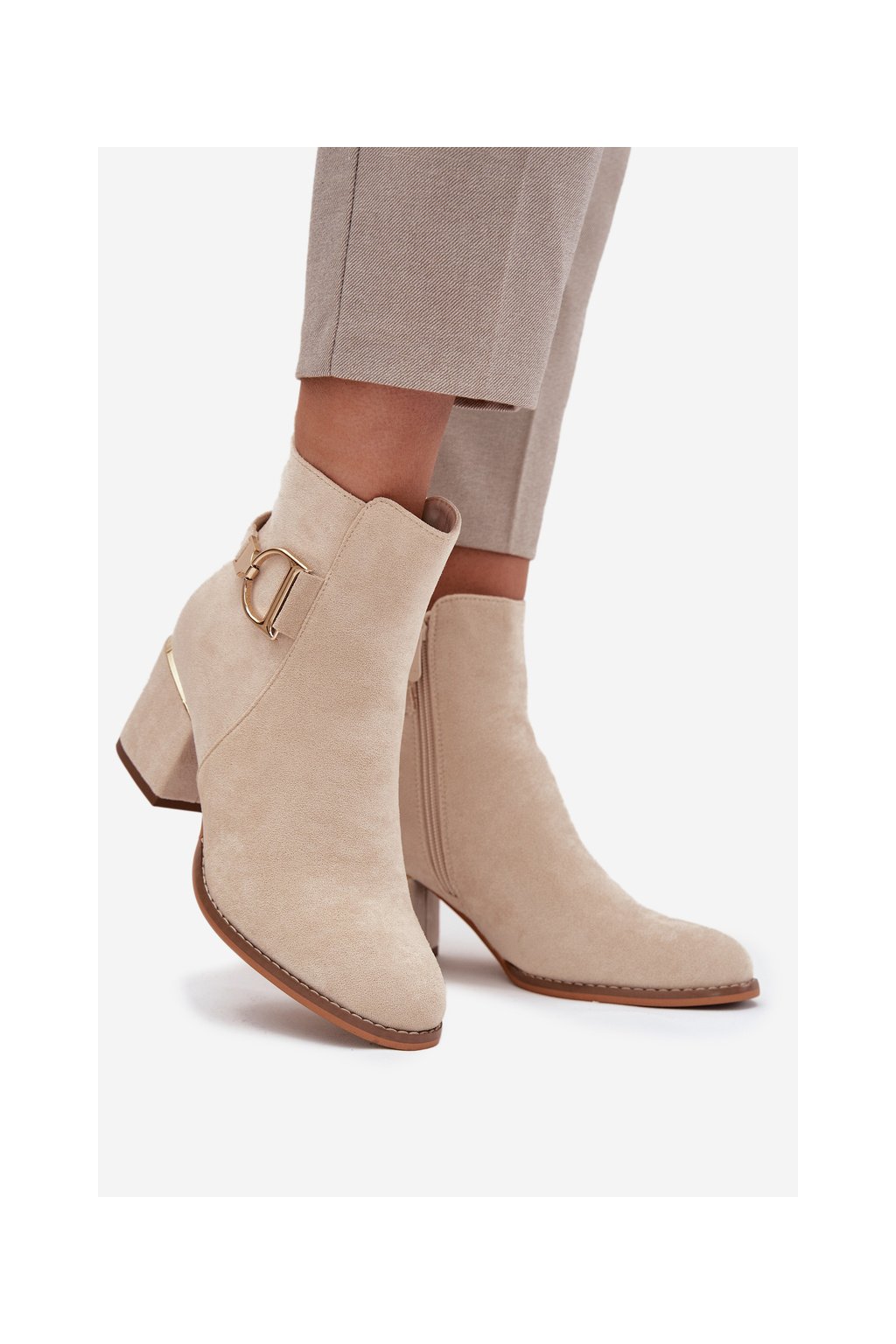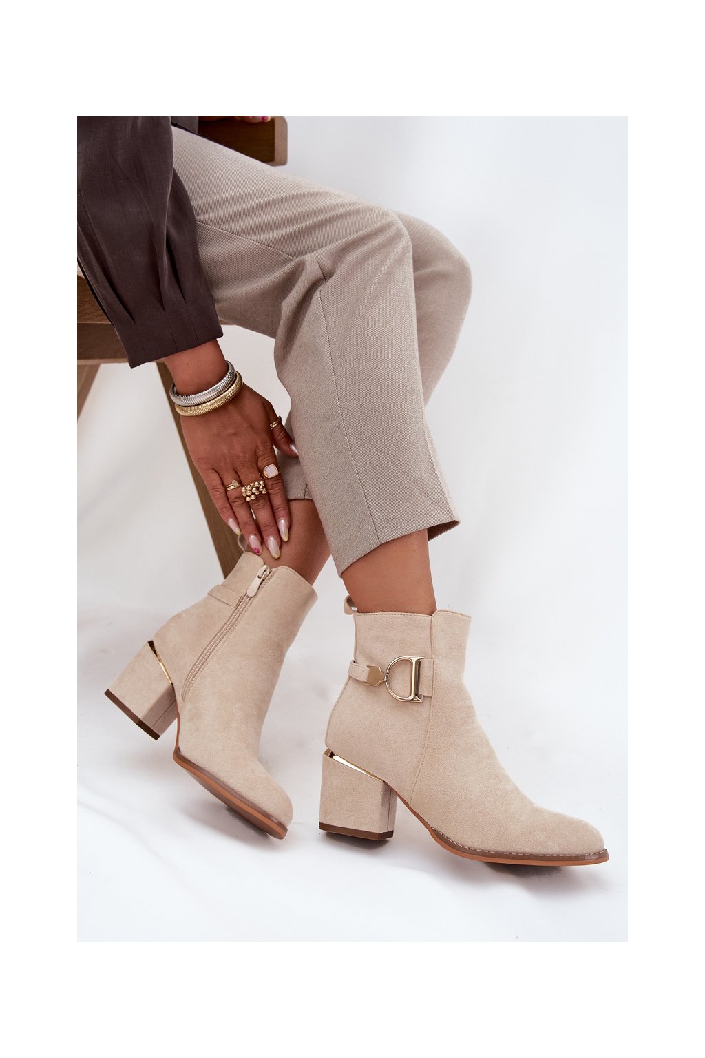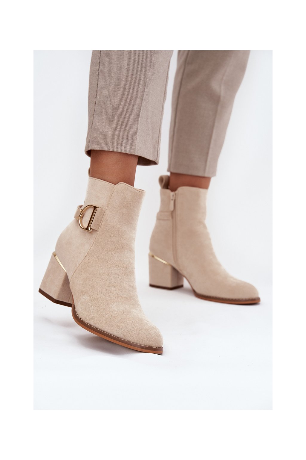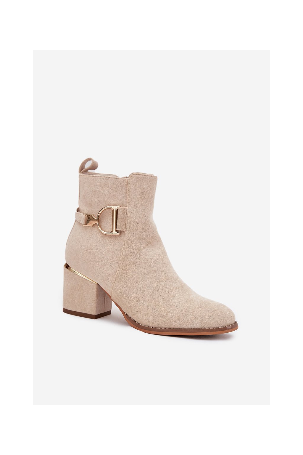 Zateplené dámské kotníkové boty na podpatku se zlatými prvky světle béžové Ambrine