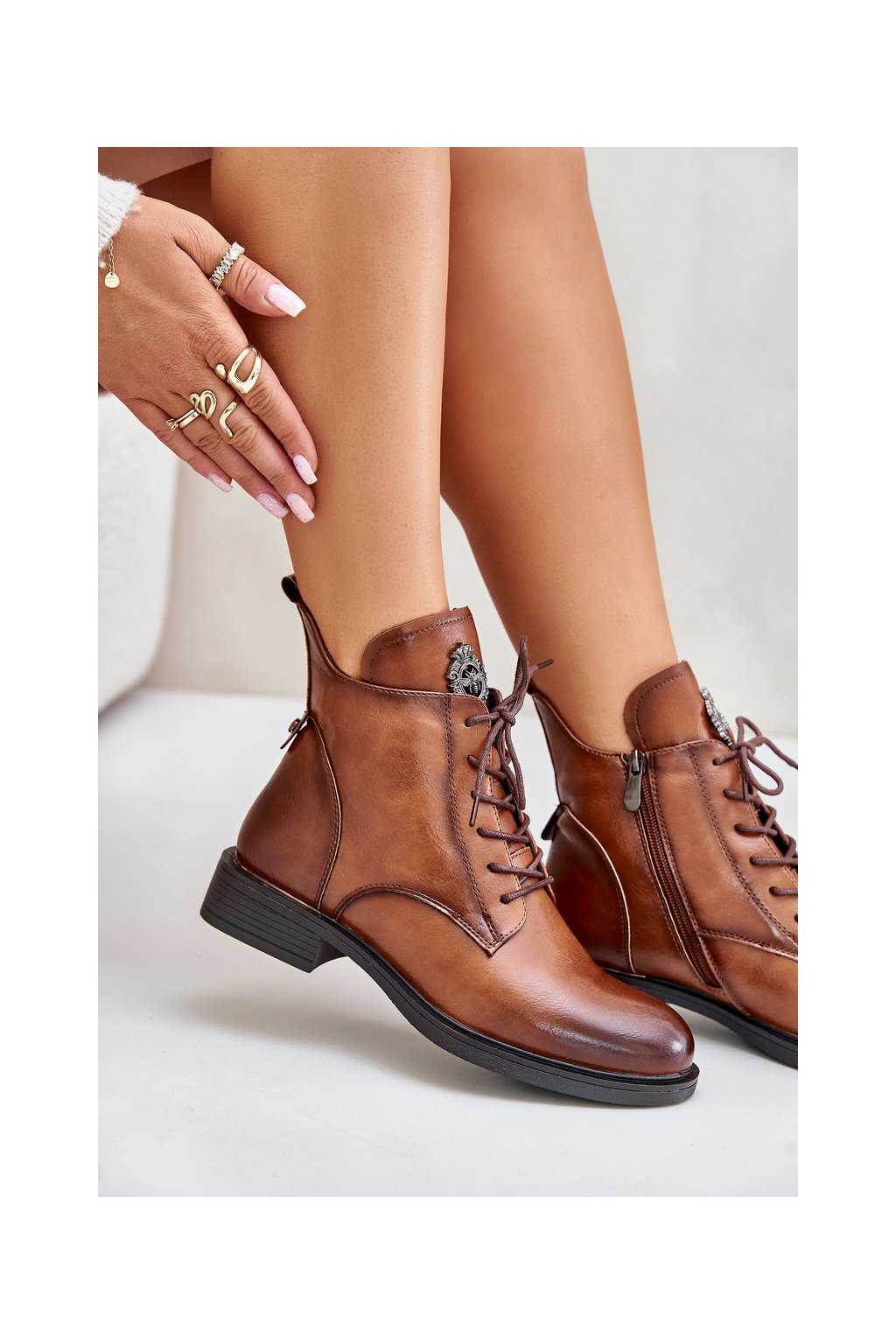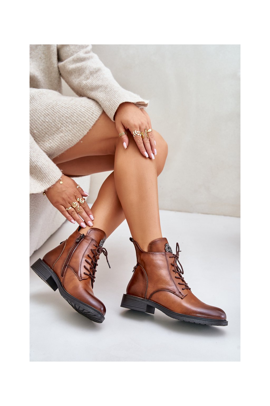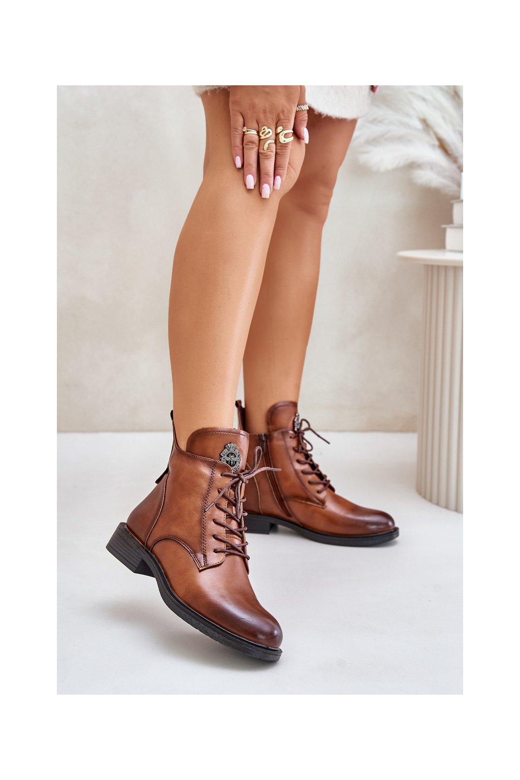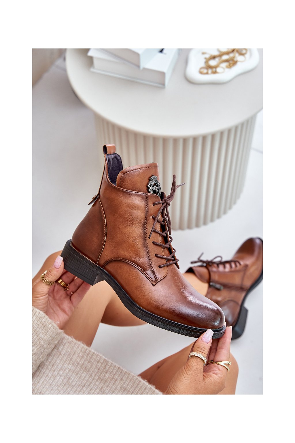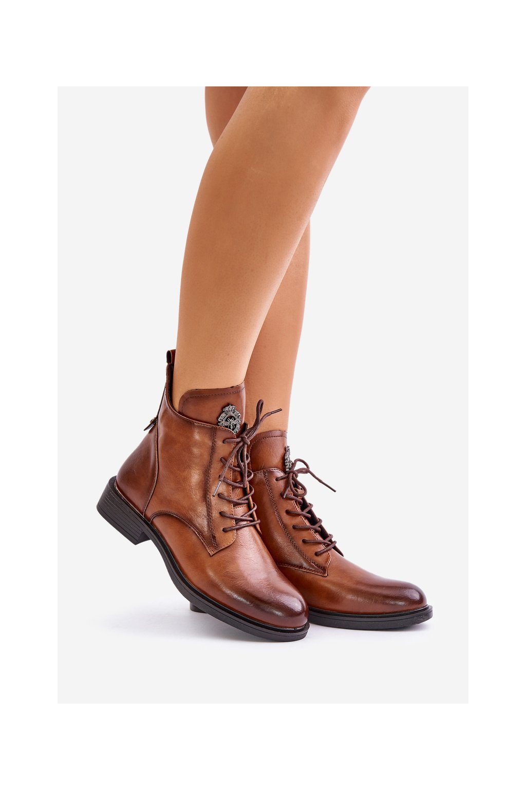 Zateplené kotníkové boty na plochém podpatku s ozdobou Camel Leonise