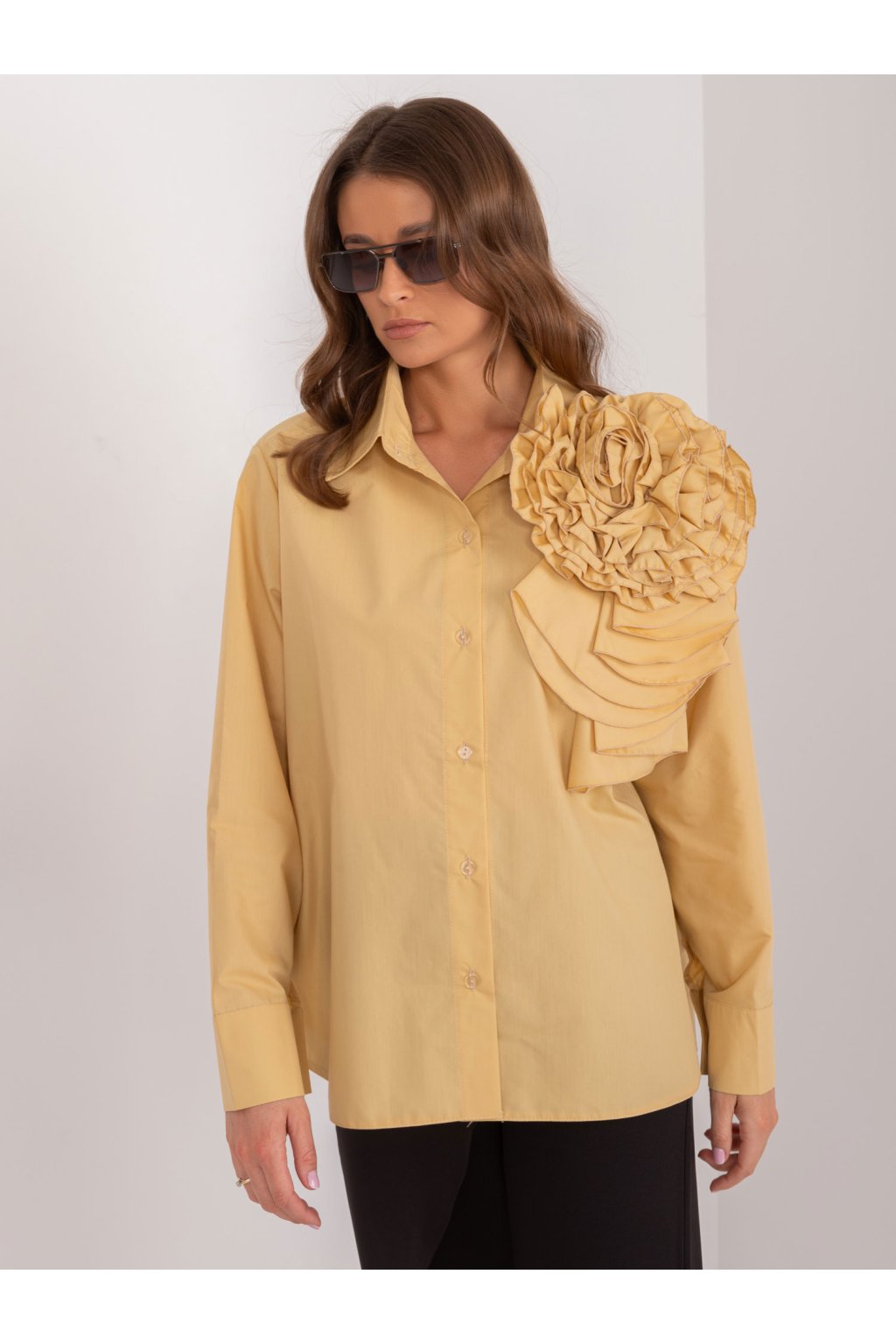 Dámske Košeľa farba Tmavo-žltá kód LK-KS-509612.28
