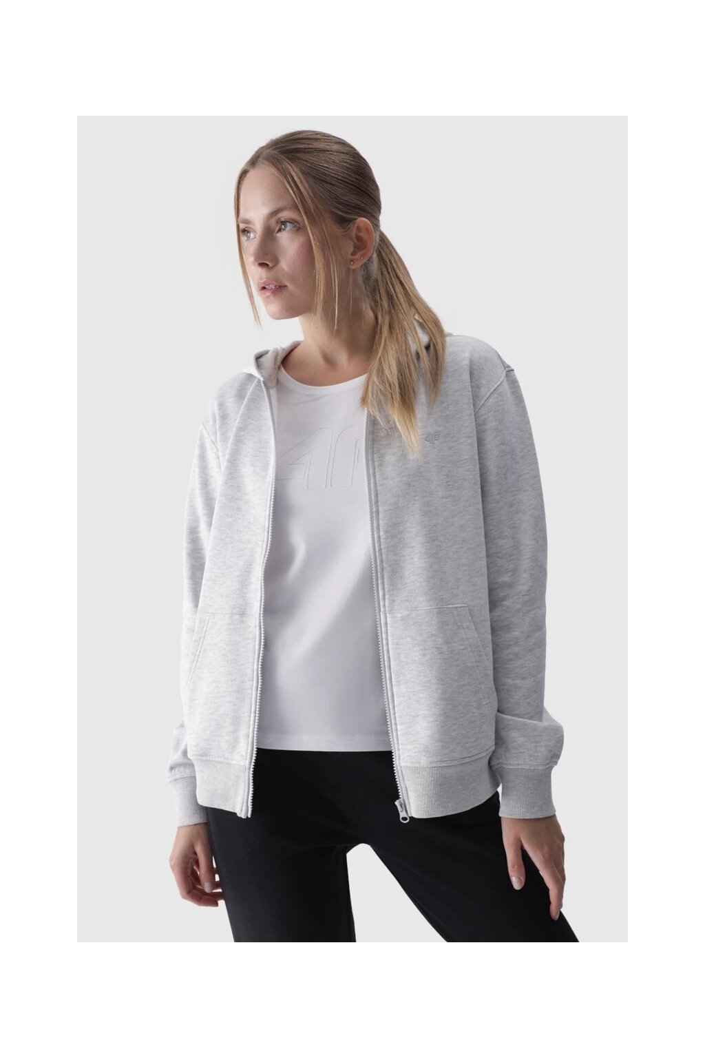 Dámska sivá mikina s kapucňou na zips z bavlny 4F F1467-27M