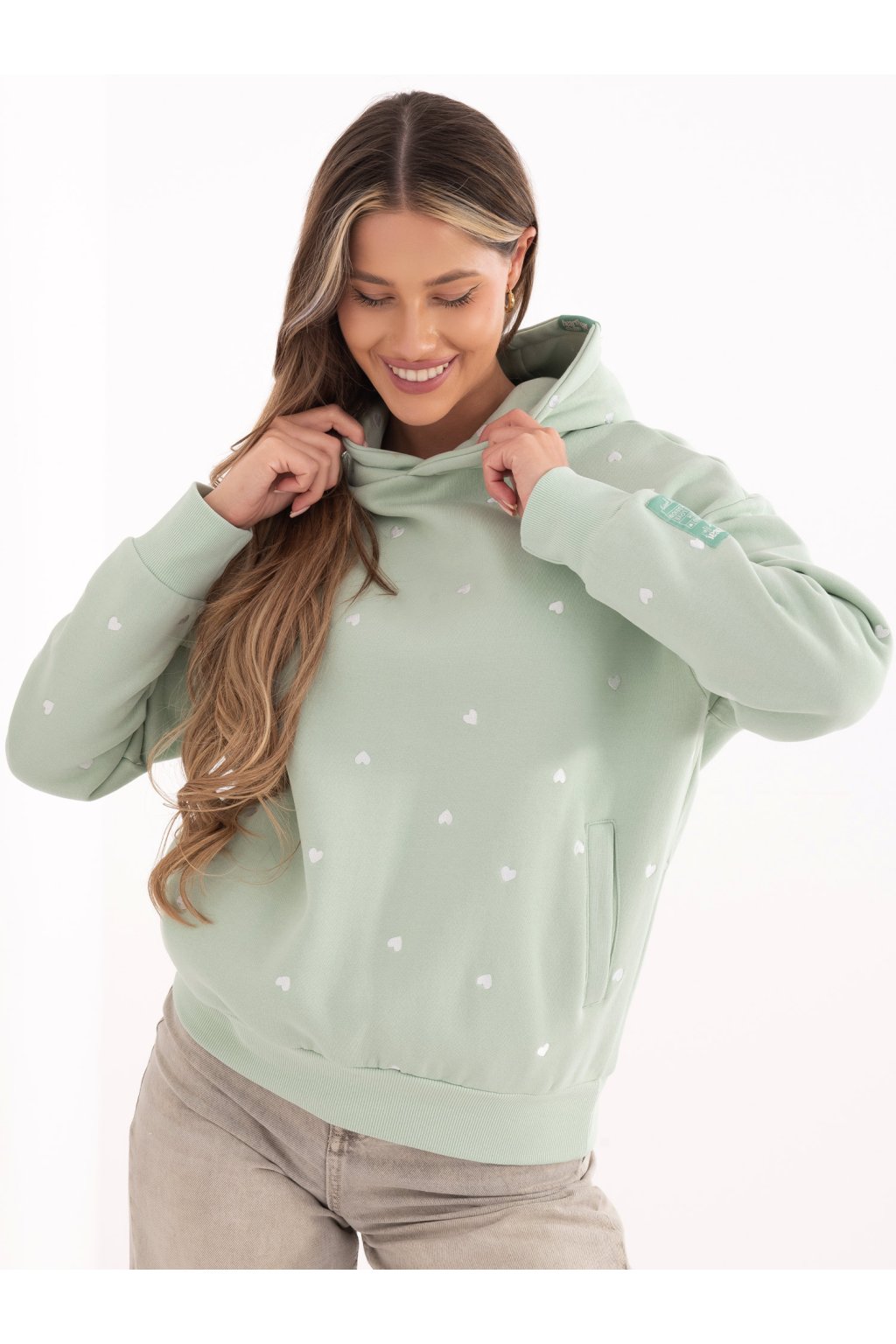 Dámska pistáciová športová mikina s kapucňou D10618BC02834A3