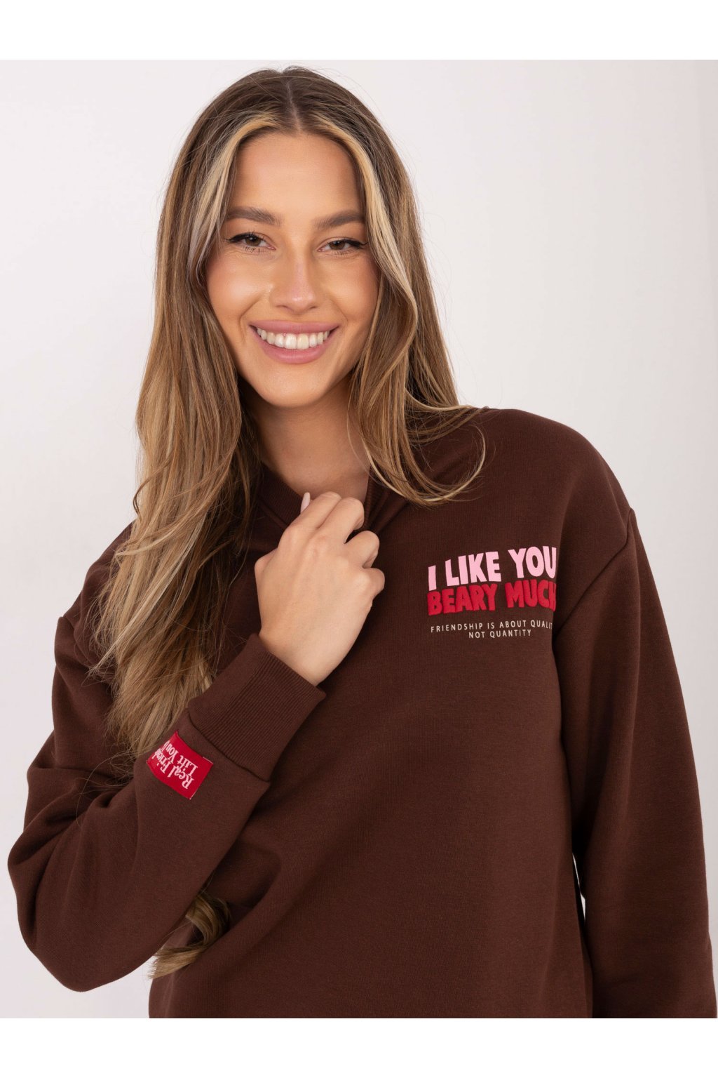 Dámska tmavo-hnedá športová mikina s podtlačou D10608BC02568J