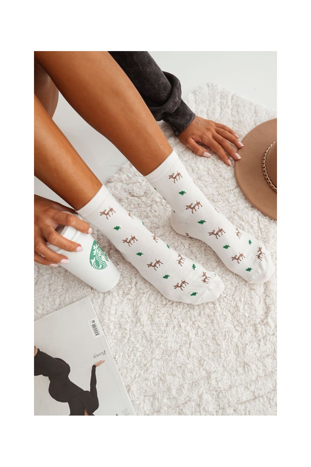 Biele dámske ponožky s módnym vzorom, bavlnené, kód produktu SK.34637
