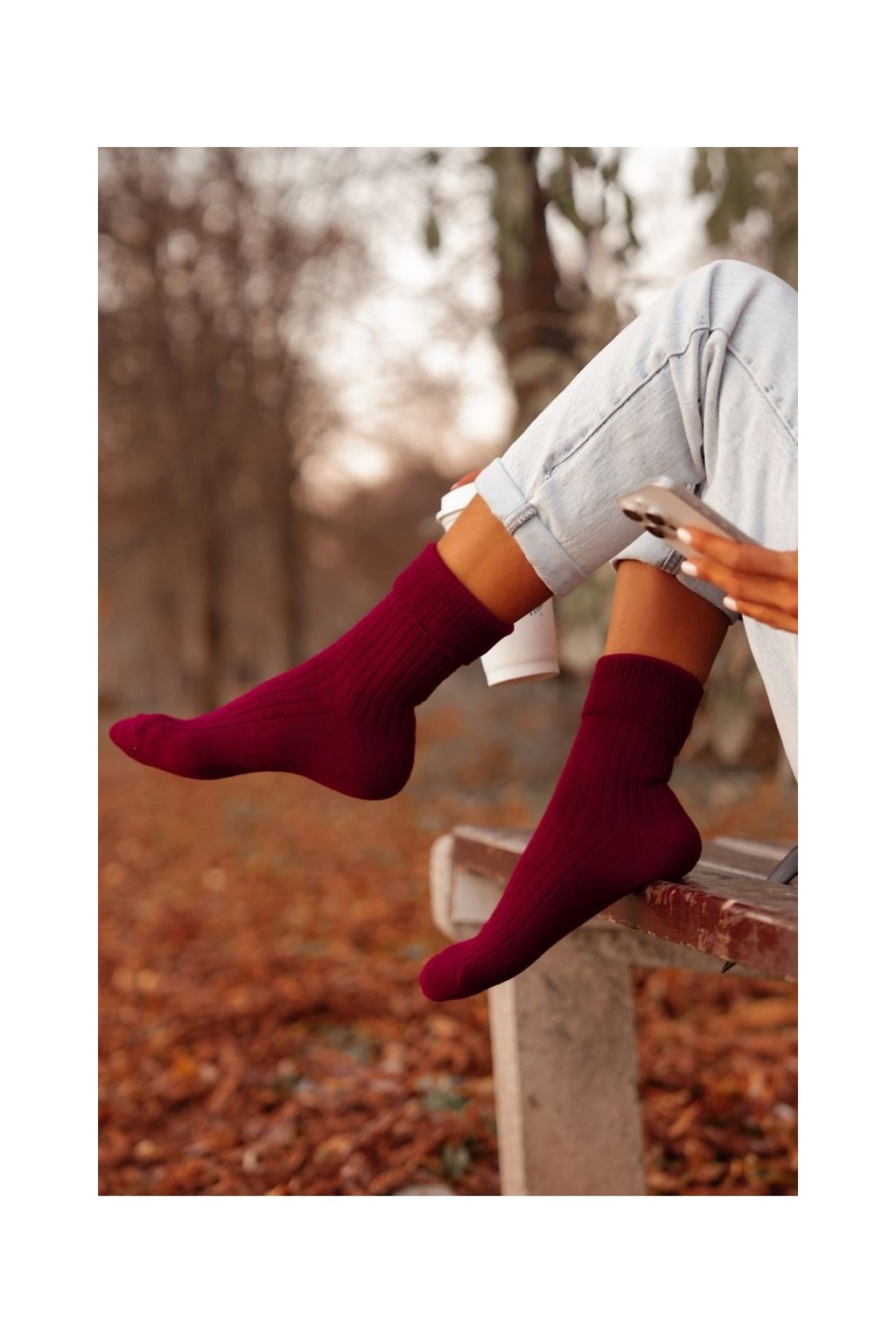 Červené dámske vlňové ponožky s elastanom, kód produktu SK.34901