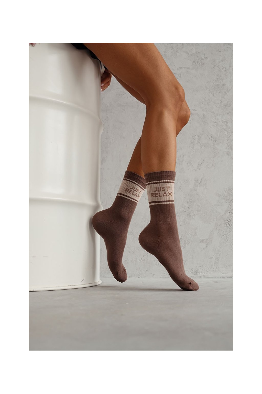 Hnedé dámske bavlnené ponožky s elastanom, kód produktu SK.34654