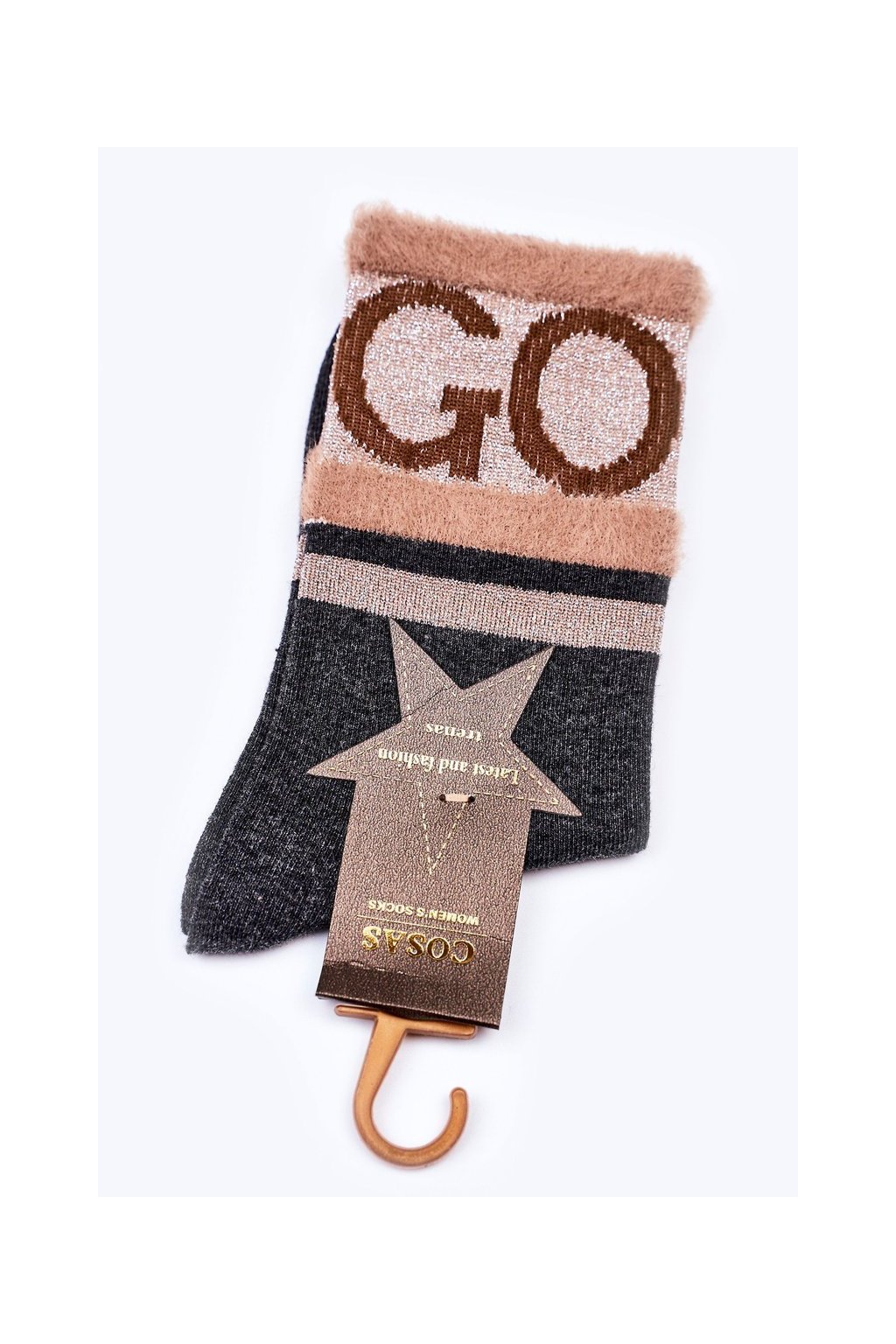 Čierno-biele dámske teplé módne ponožky sivá farba, bavlna, jeseň/zima, kód produktu ASP6 - GM
