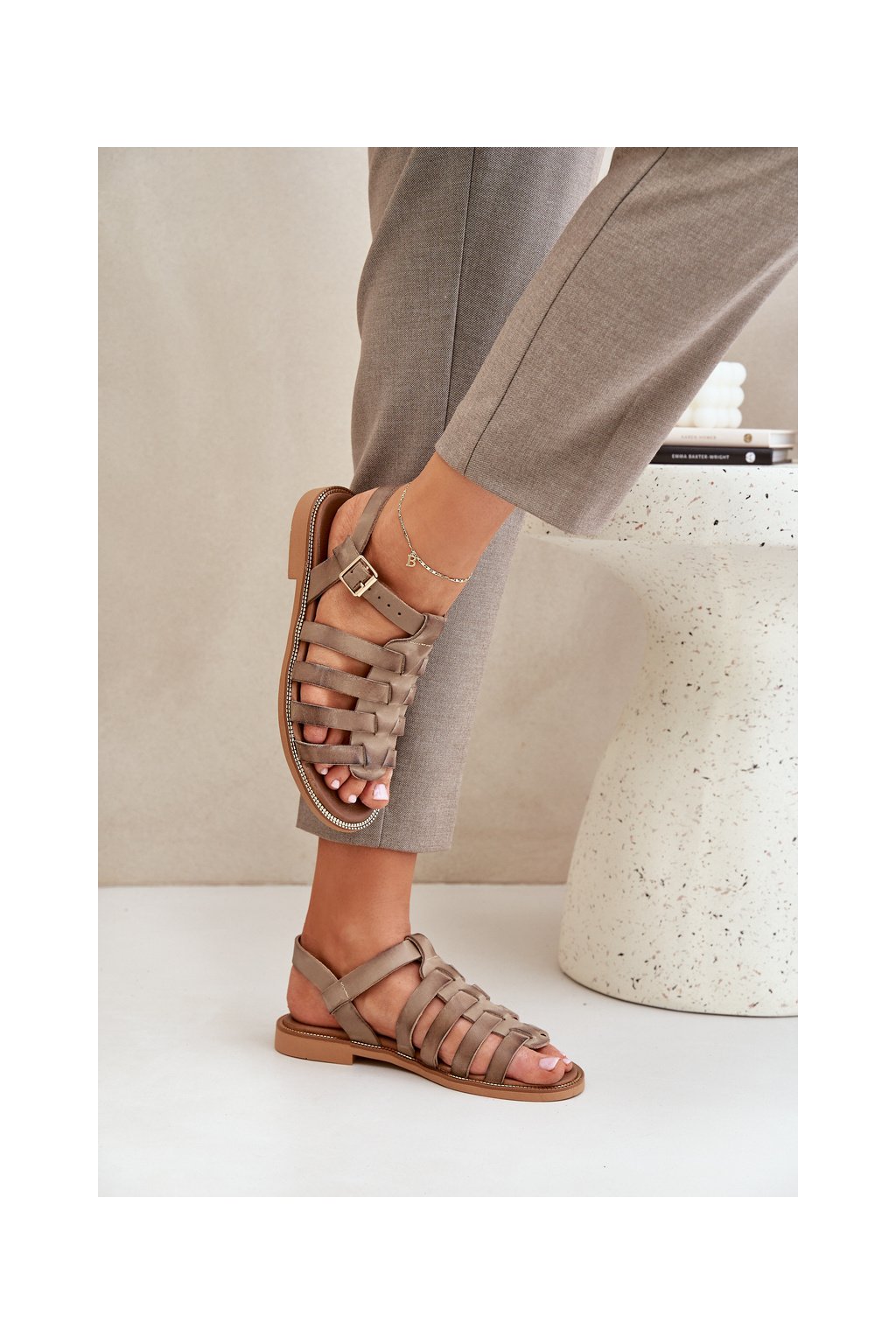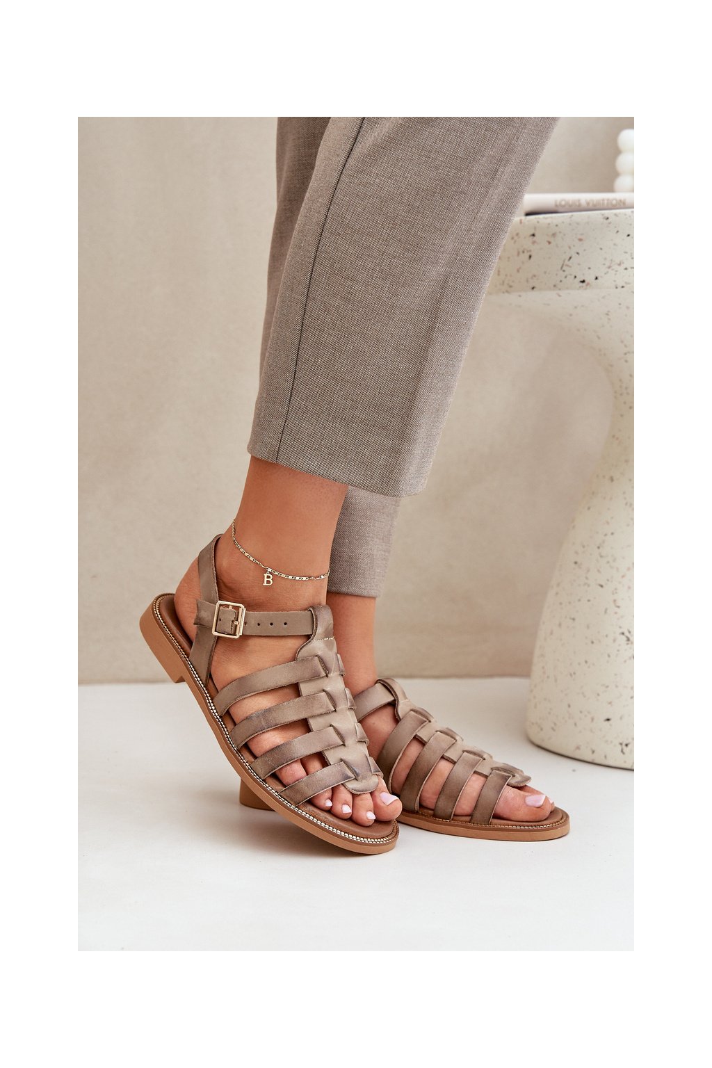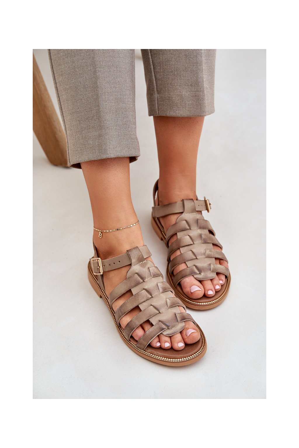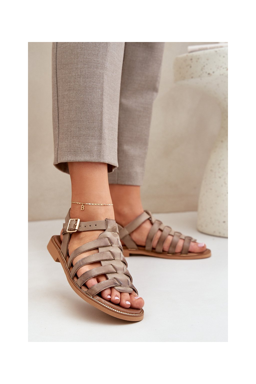 Dámske béžové sandále z prírodnej kože s prackou, kód 3686 BEŻ NAPPA