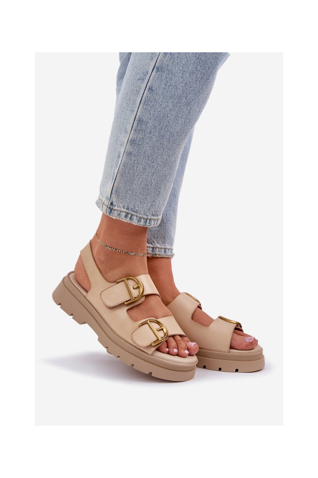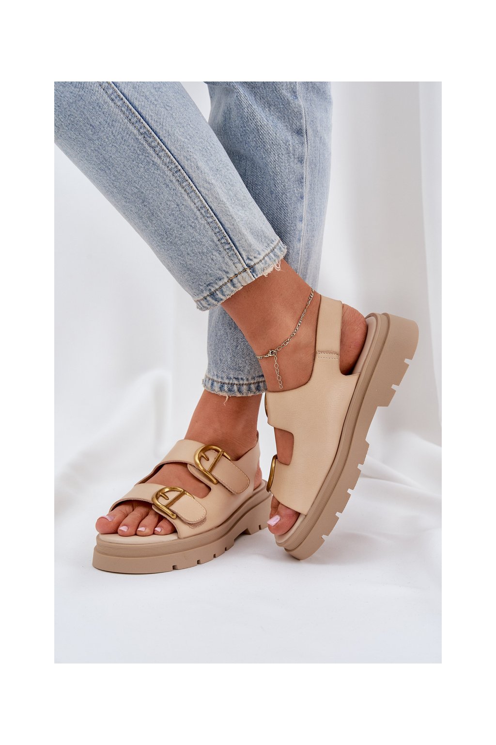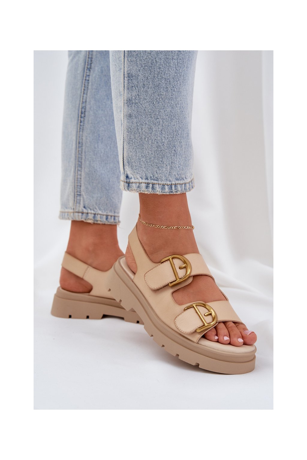 Dámske béžové sandále na plošom podpätku z eko kože AI18 BEIGE