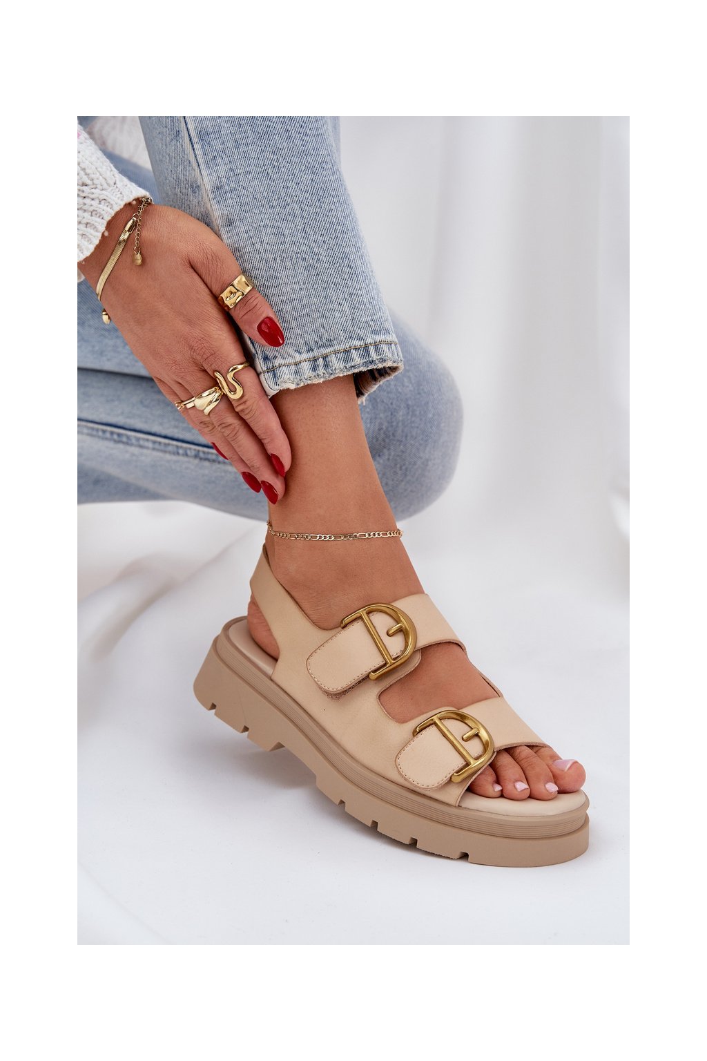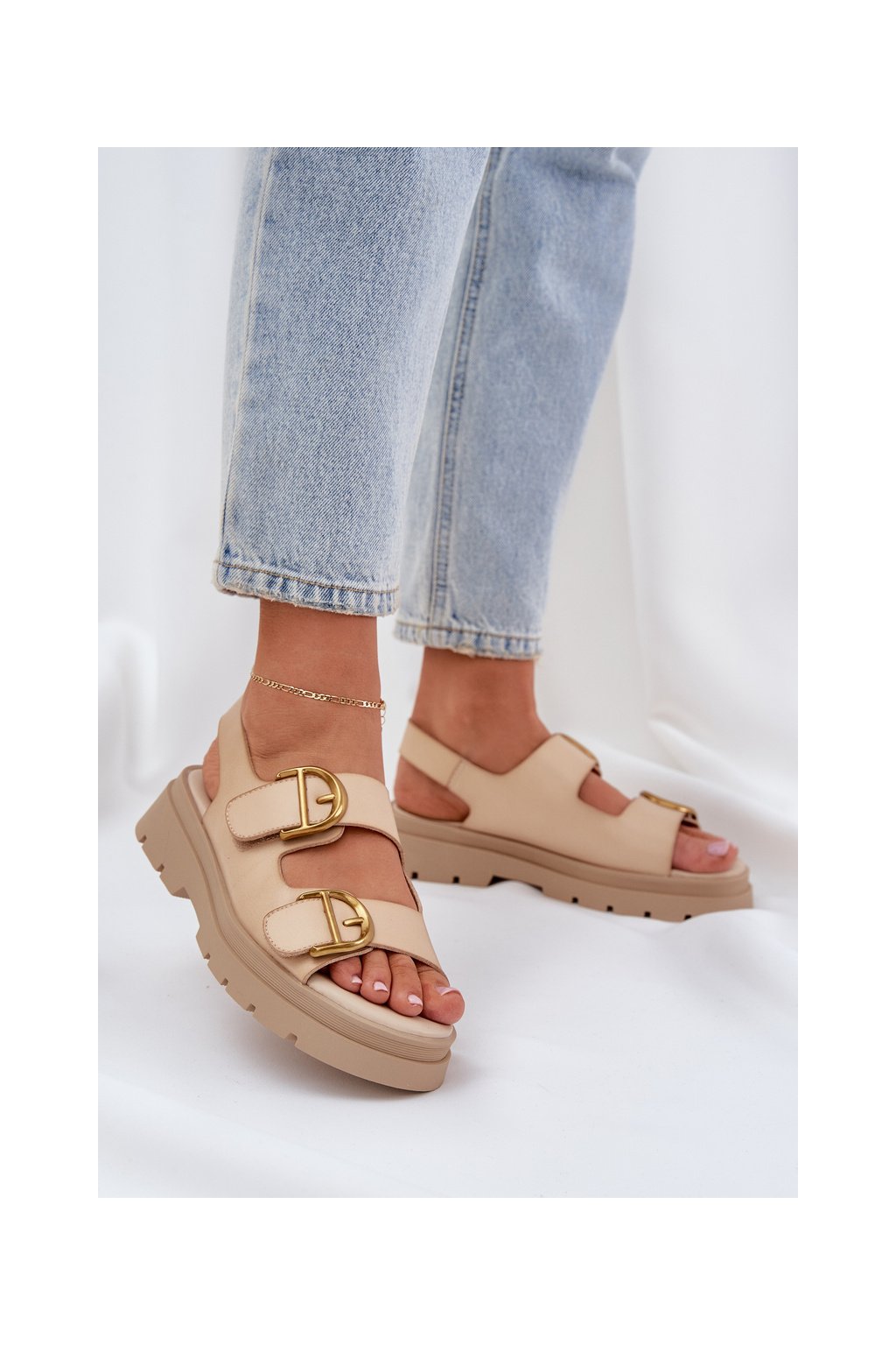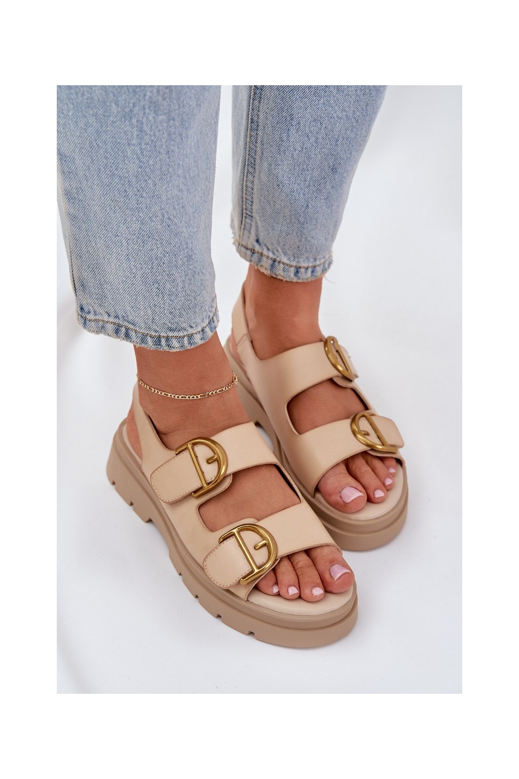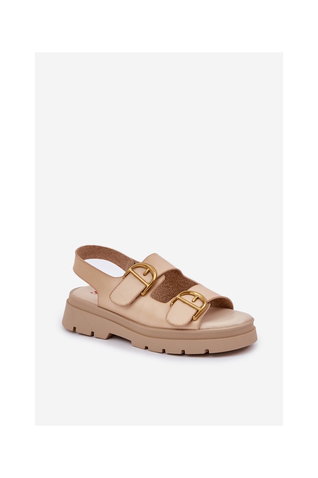 Dámske béžové sandále na plošom podpätku z eko kože AI18 BEIGE
