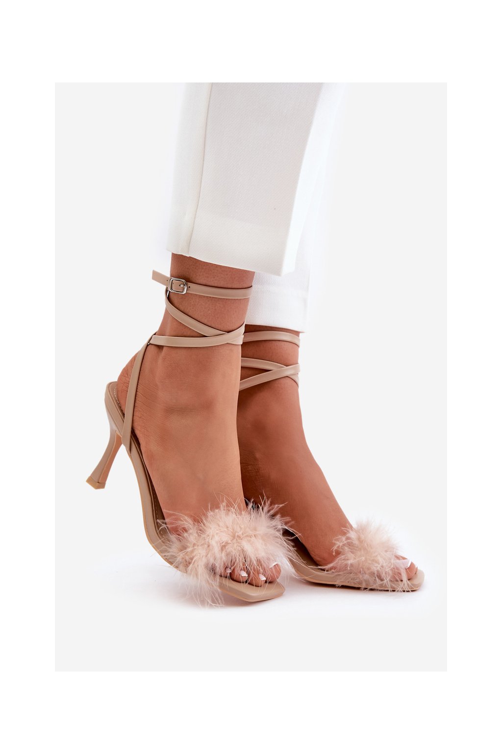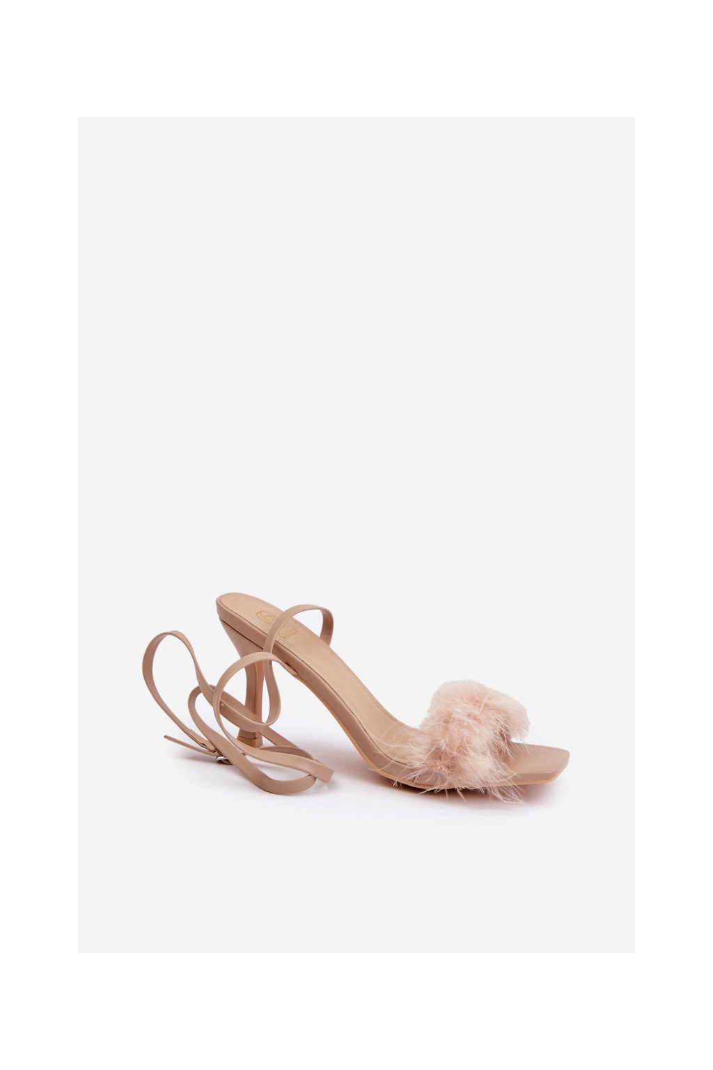 Béžové dámske ihlové sandále s eko kožou na podpätku JRX2402 NUDE