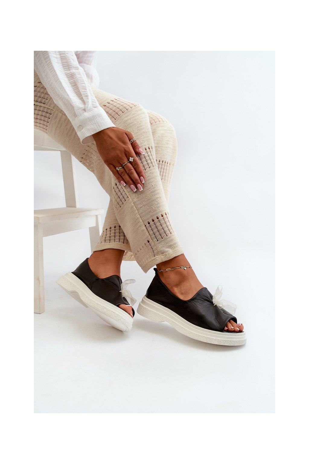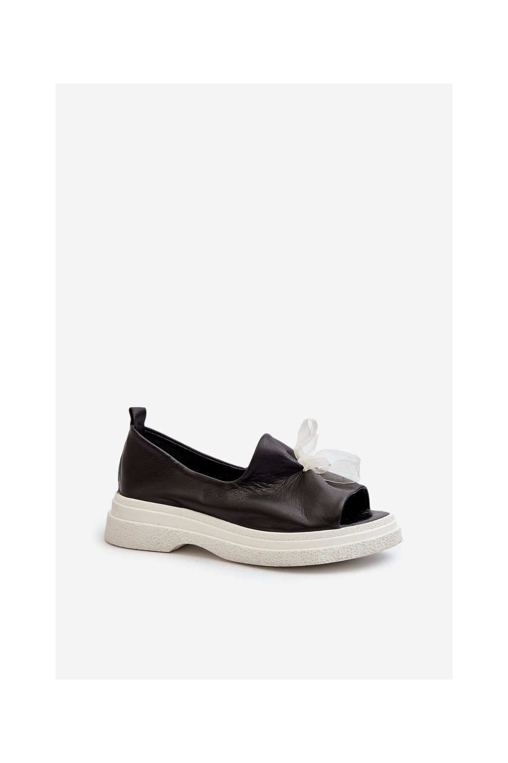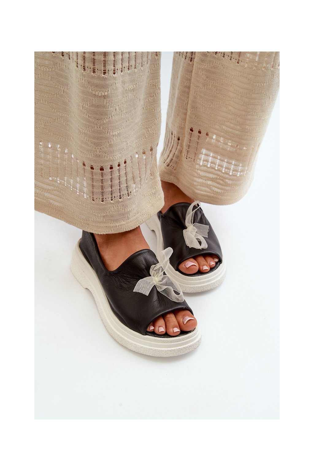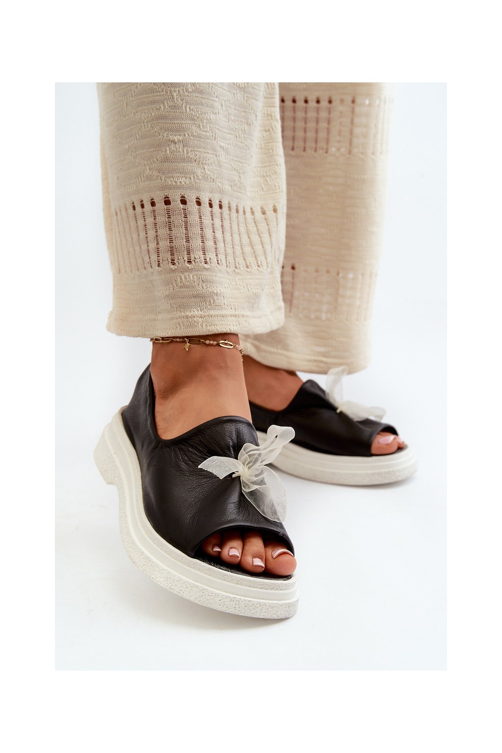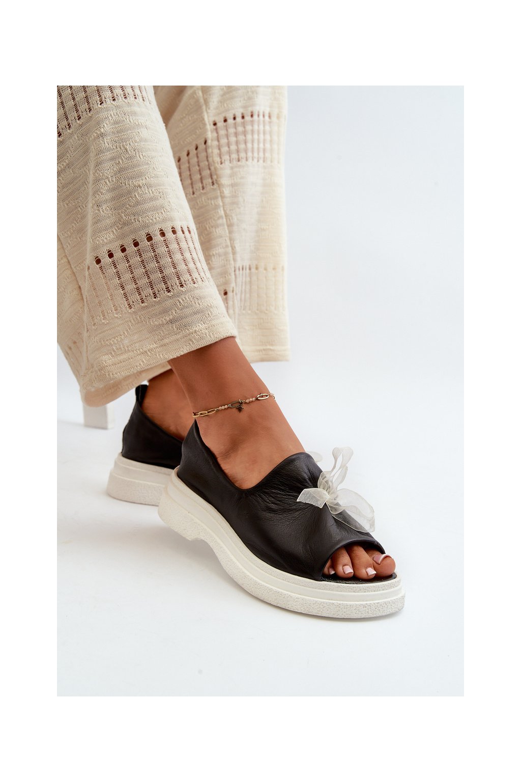 Zazoo 2939 Dámske kožené Sandále s mašľou čierne / 2939/001