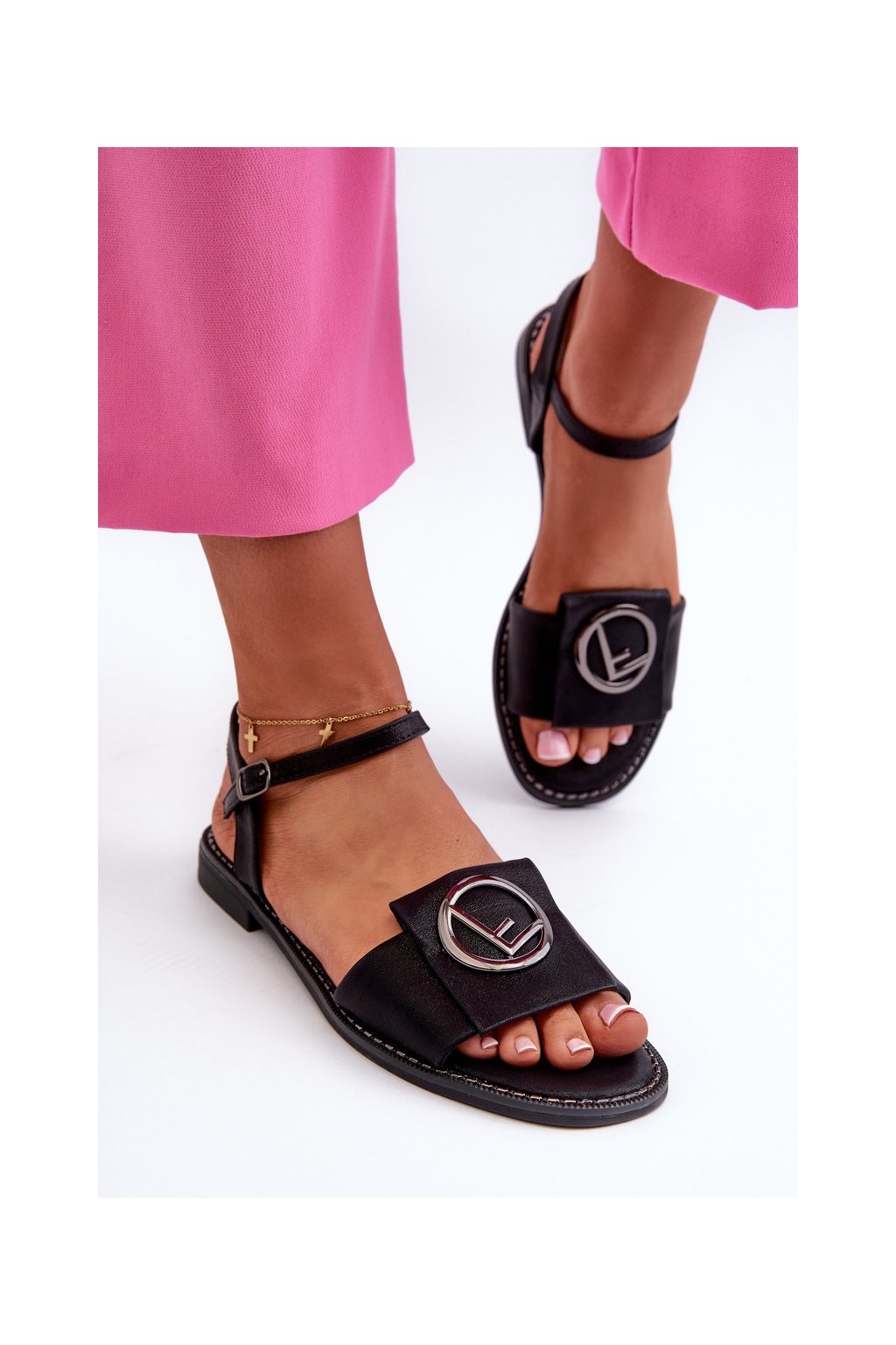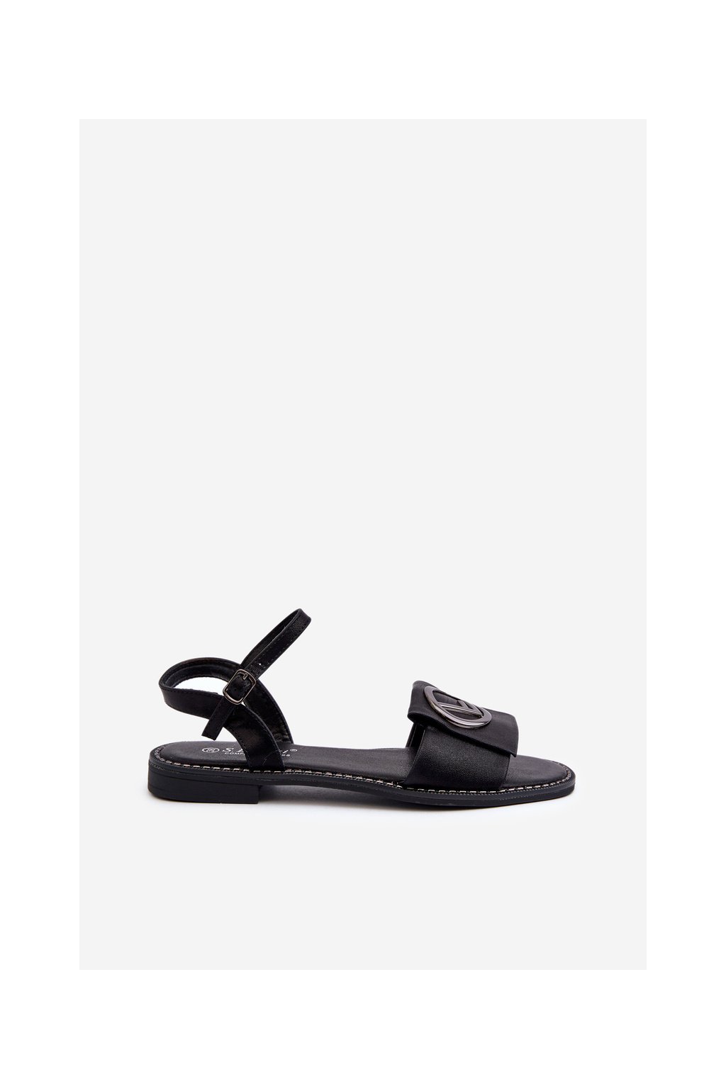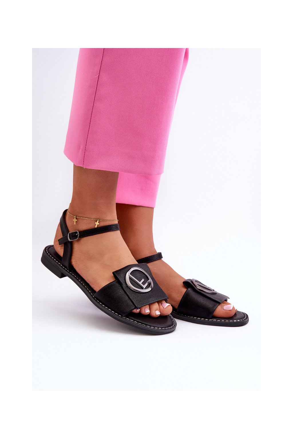 Čierne dámske sandále z eko kože na rovnej podrážke s mäkkou stielkou Comfort, KV27-045 BLACK
