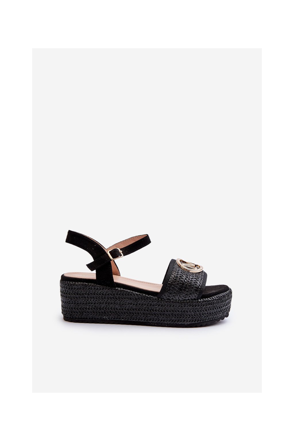 Čierne dámske plastové sandále na platforme s klínkom 6 cm, s eko kožou, kód produktu LL91 BLACK