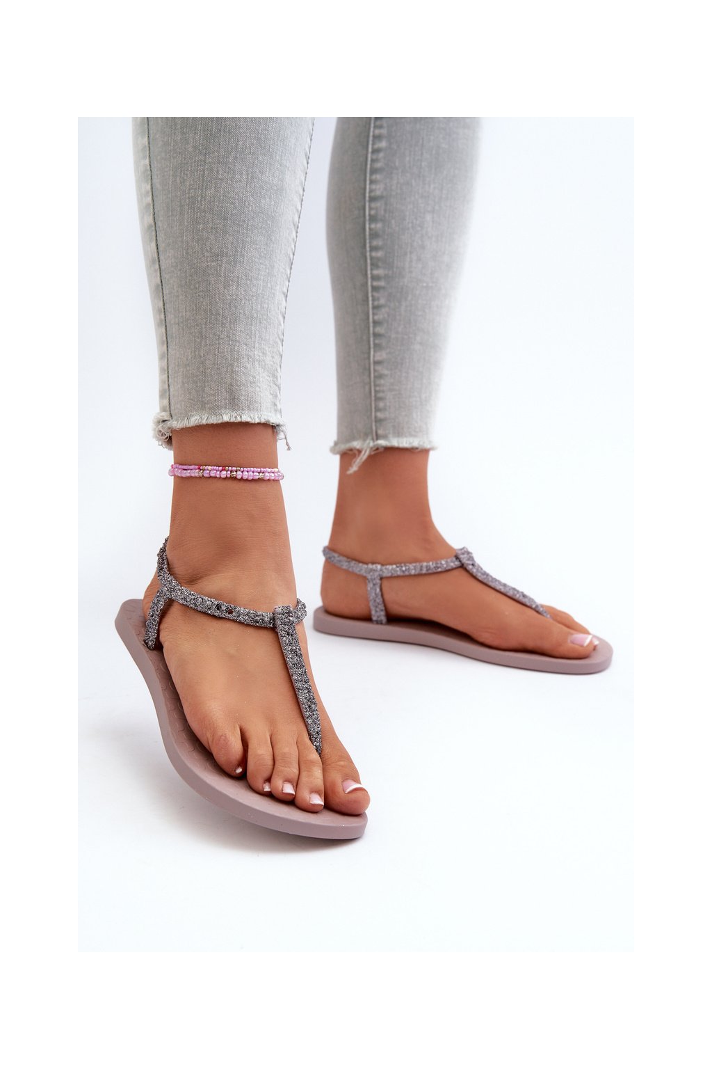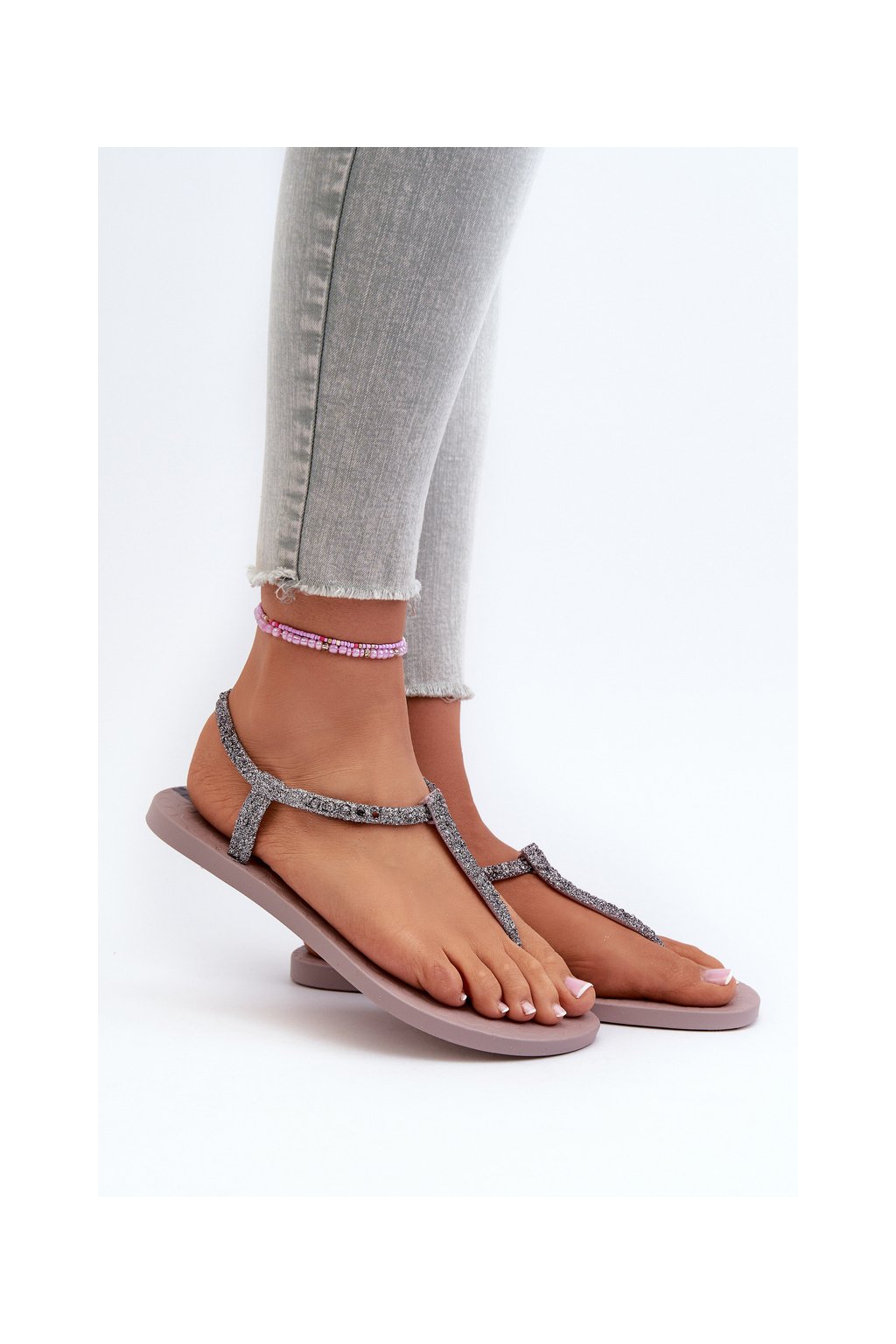 Fialové dámske sandále Ipanema s flitrami na rovnej podrážke, syntetický materiál, kód produktu 26914 BEIGE/GILTER