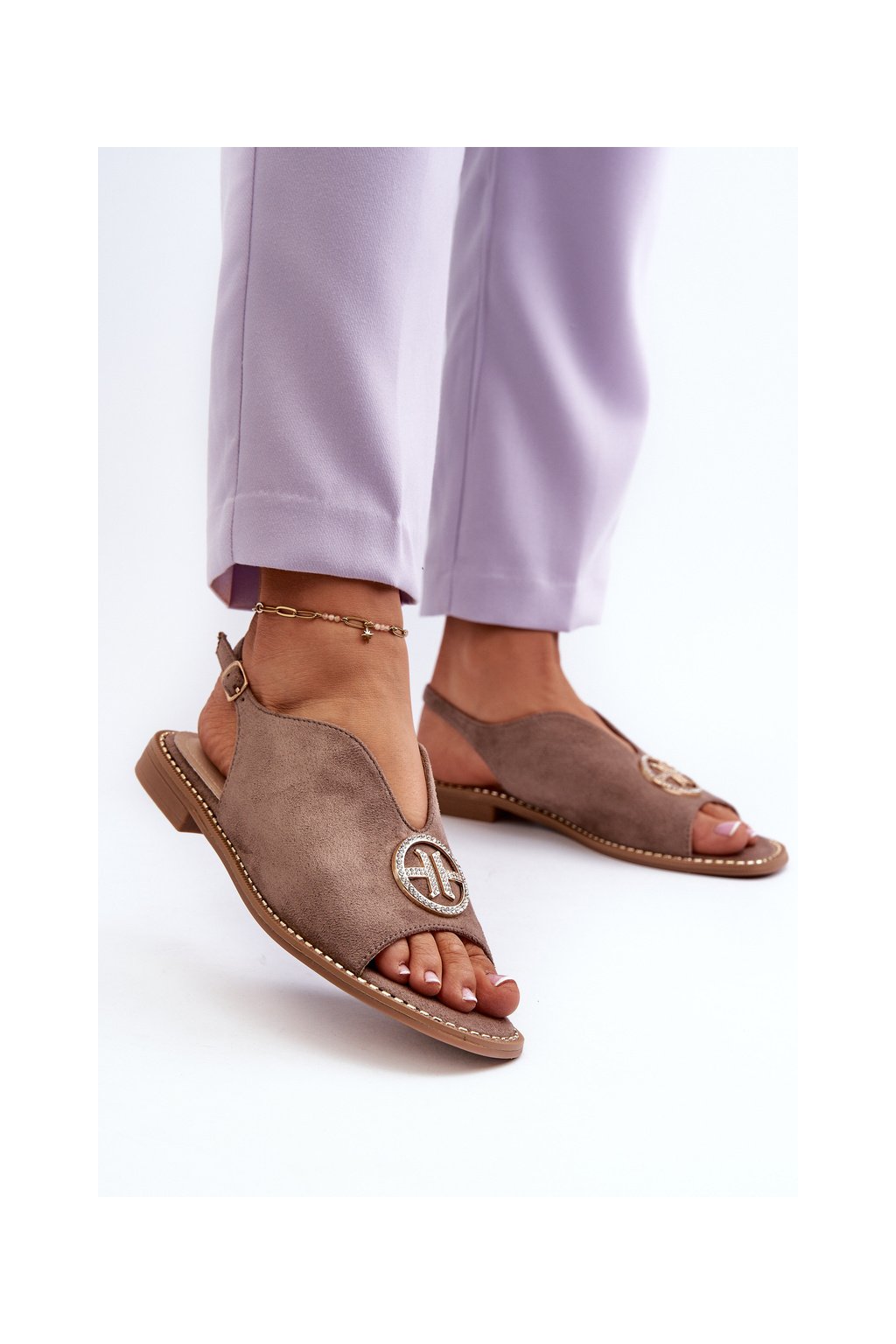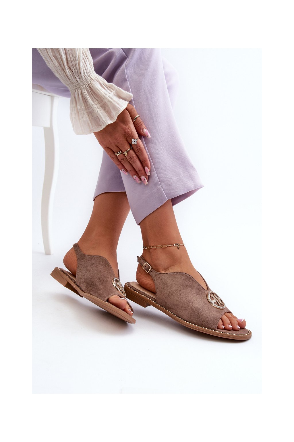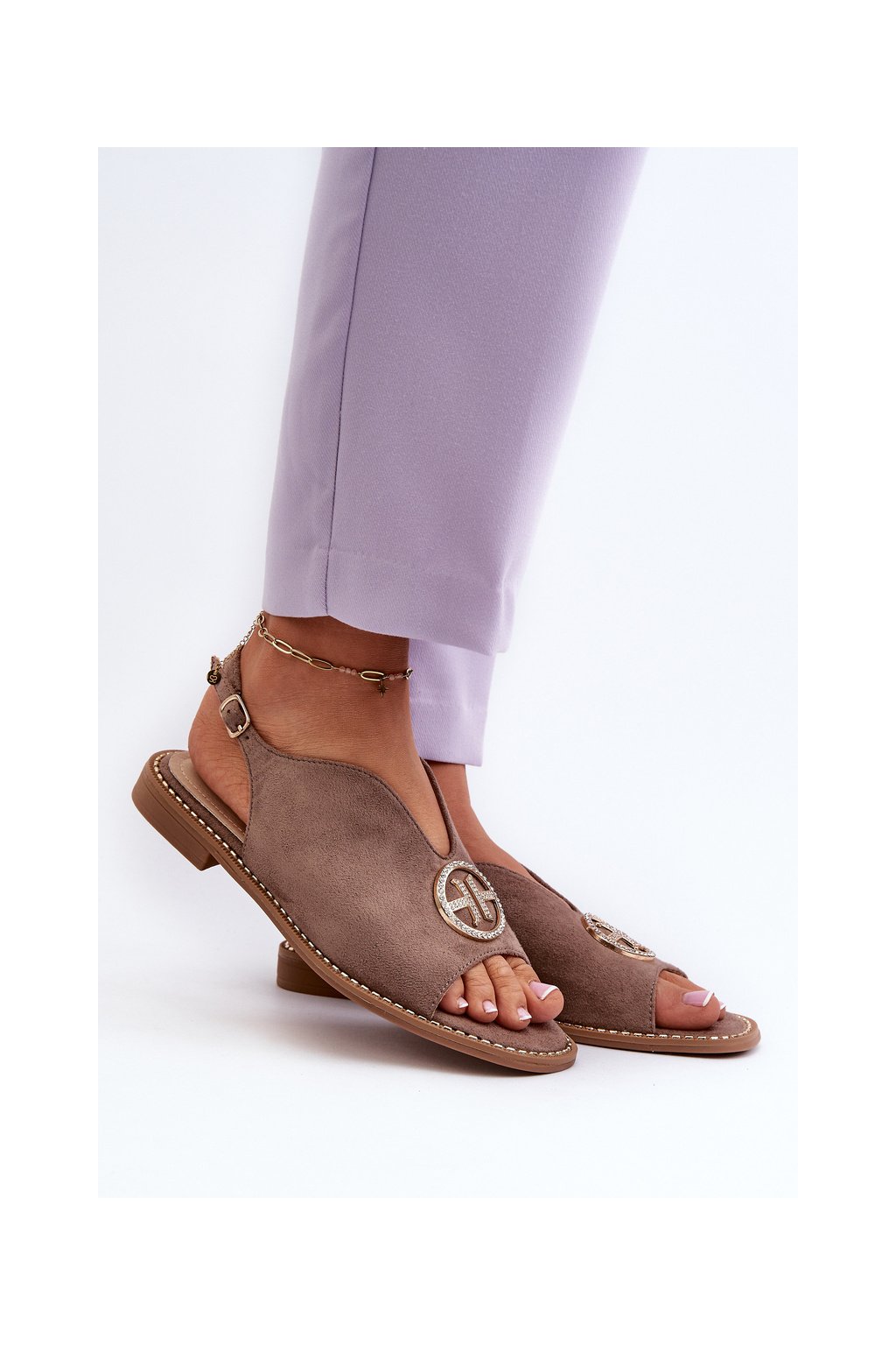 Hnedé dámske sandále z eko semišu s prírodnou koženou vložkou a zlatým zdobením, KV27-059 TAUPE