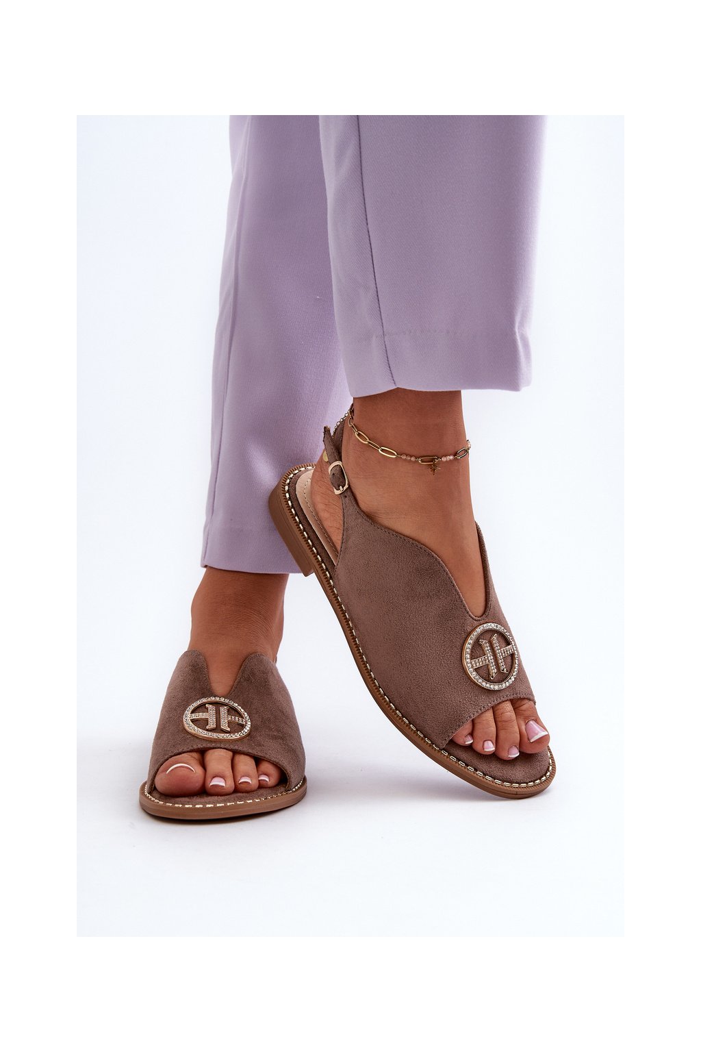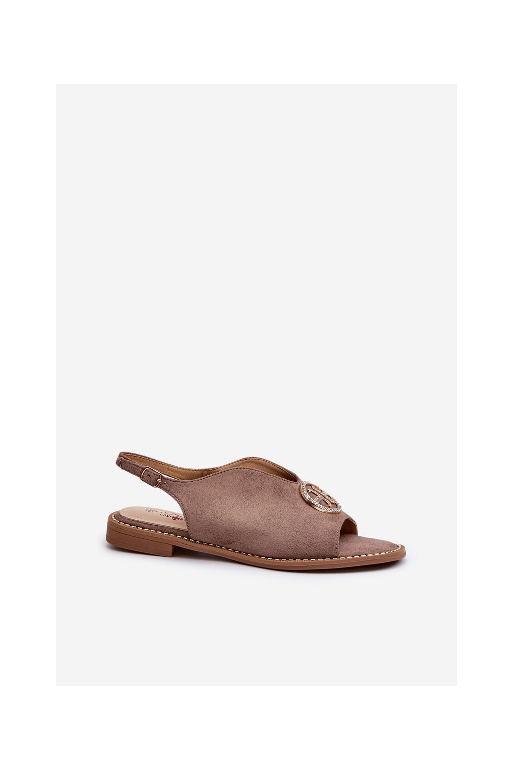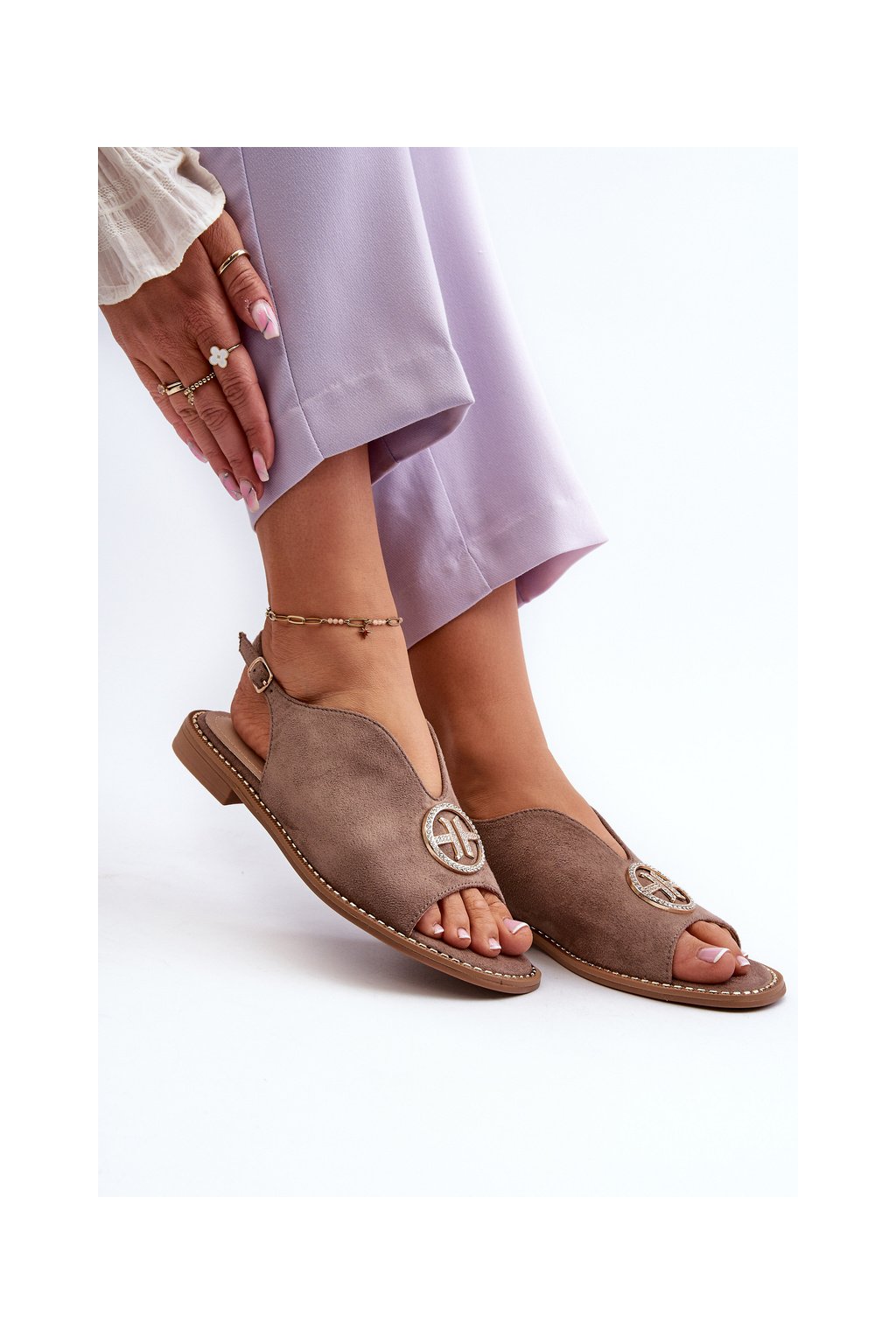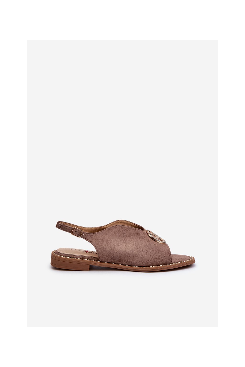 Hnedé dámske sandále z eko semišu s prírodnou koženou vložkou a zlatým zdobením, KV27-059 TAUPE