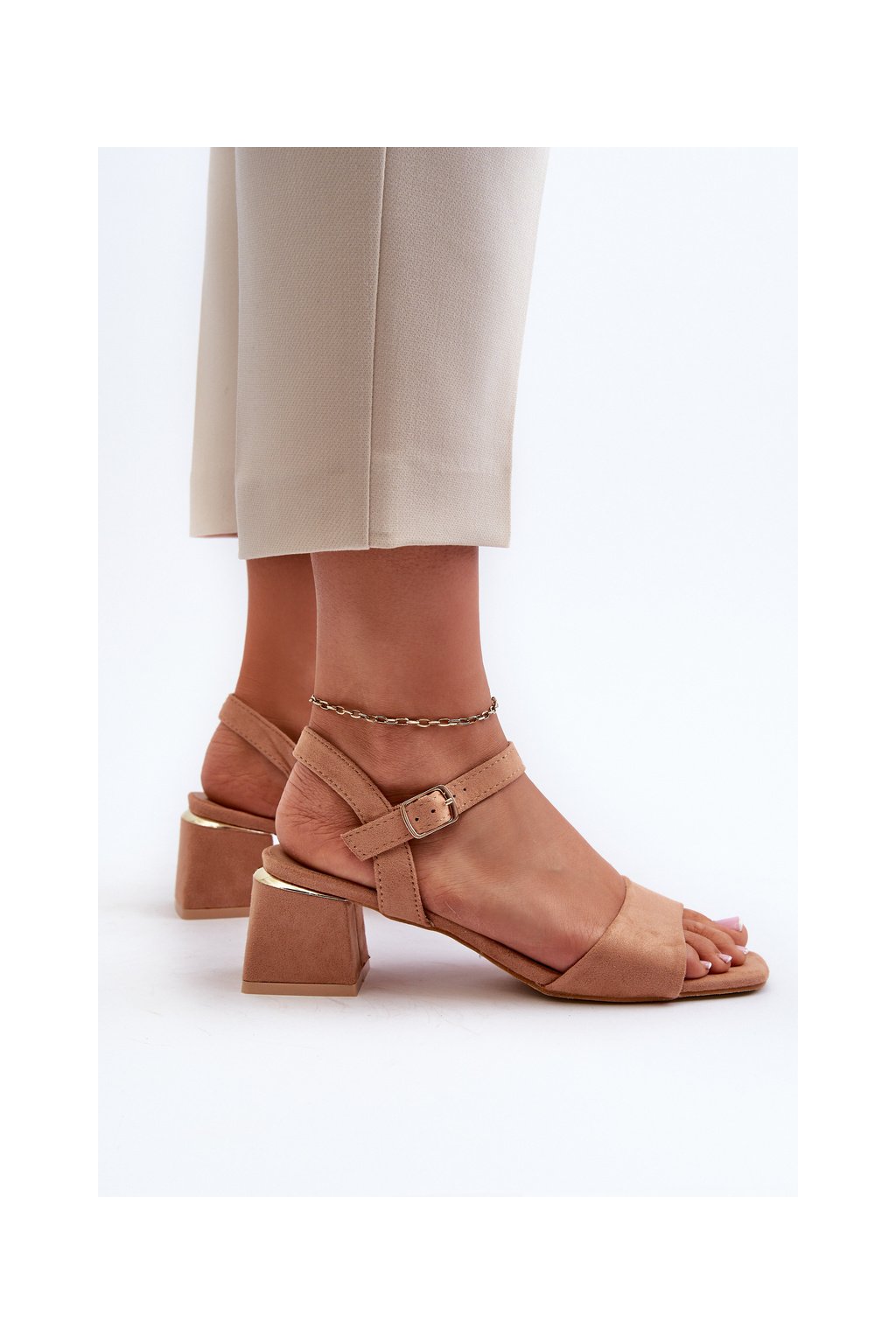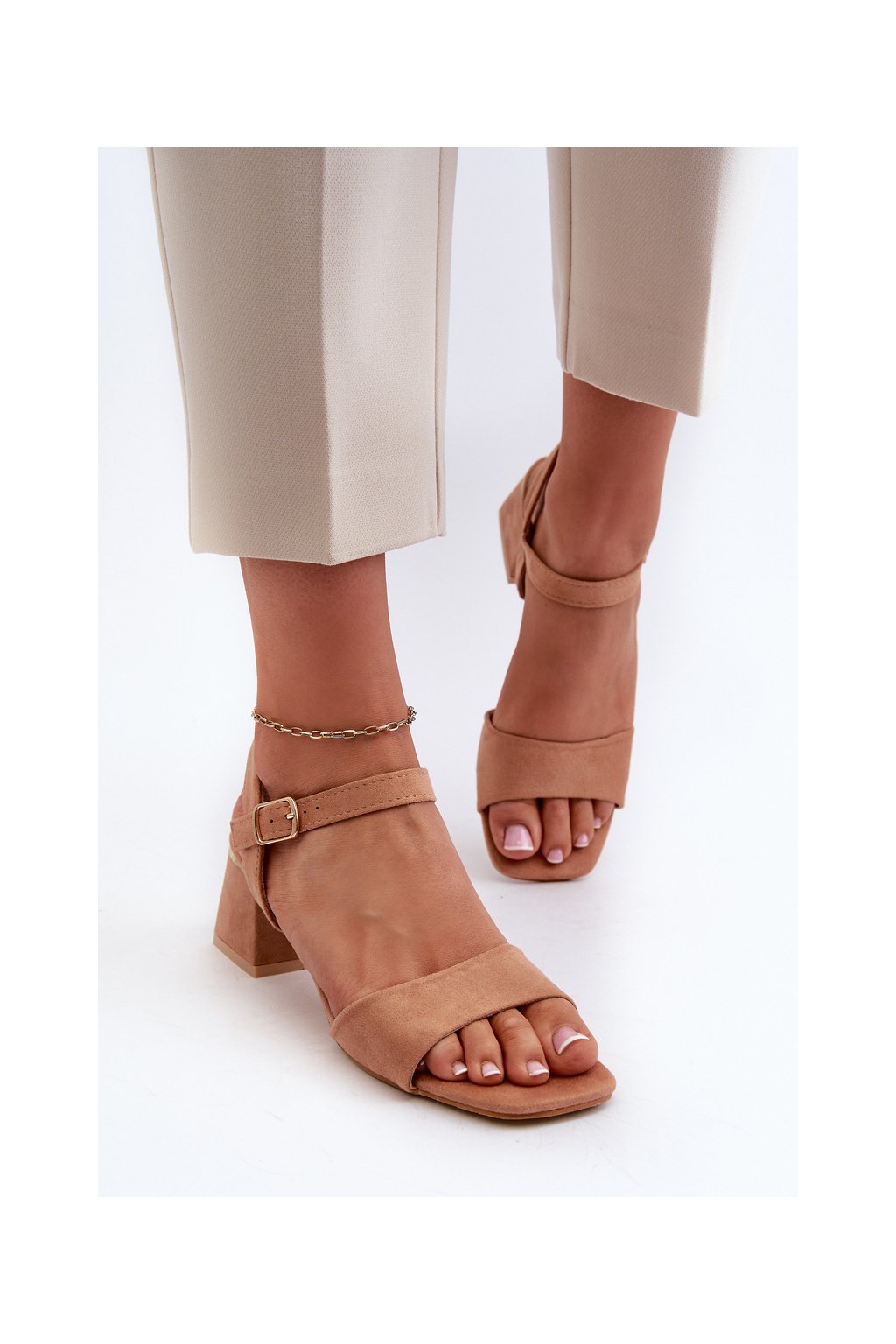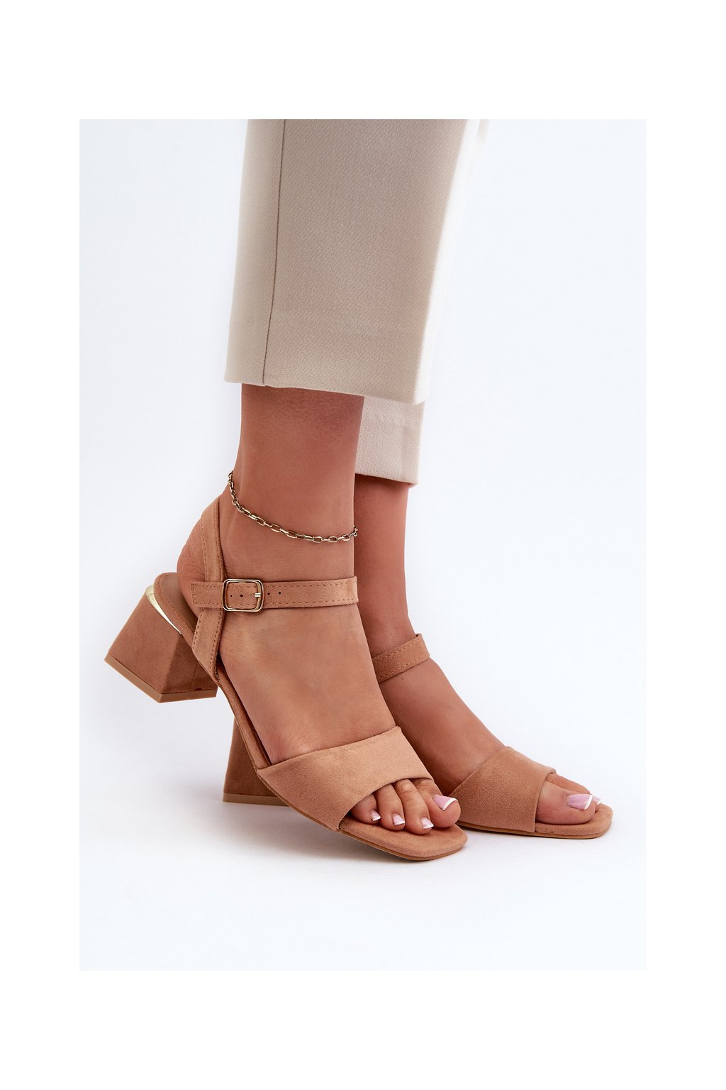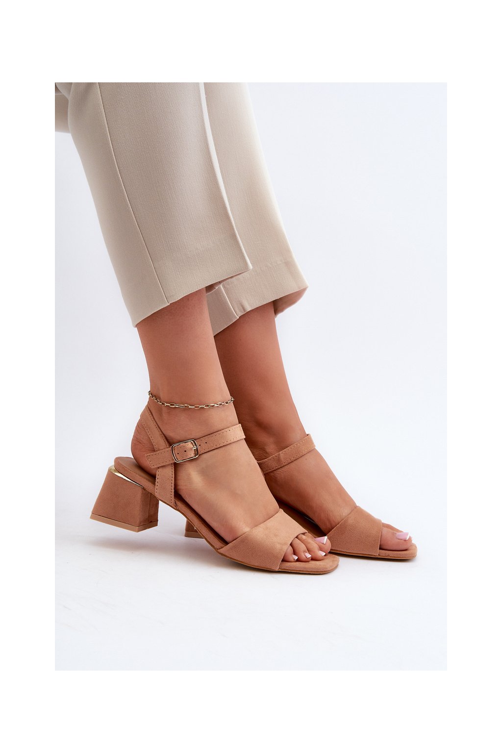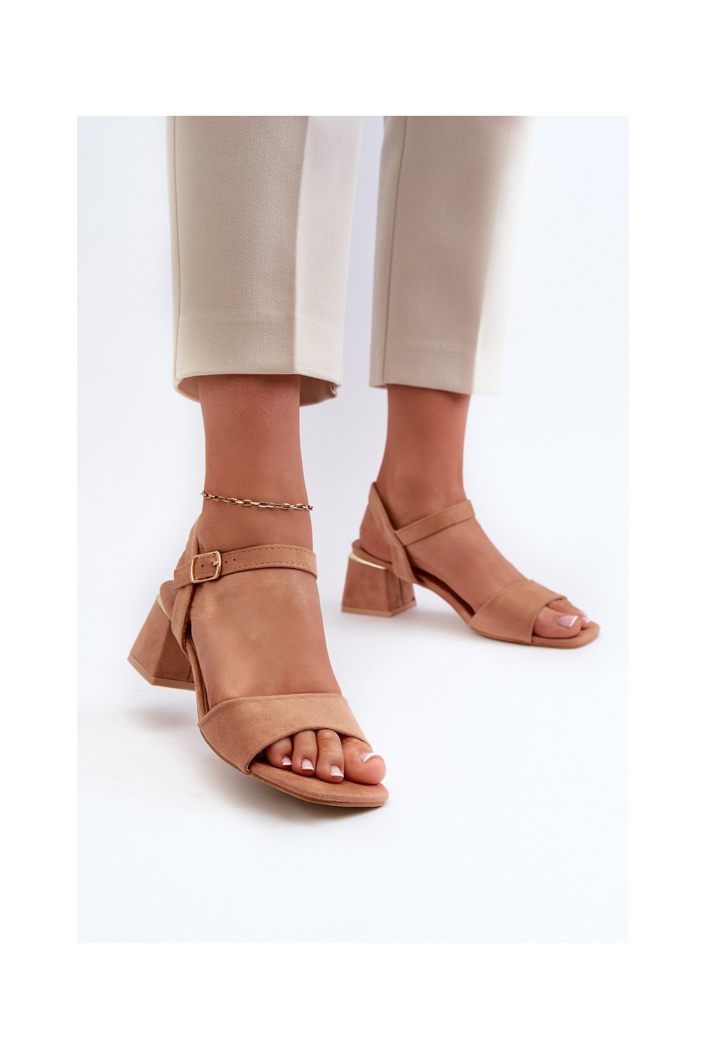 Hnedé dámske sandále z eko semišu na nízkom podpätku, LT33-10 CAMEL