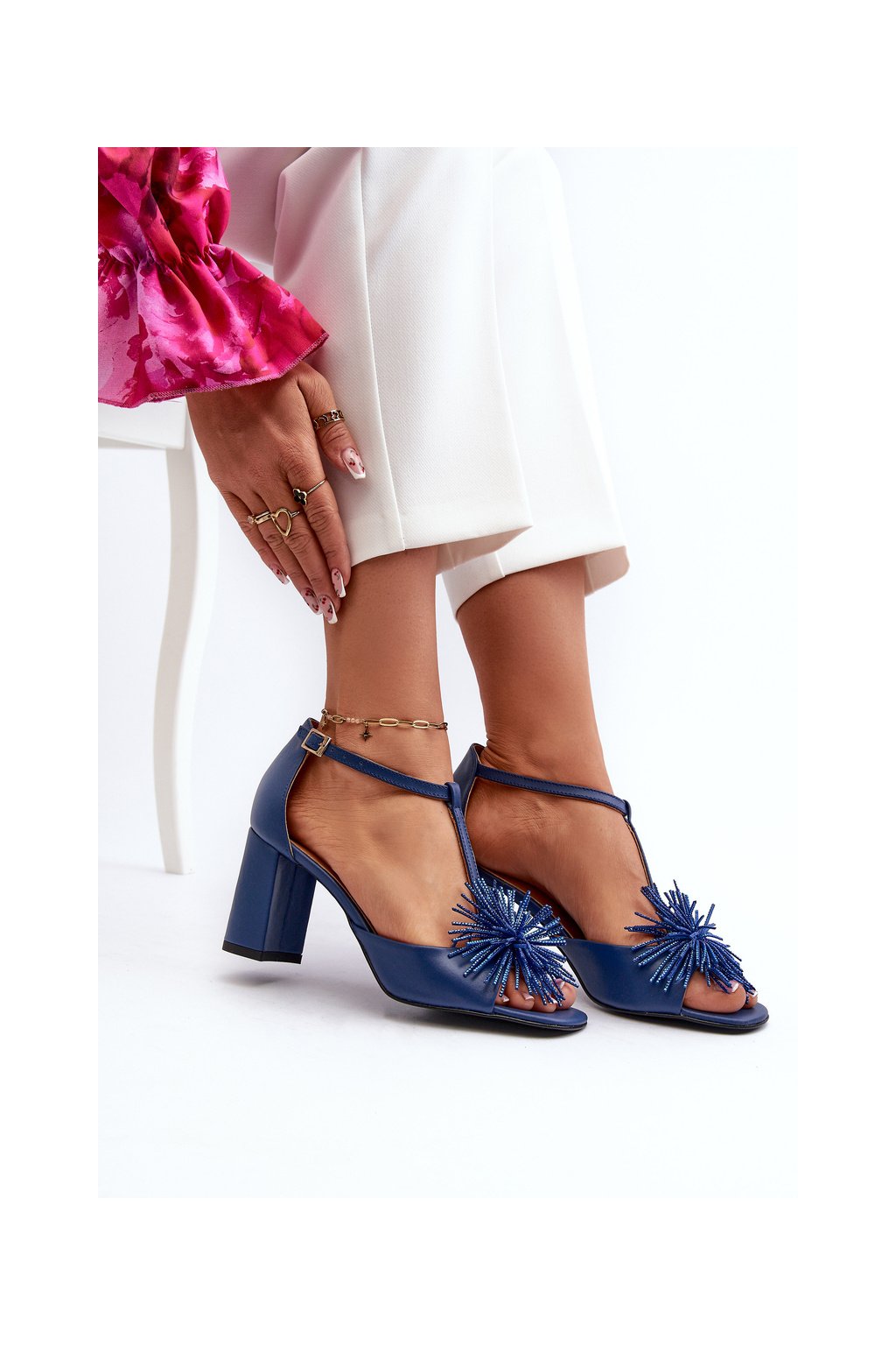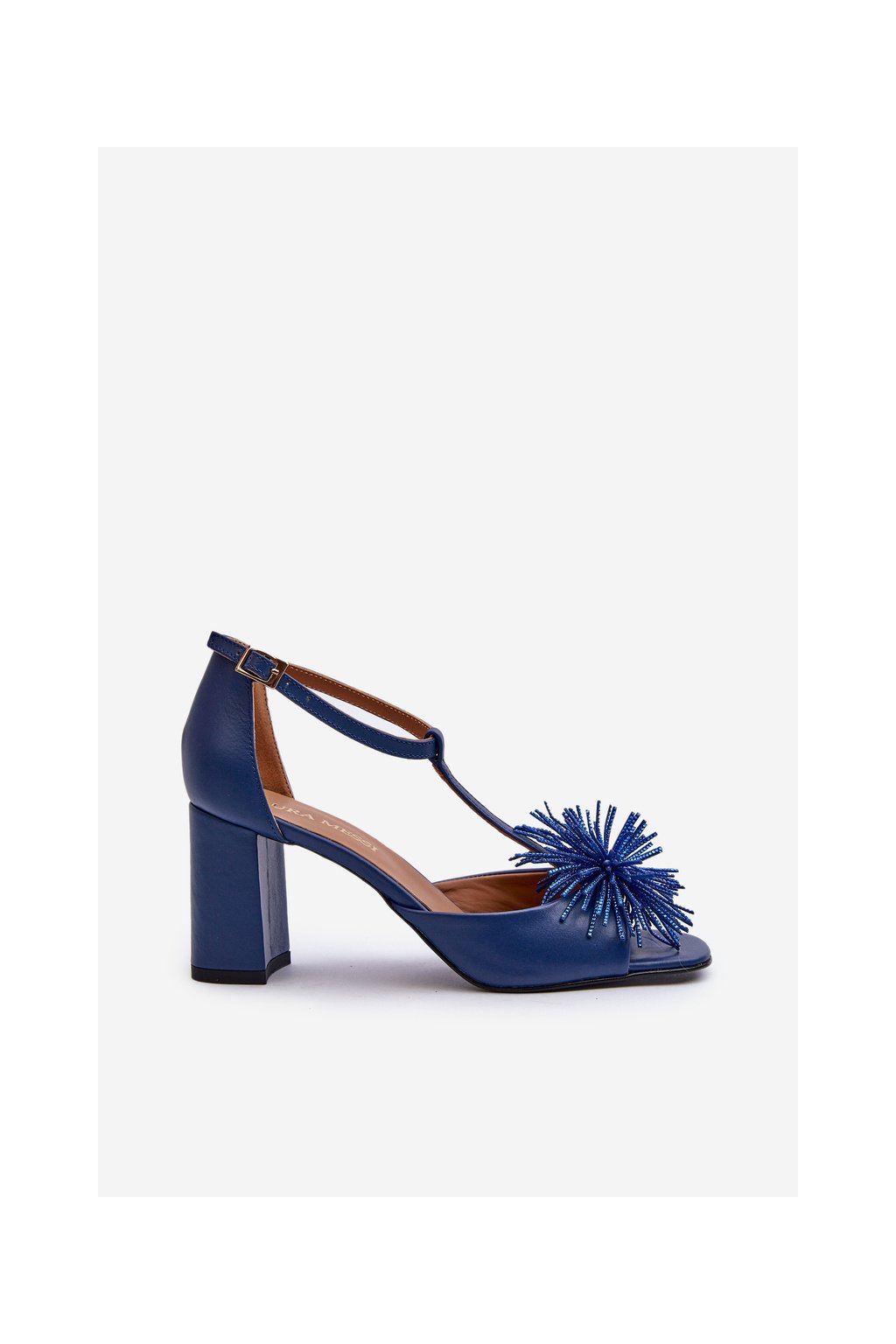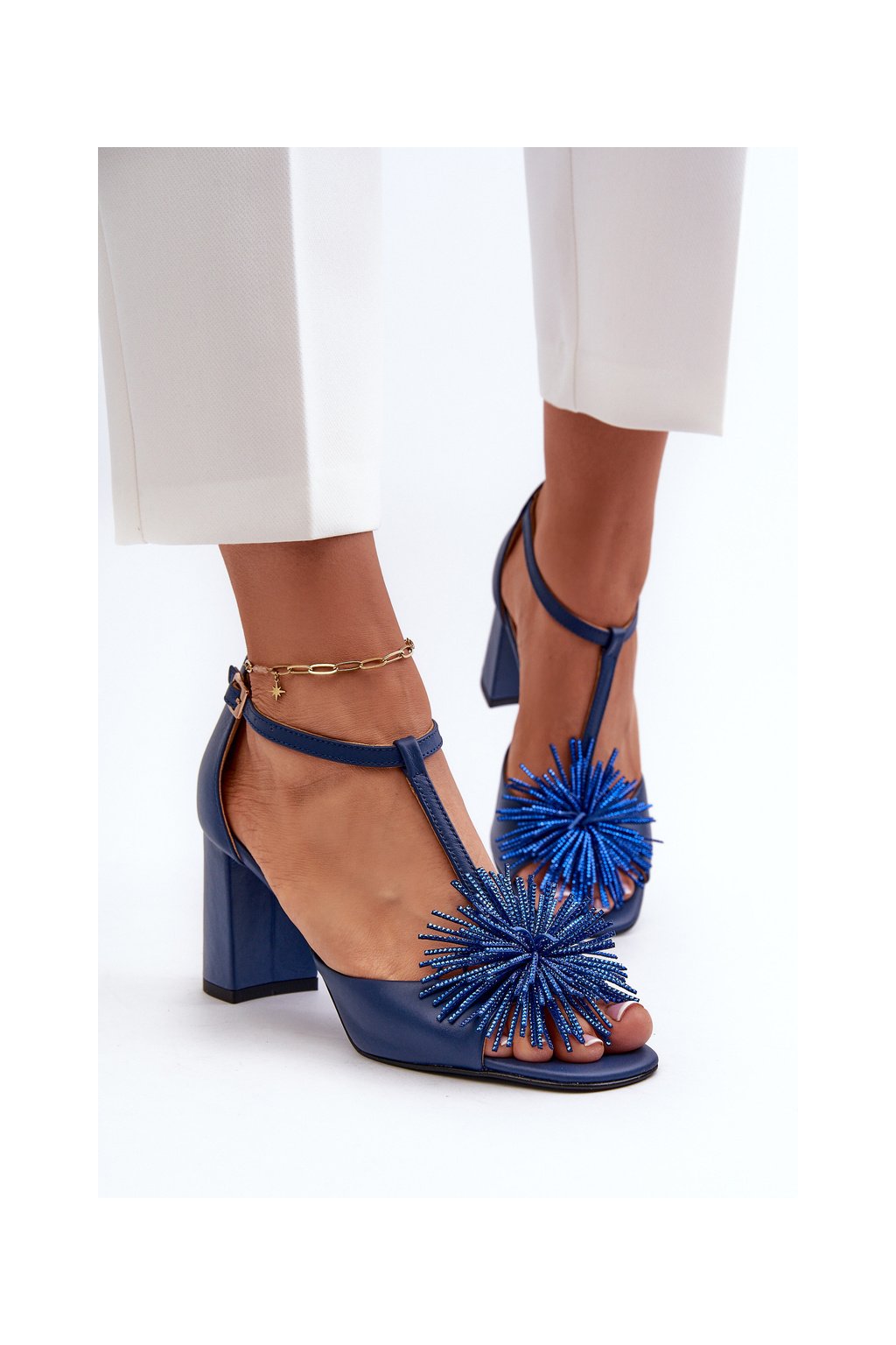 Dámske modré kožené sandále na stĺpovom podpätku 8 cm, kód produktu 2758/245
