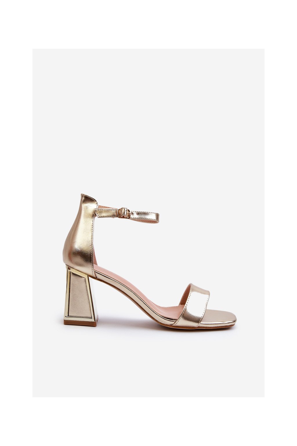 Zlaté dámske sandále s eko kožou na stĺpovom podpätku, kód produktu 0696 GOLD