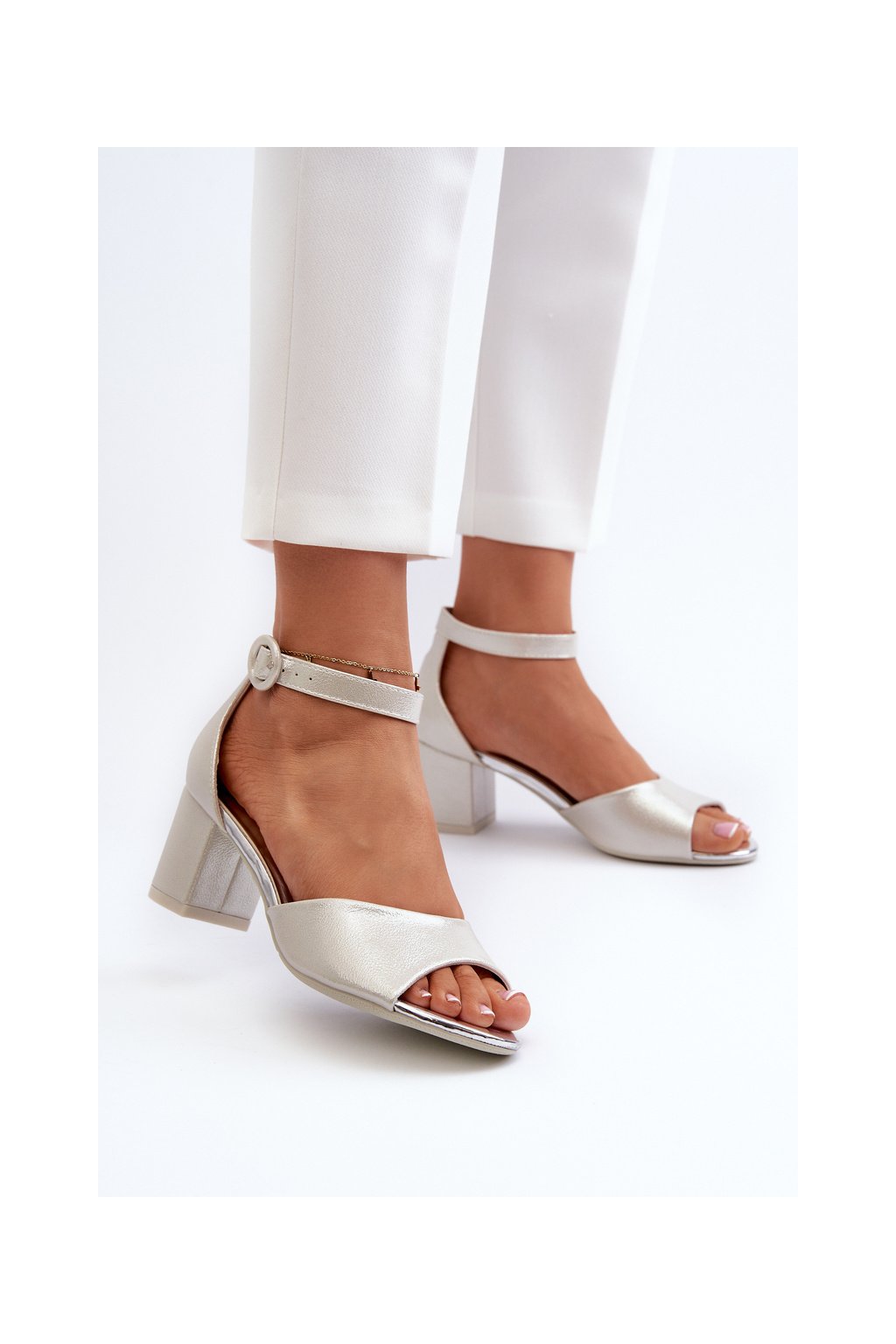 Zlaté dámske sandále na stĺpovom podpätku s eko kožou, kód produktu 20100 SI