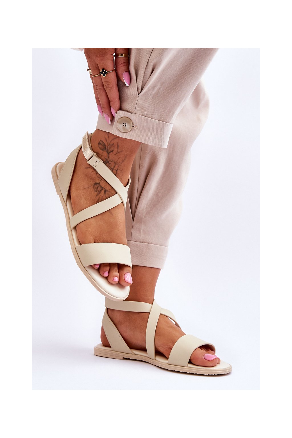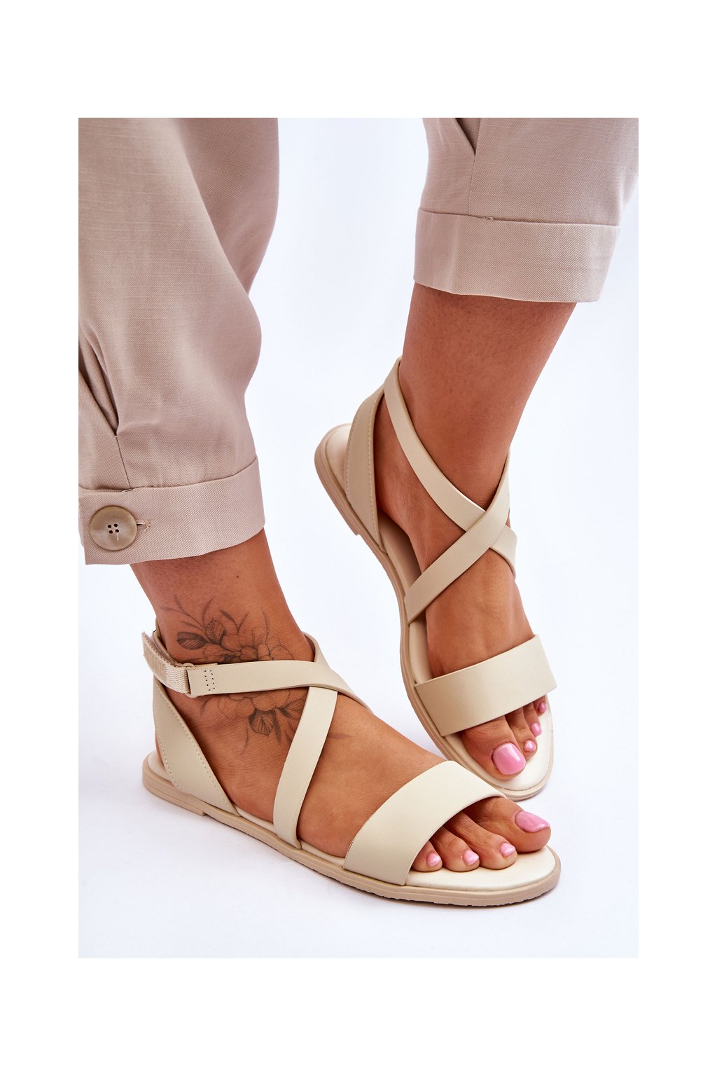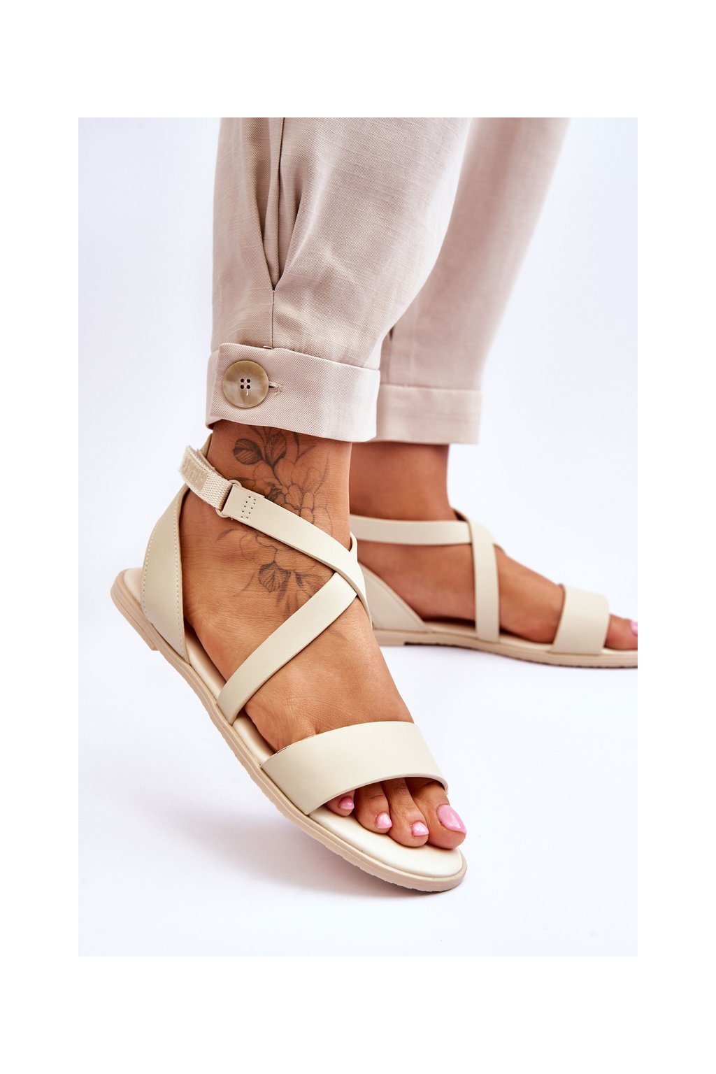 Kožené kotníkové Sandále big star ll274a161 béžové / LL274A161 BEŻ