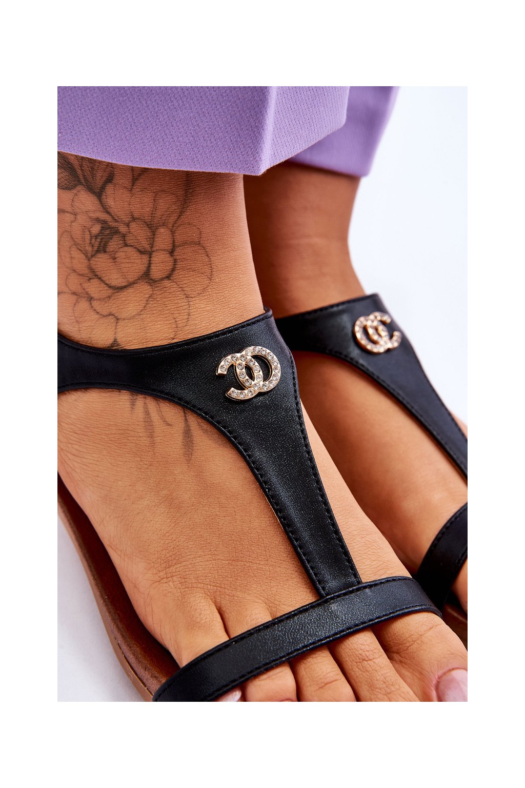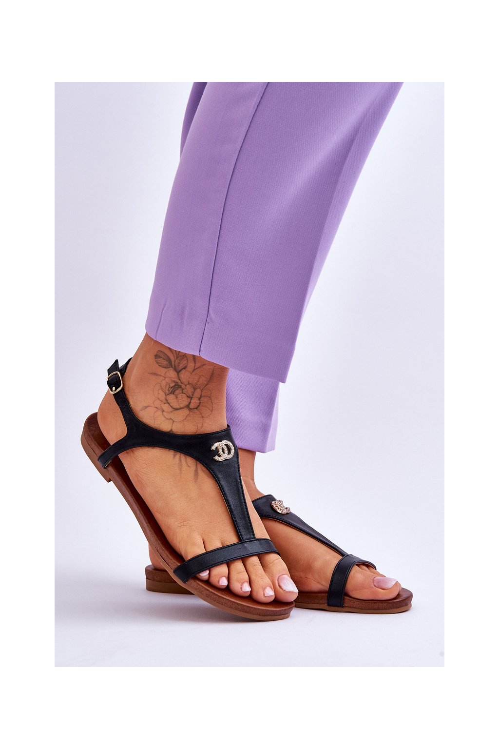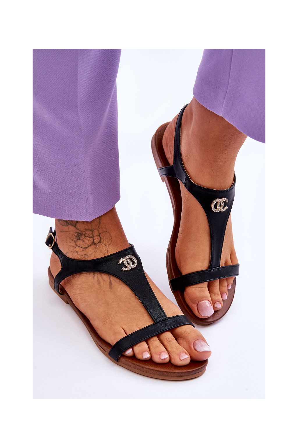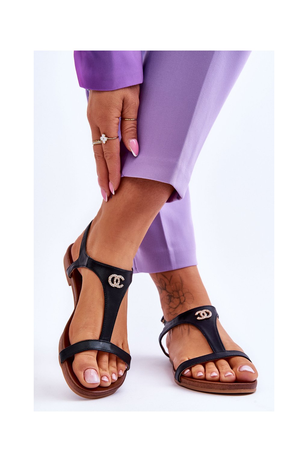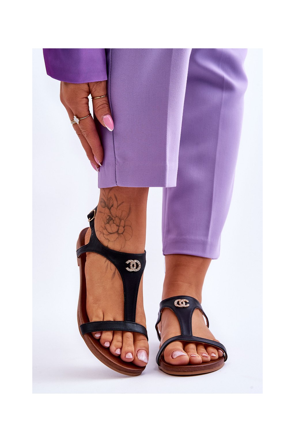 Čierne dámske sandále z eko kože s prackou na remienku a reliéfnymi detailmi, KV-5541-45 BLACK