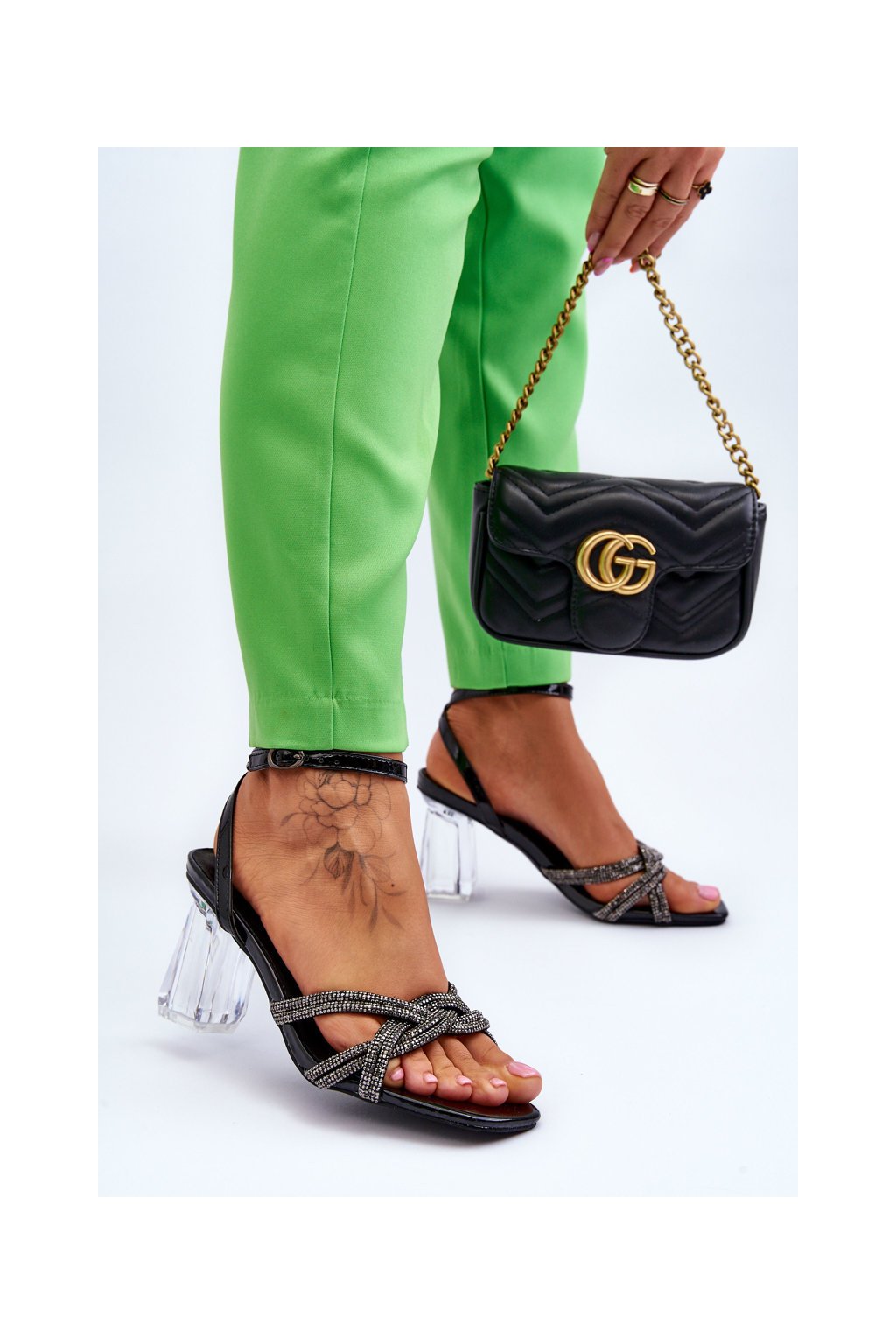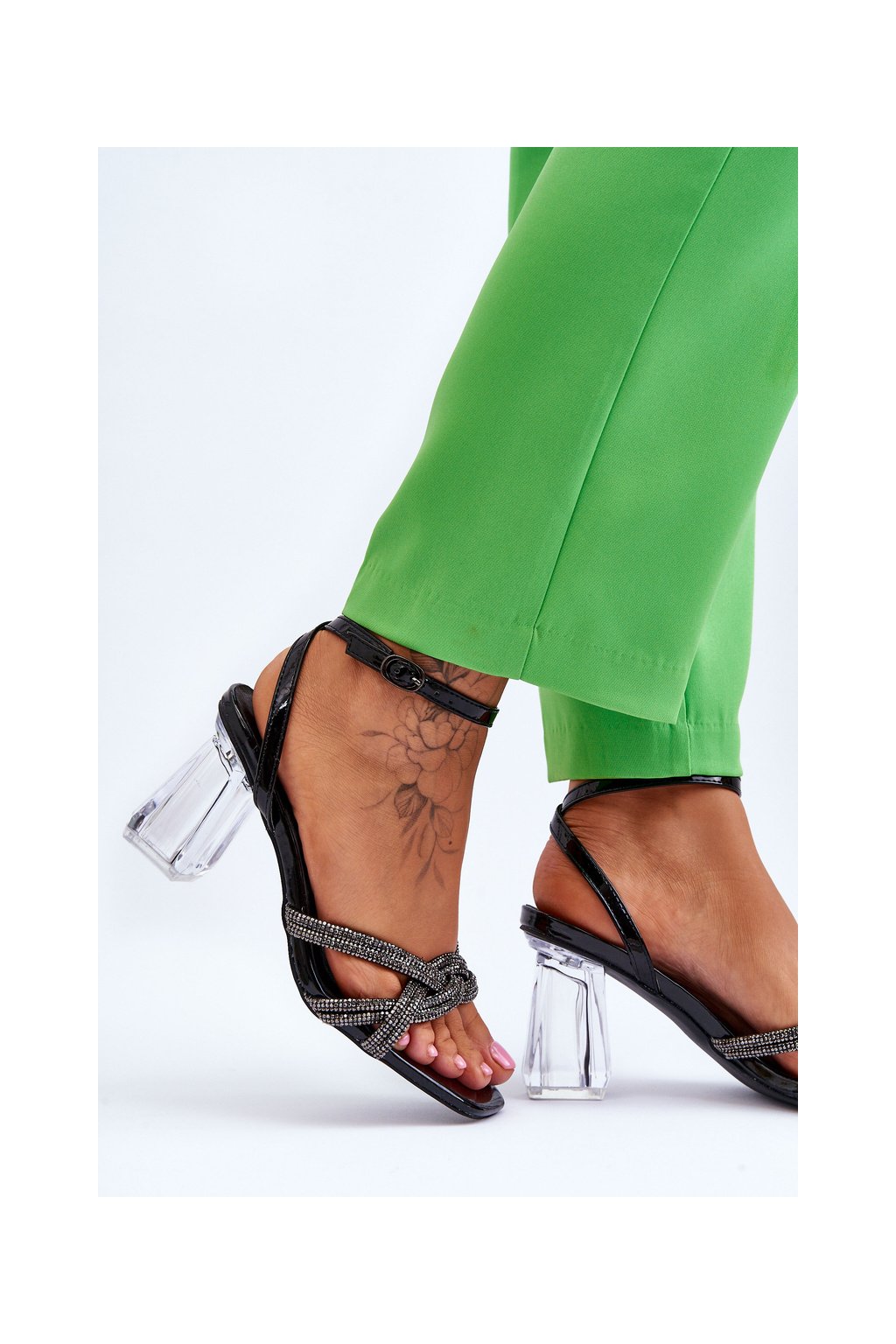 Kožené Sandále na průhledné bar čierne randy / MR-13 BLACK