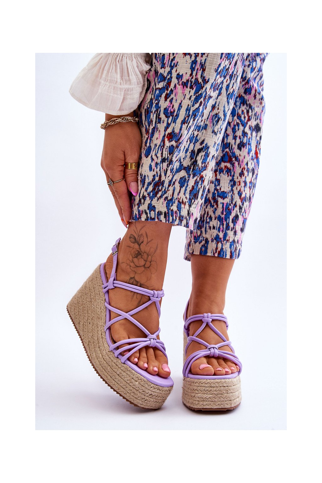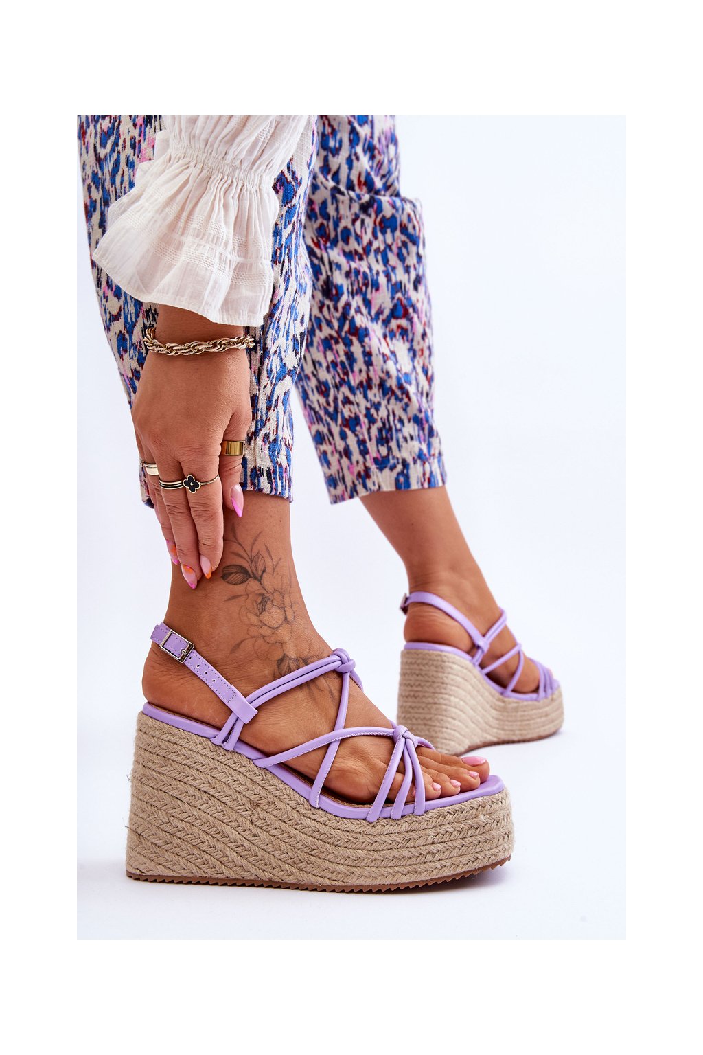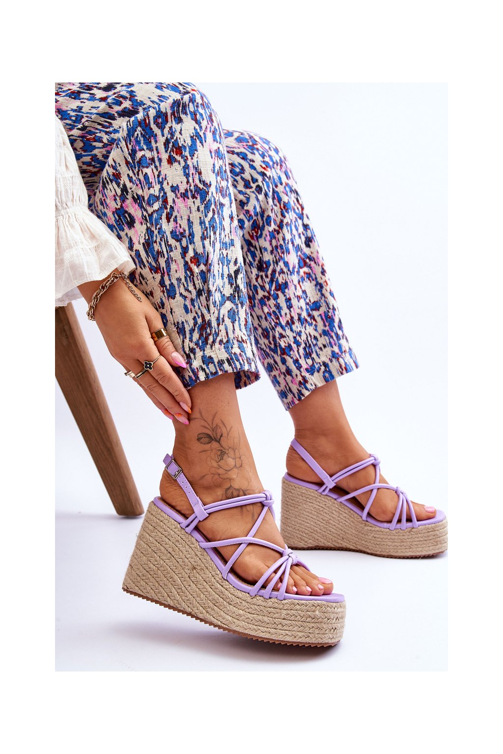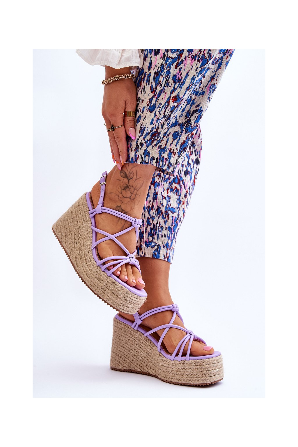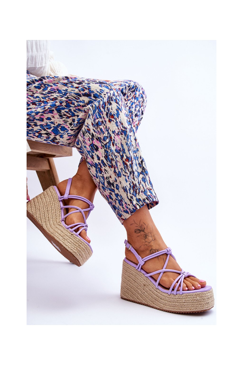 módní sandály na klínu s prýmkem fialove Nessia