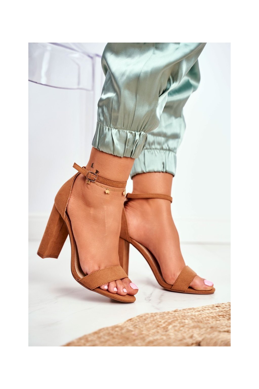 Dámské sandály Na Podpatku Semišové Camel Anastasie