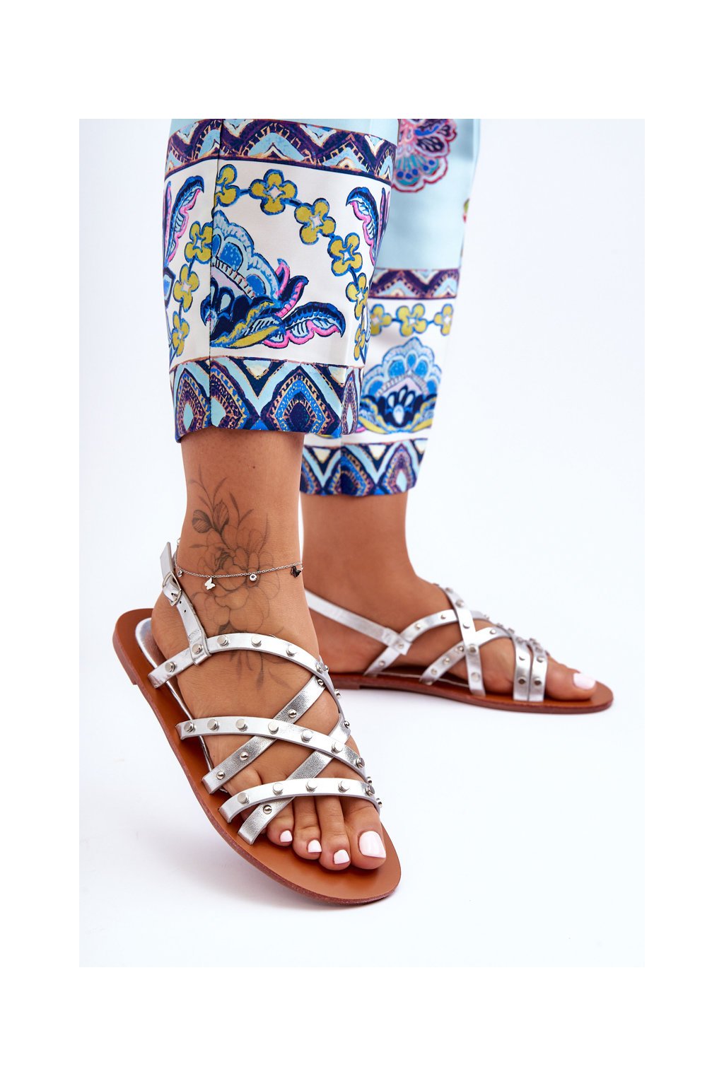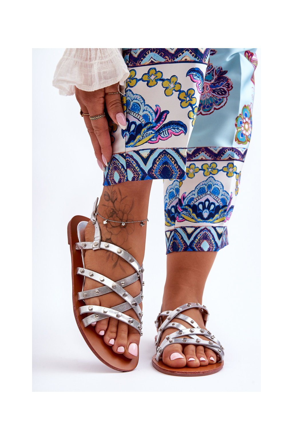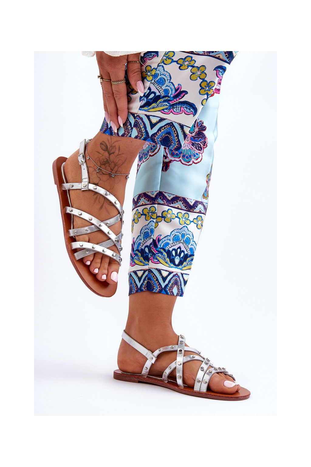 Dámské ozdobené sandály stříbrné Alemona