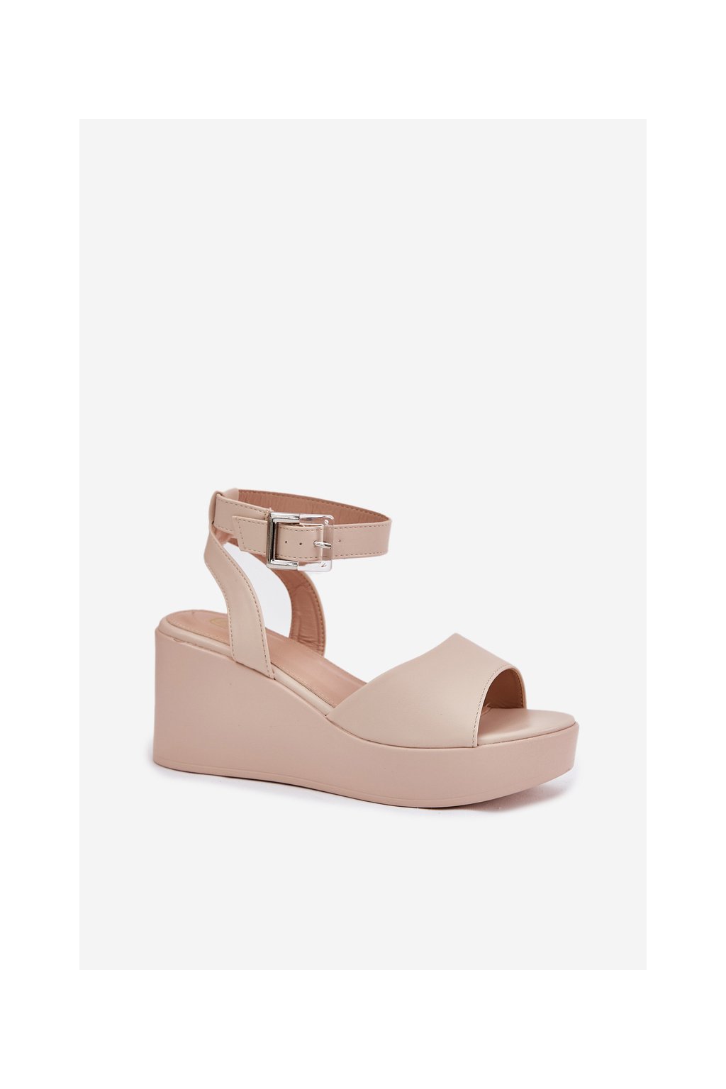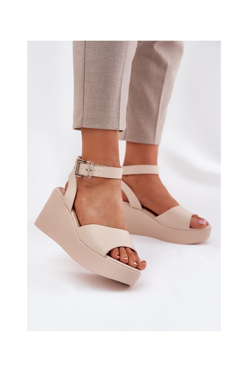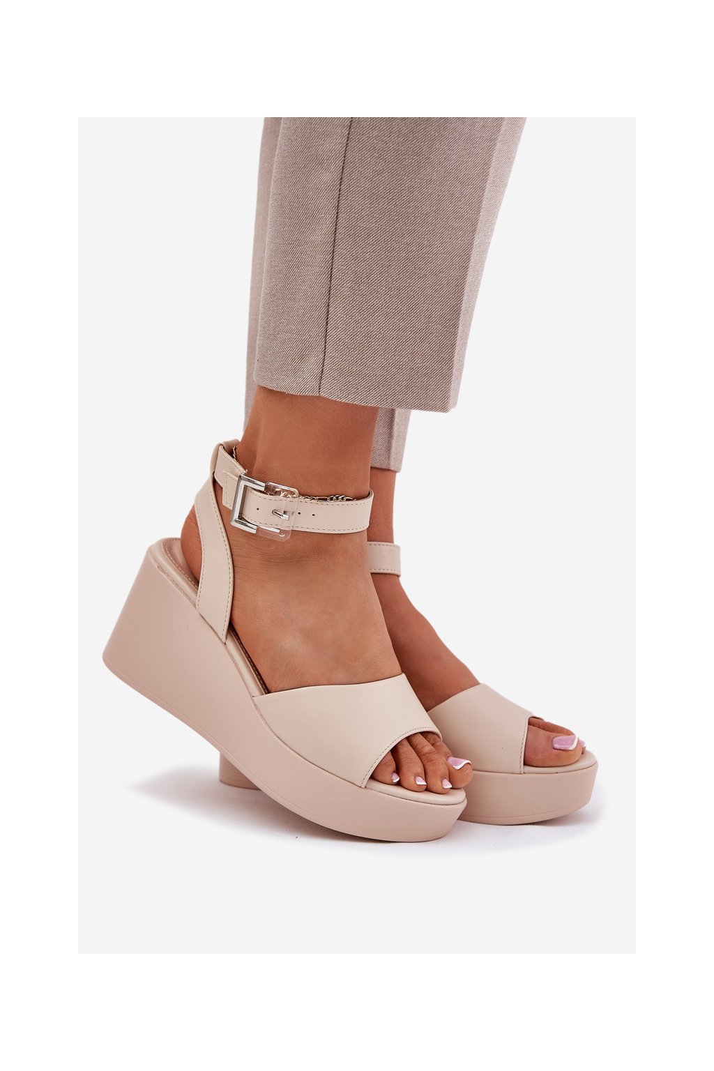 Béžové dámske sandále na platforme s prackou, kód produktu PP39M BEIGE