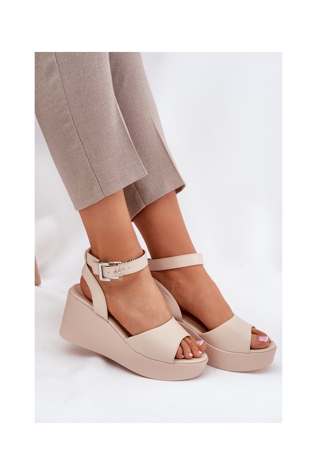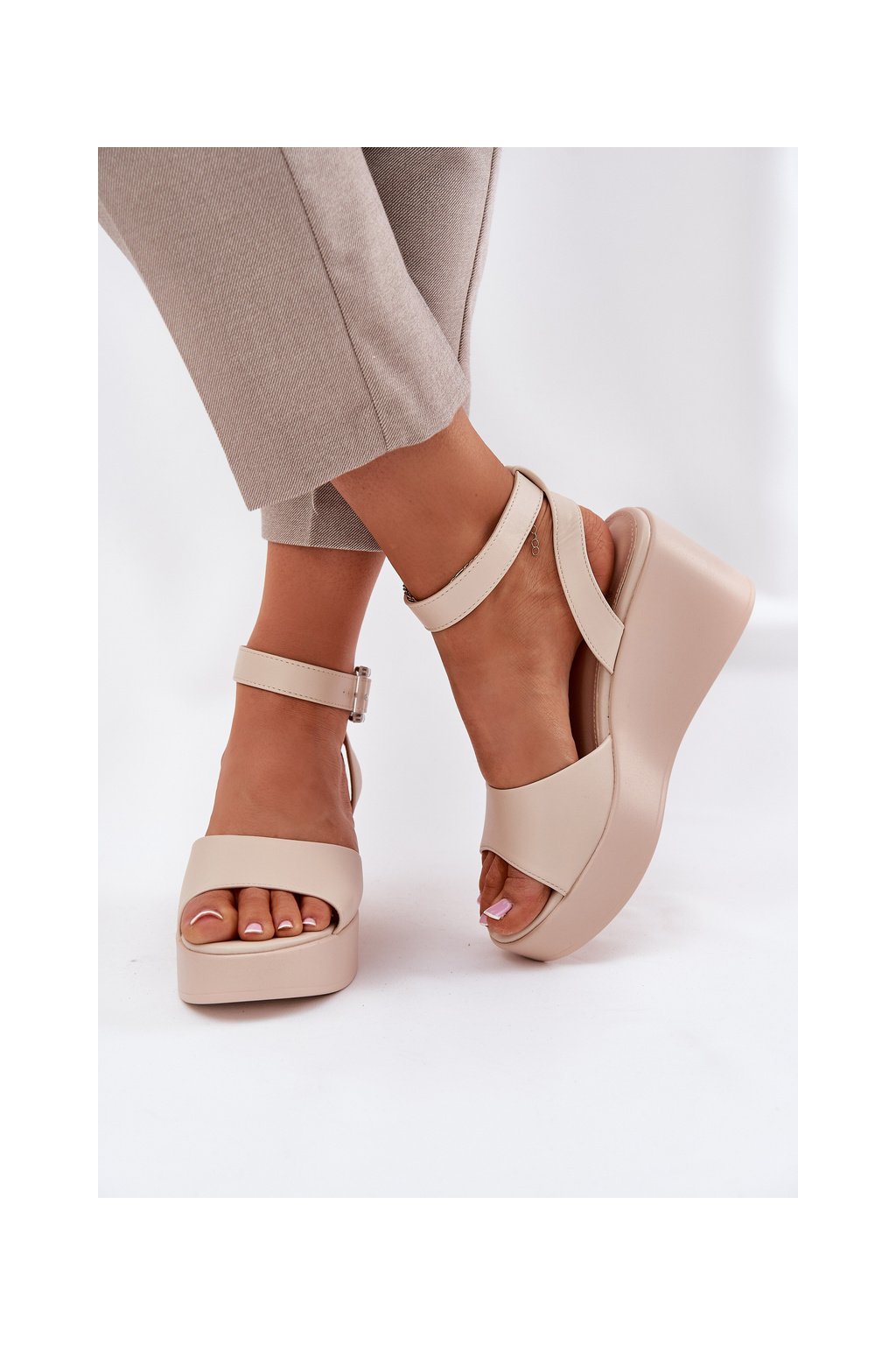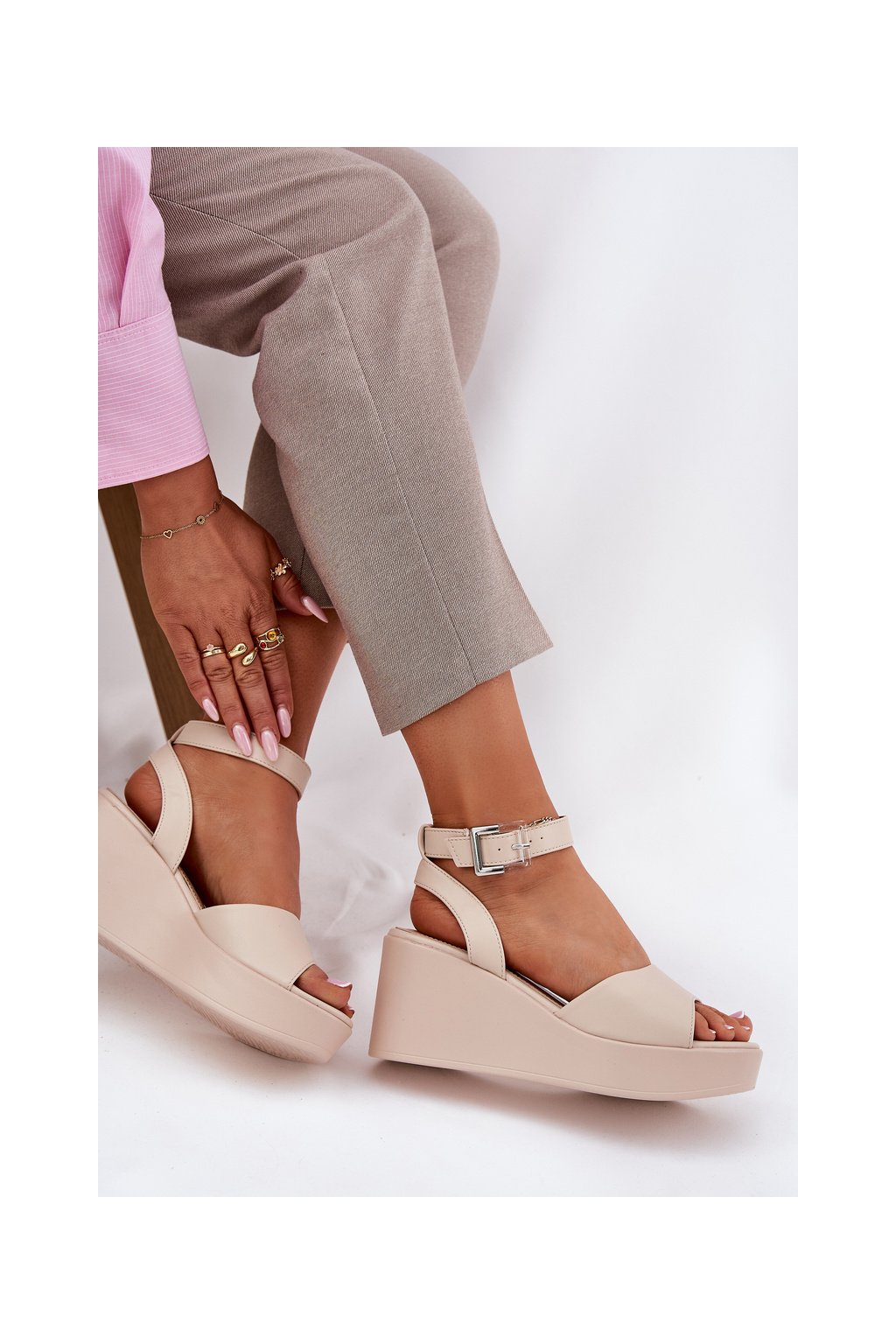 Béžové dámske sandále na platforme s prackou, kód produktu PP39M BEIGE
