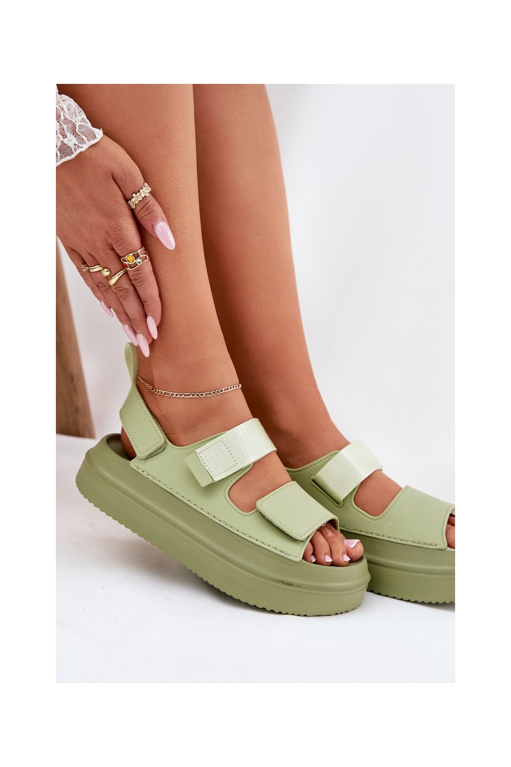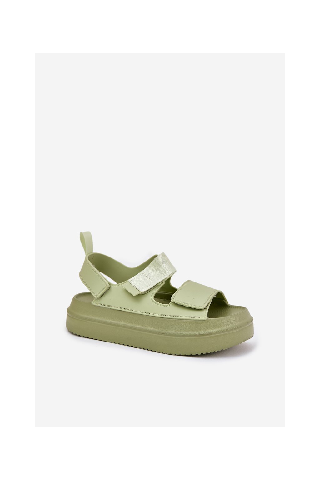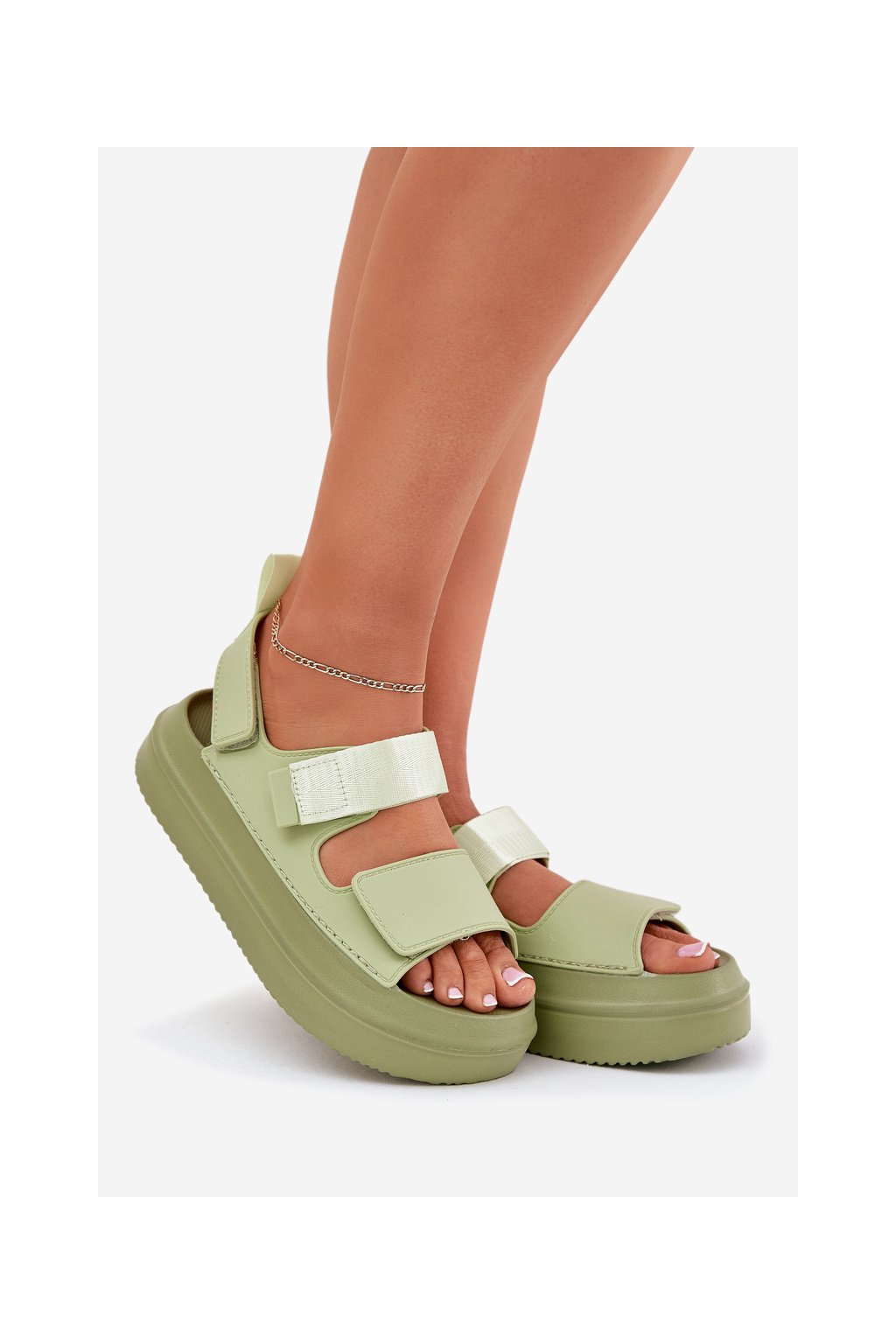 Zelené dámske sandále na platforme s rovnou podrážkou s eko kožou, kód produktu 100-430 GREEN