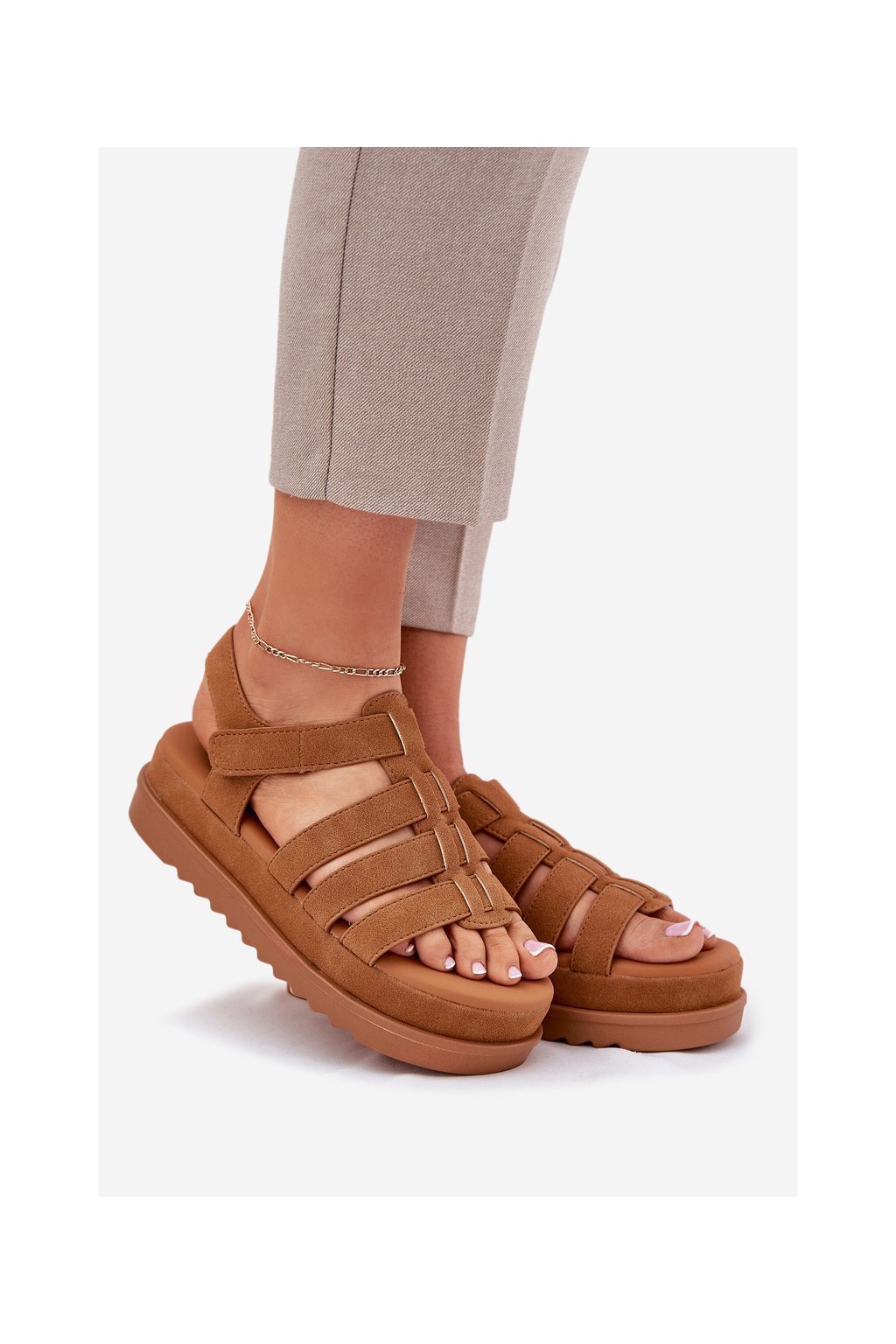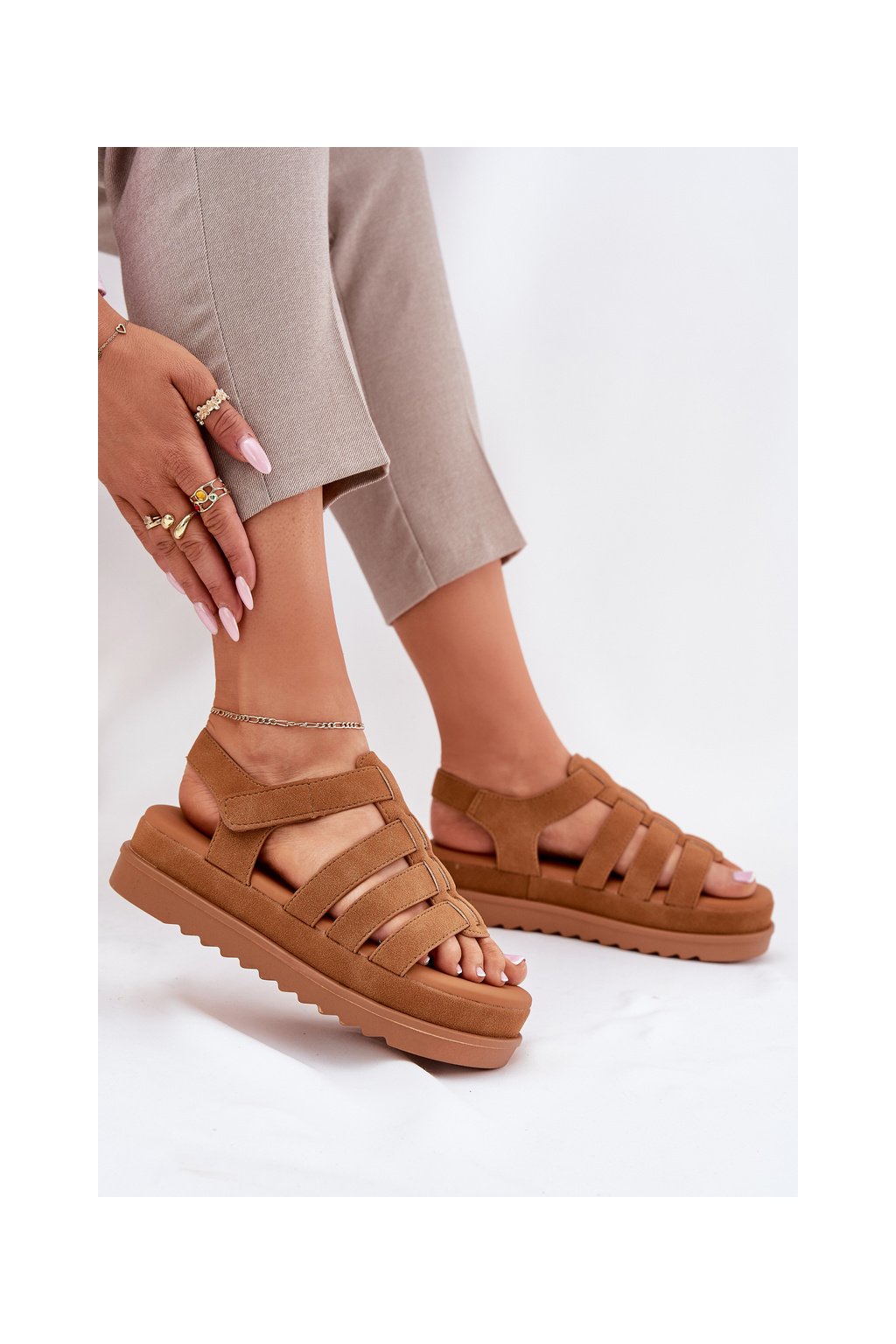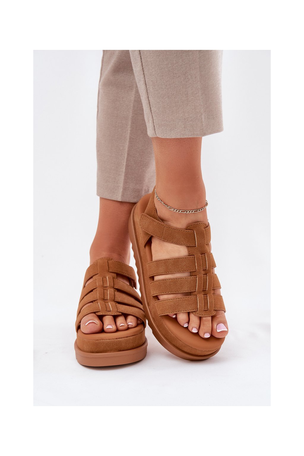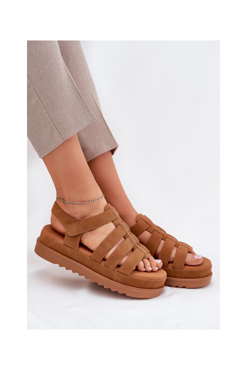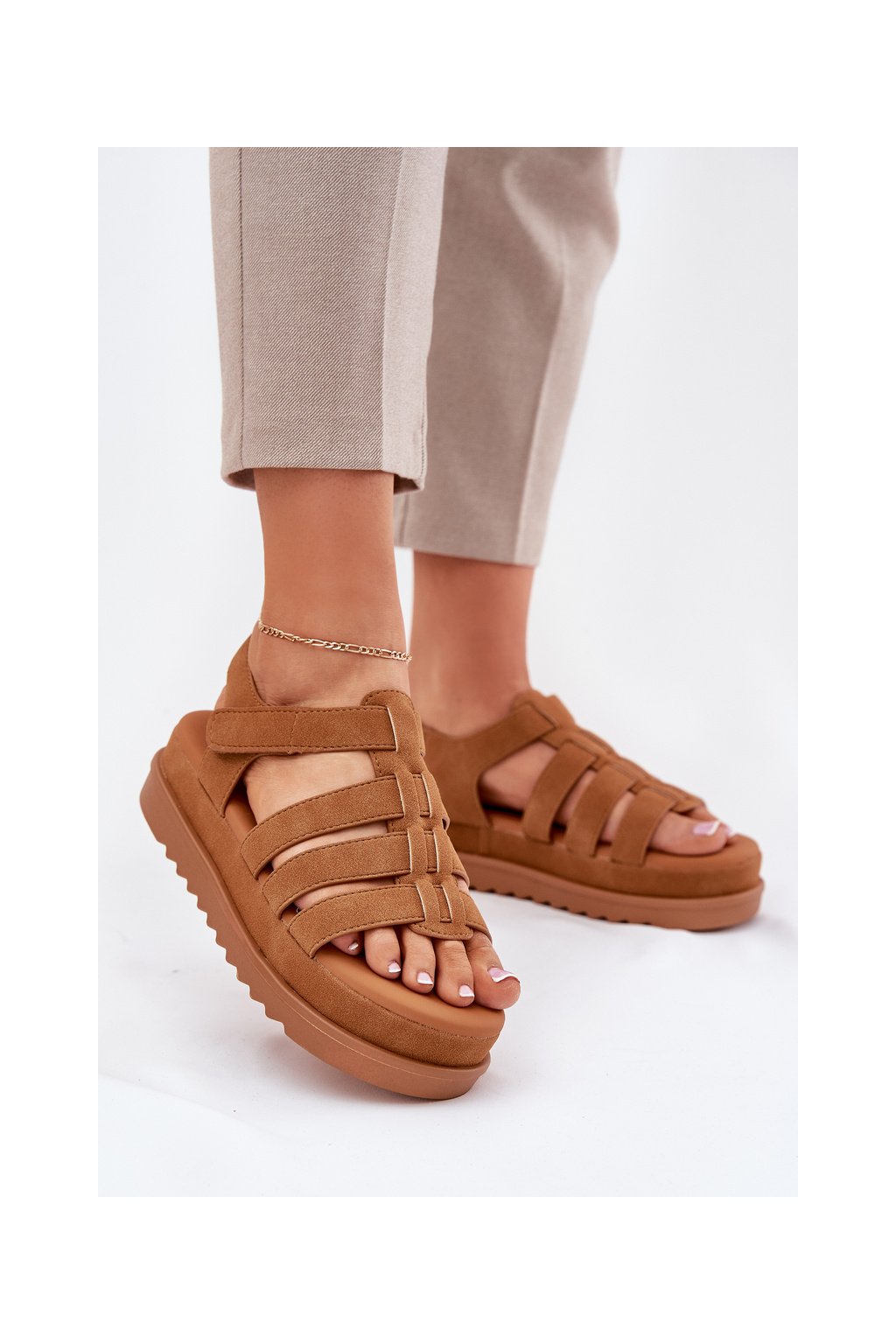 Dámske camelové sandále z eko semišu na platforme s rovnou podrážkou PL363 CAMEL