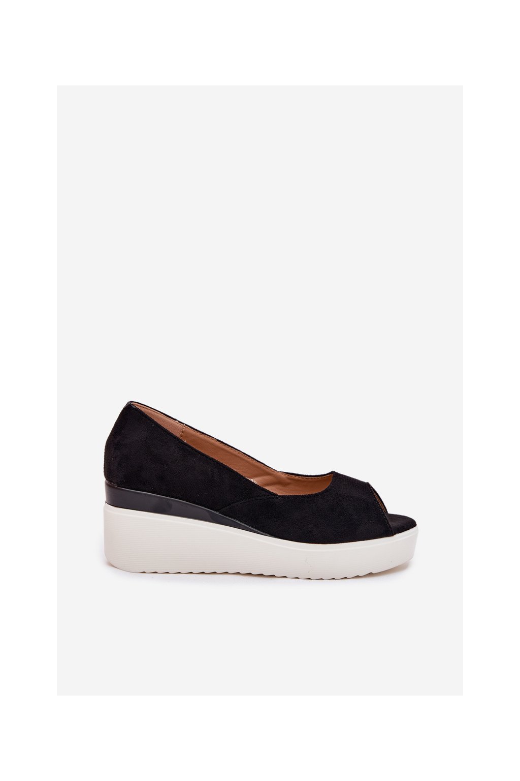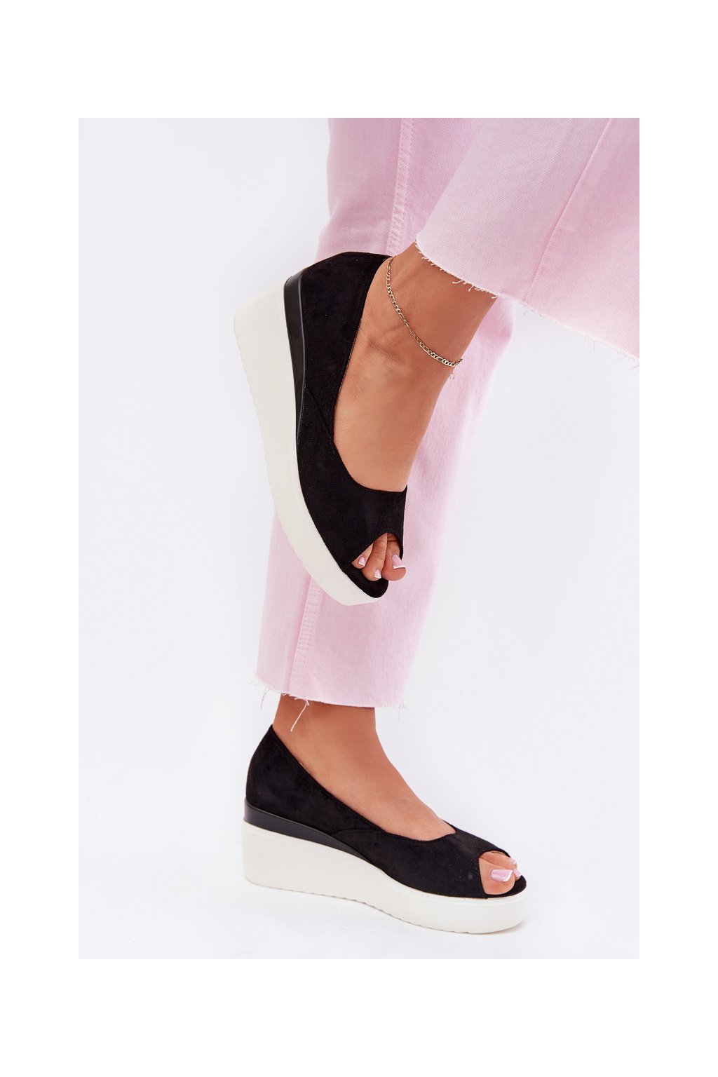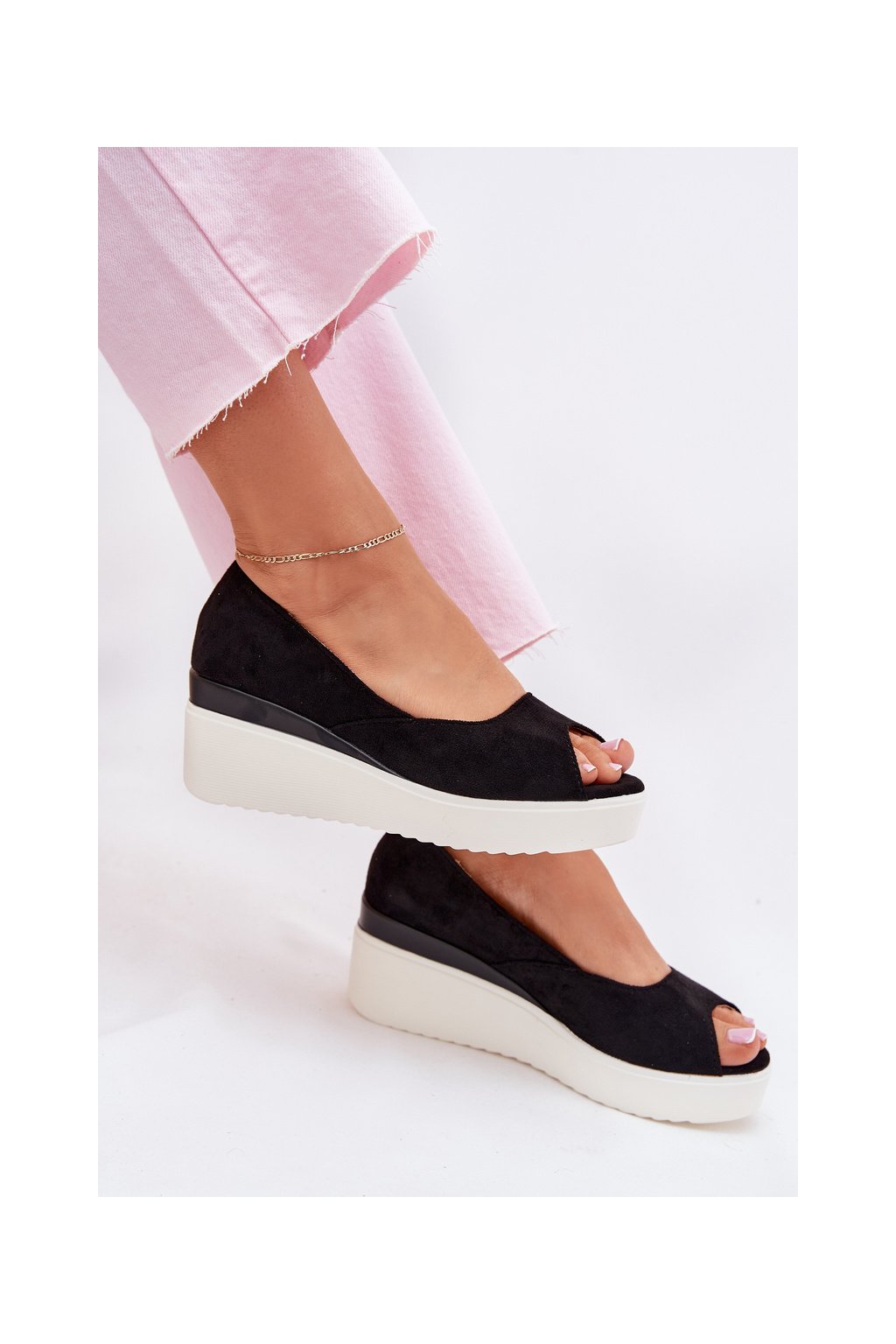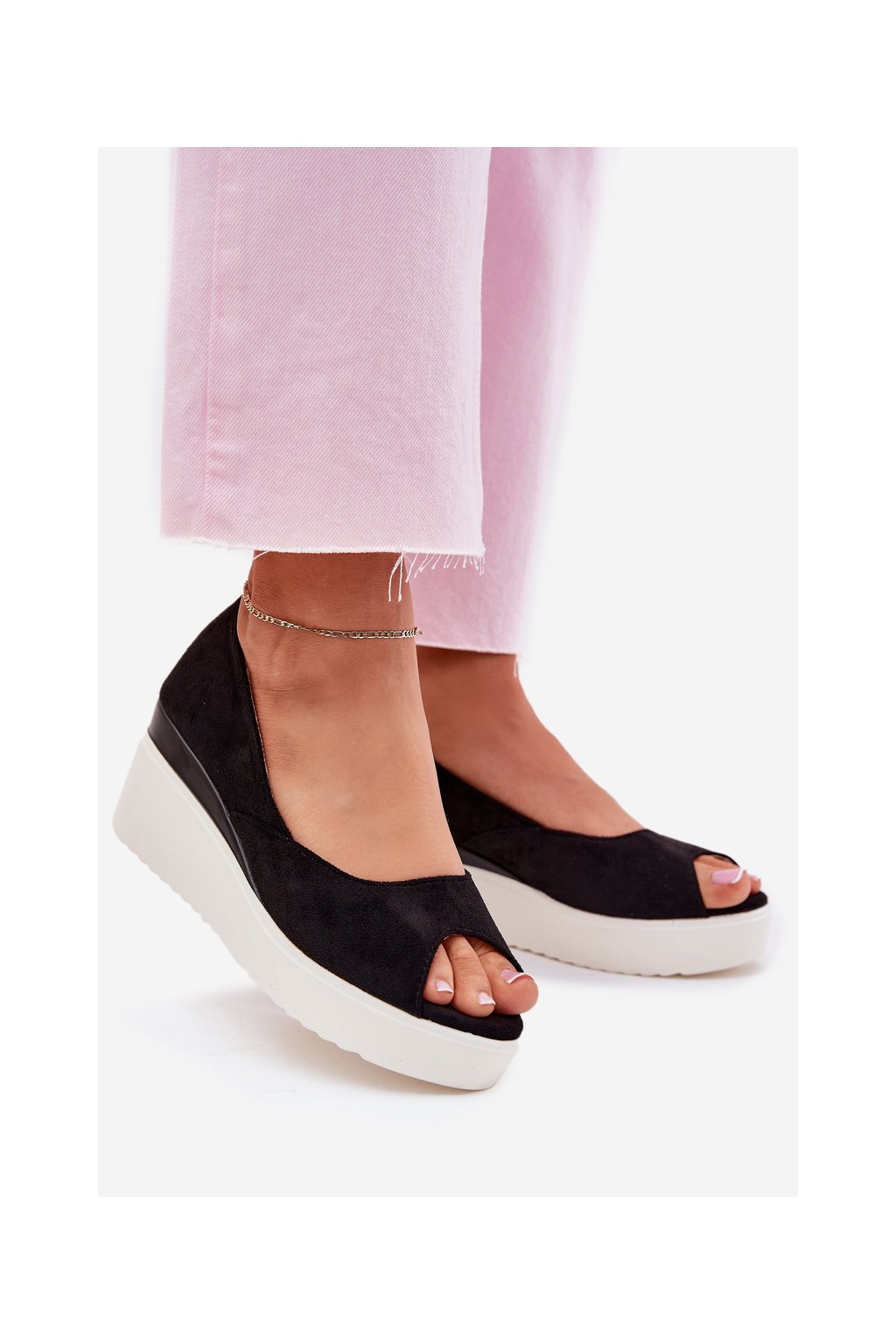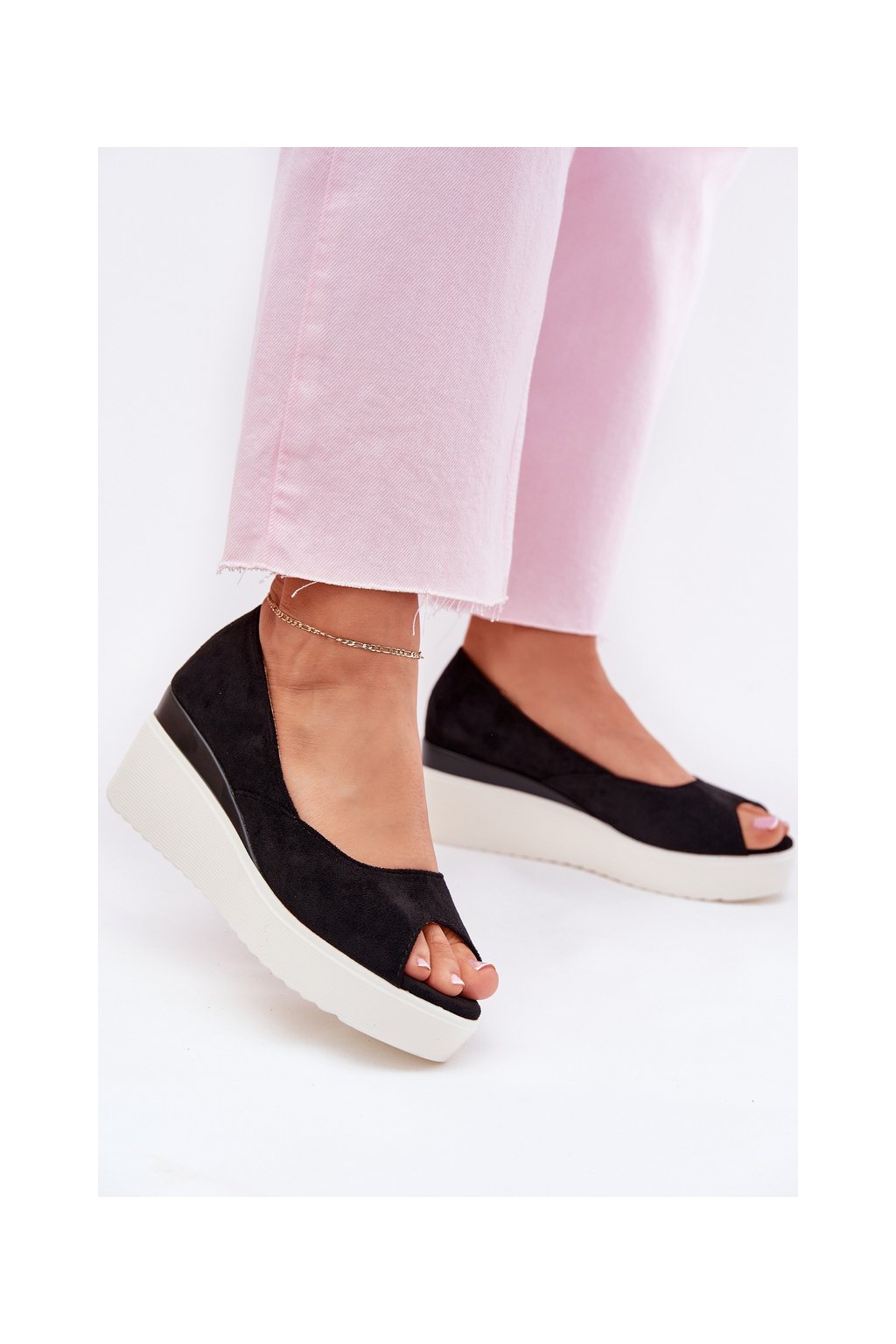 Čierne dámske sandále z eko semišu na platforme s rovnou podrážkou, kód produktu JH528P BLACK