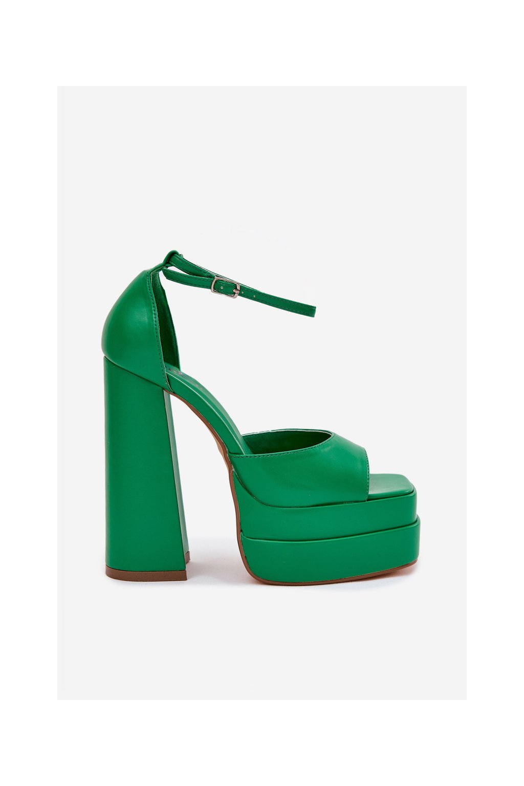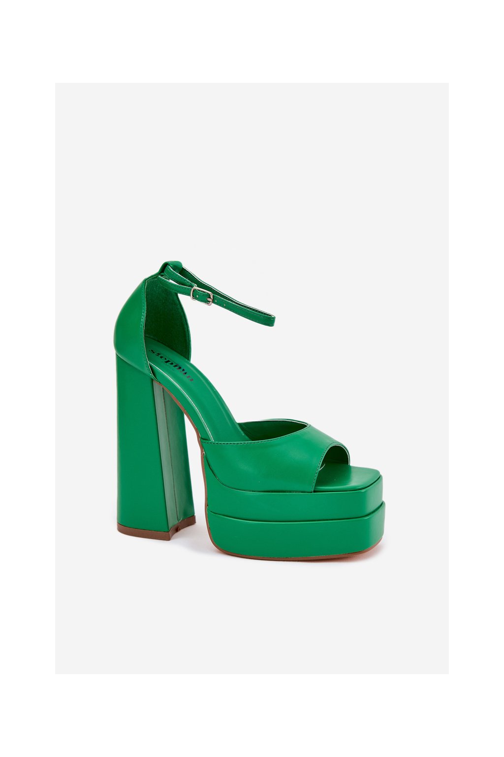 Zelené dámske sandále na stĺpovom podpätku a platforme s eko kožou, kód produktu P-1242 GREEN