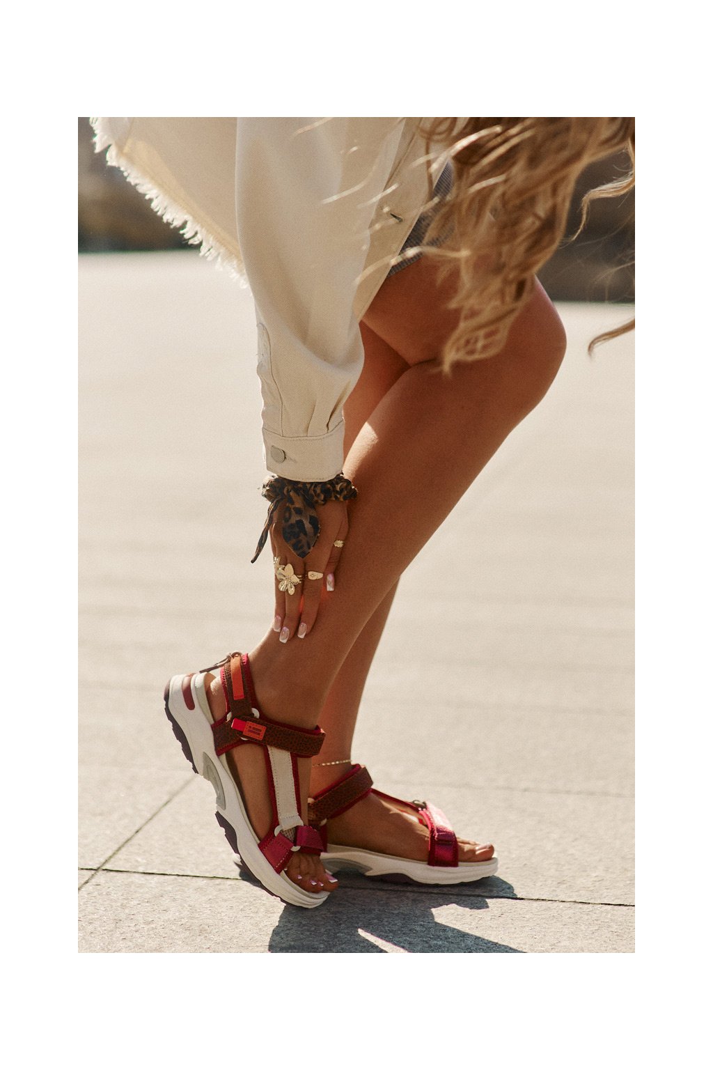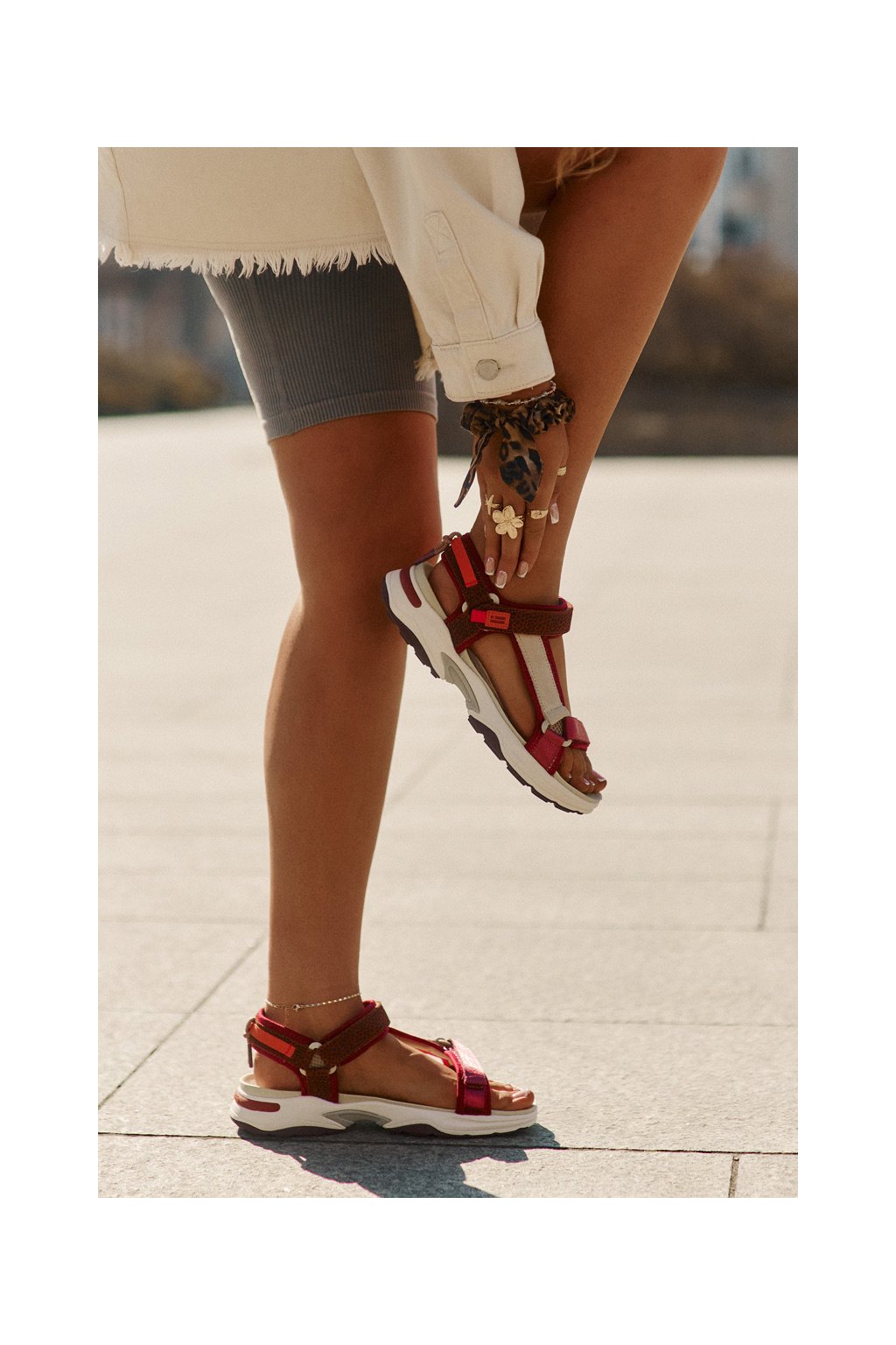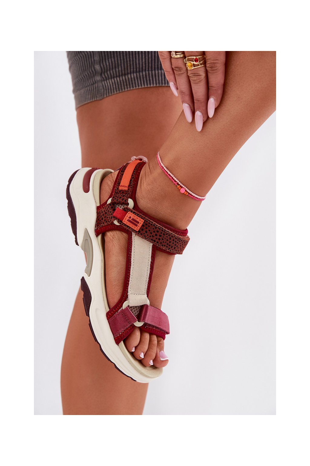 Dámske červené sandále na suchý zips s rovnou podrážkou D.Franklin DFSH406003 BURGUNY