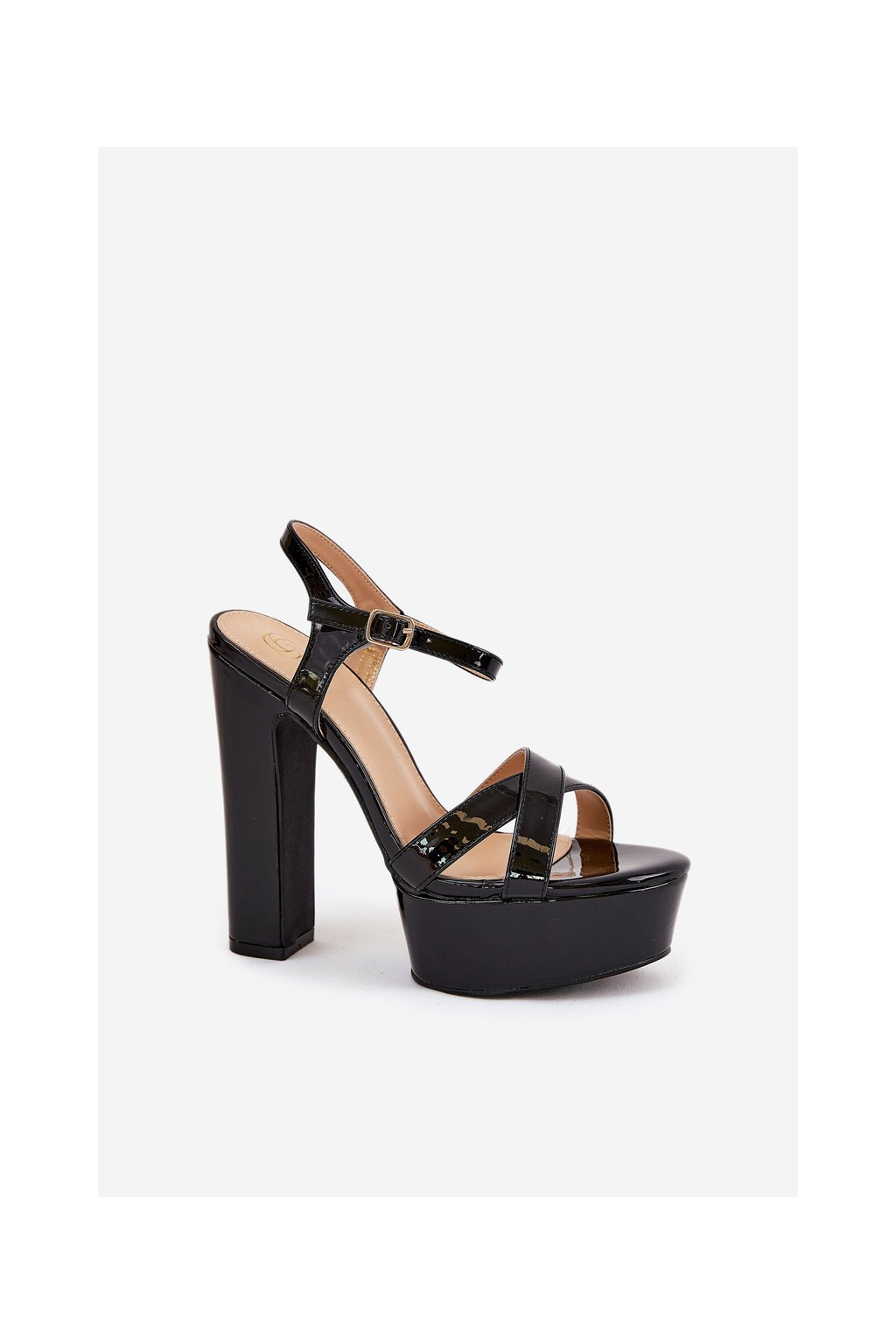 Čierne dámske lakované sandále na stĺpovom podpätku s platformou, kód produktu MVP353 BLACK