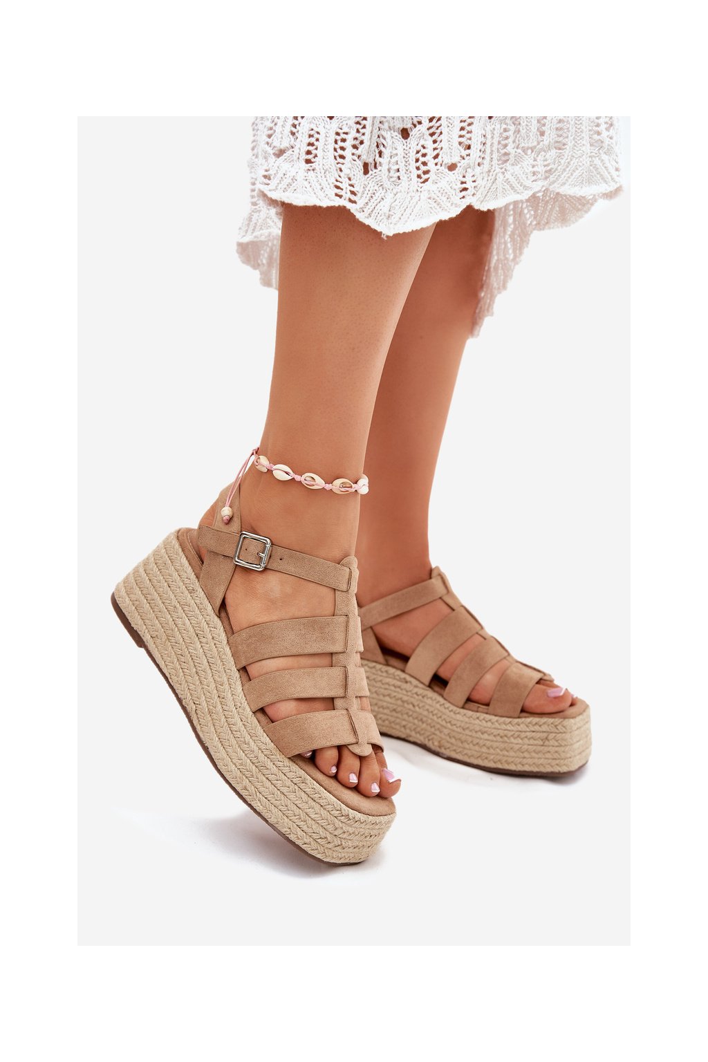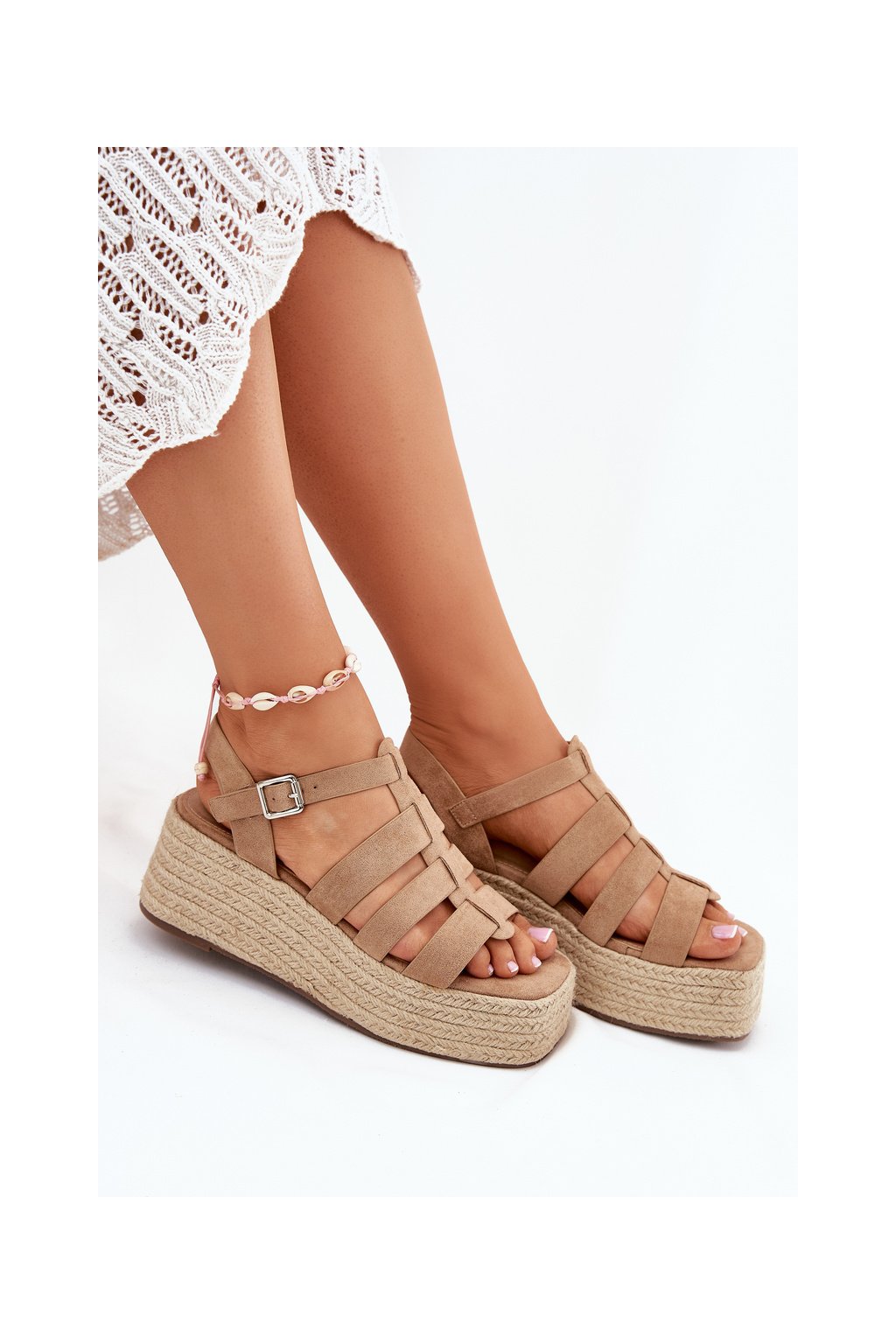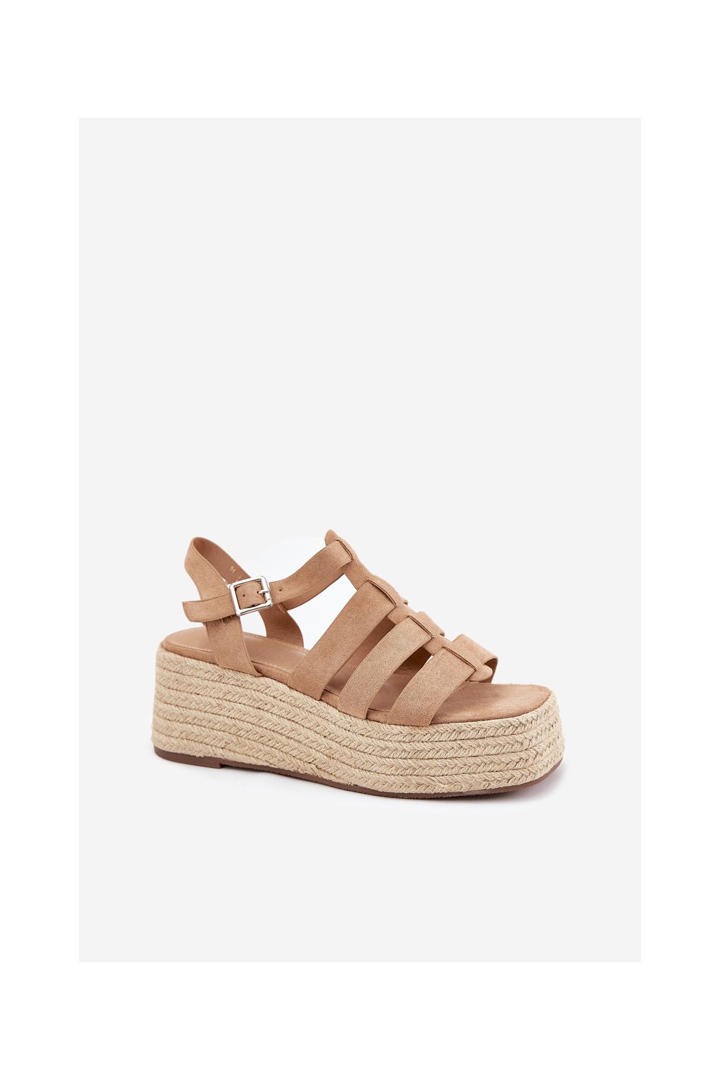 Dámske khaki semišové sandále na platforme s klinom, kód produktu 55-A16 KHAKI