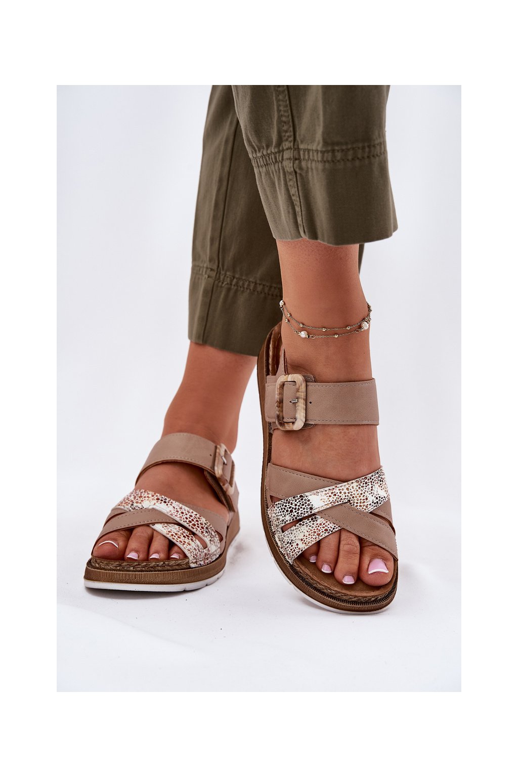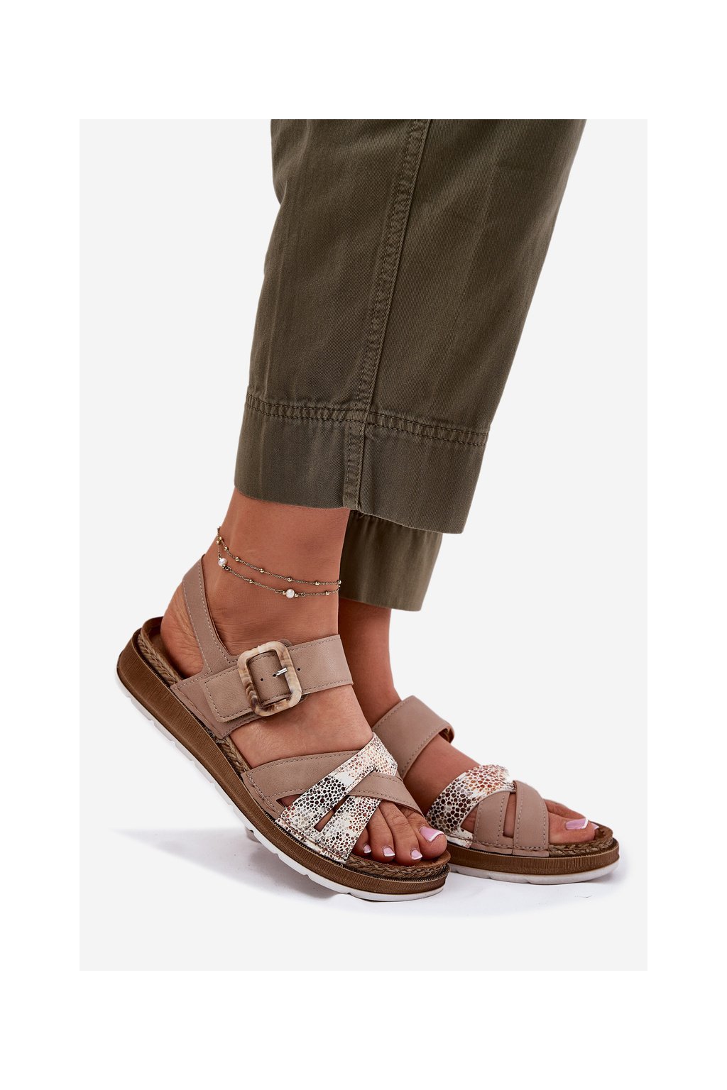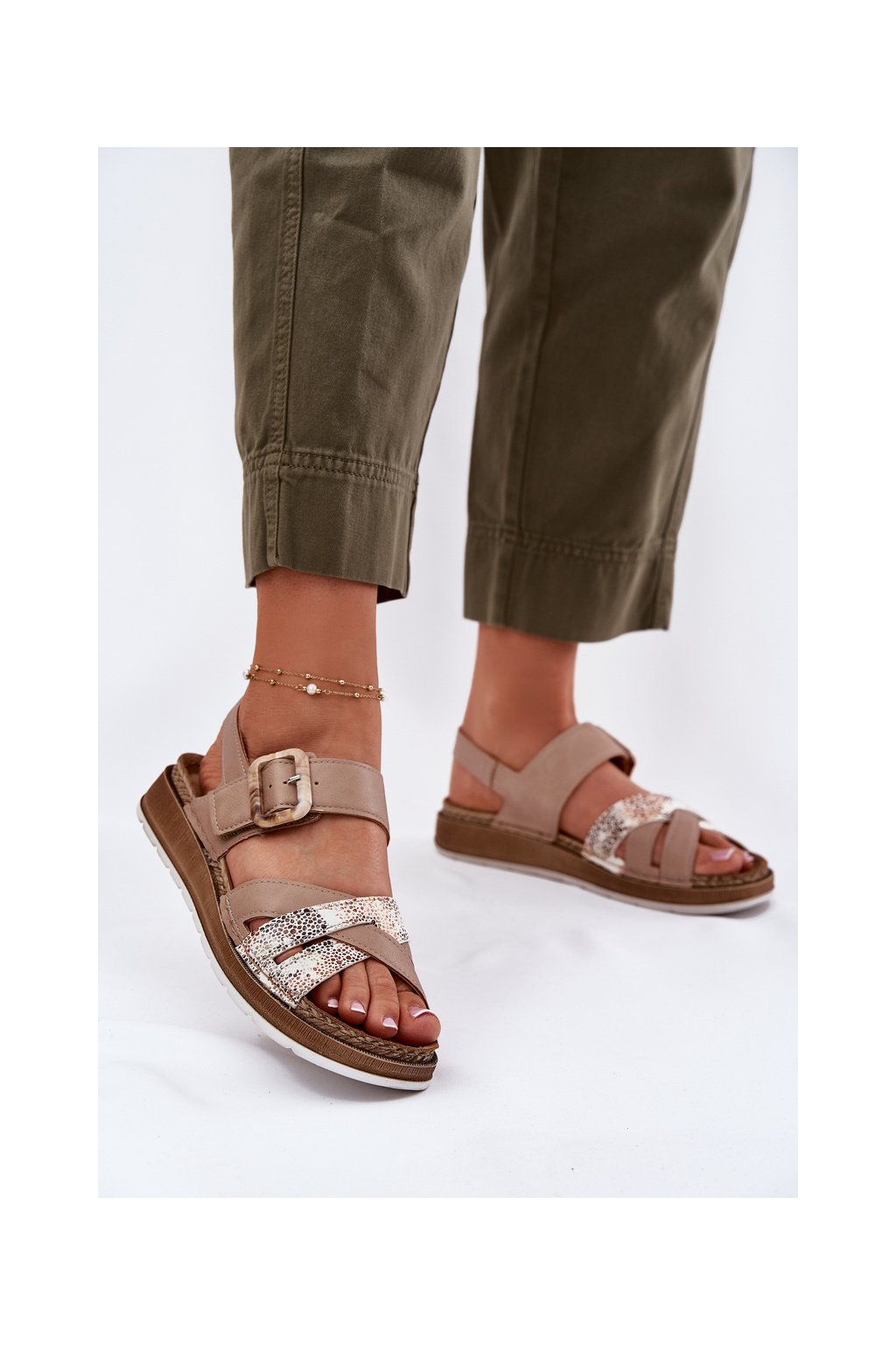 Béžové dámske sandále na platforme s prackou z eko kože, vnútorná časť z prírodnej semiše, kód produktu GS000056 PIASKOWY