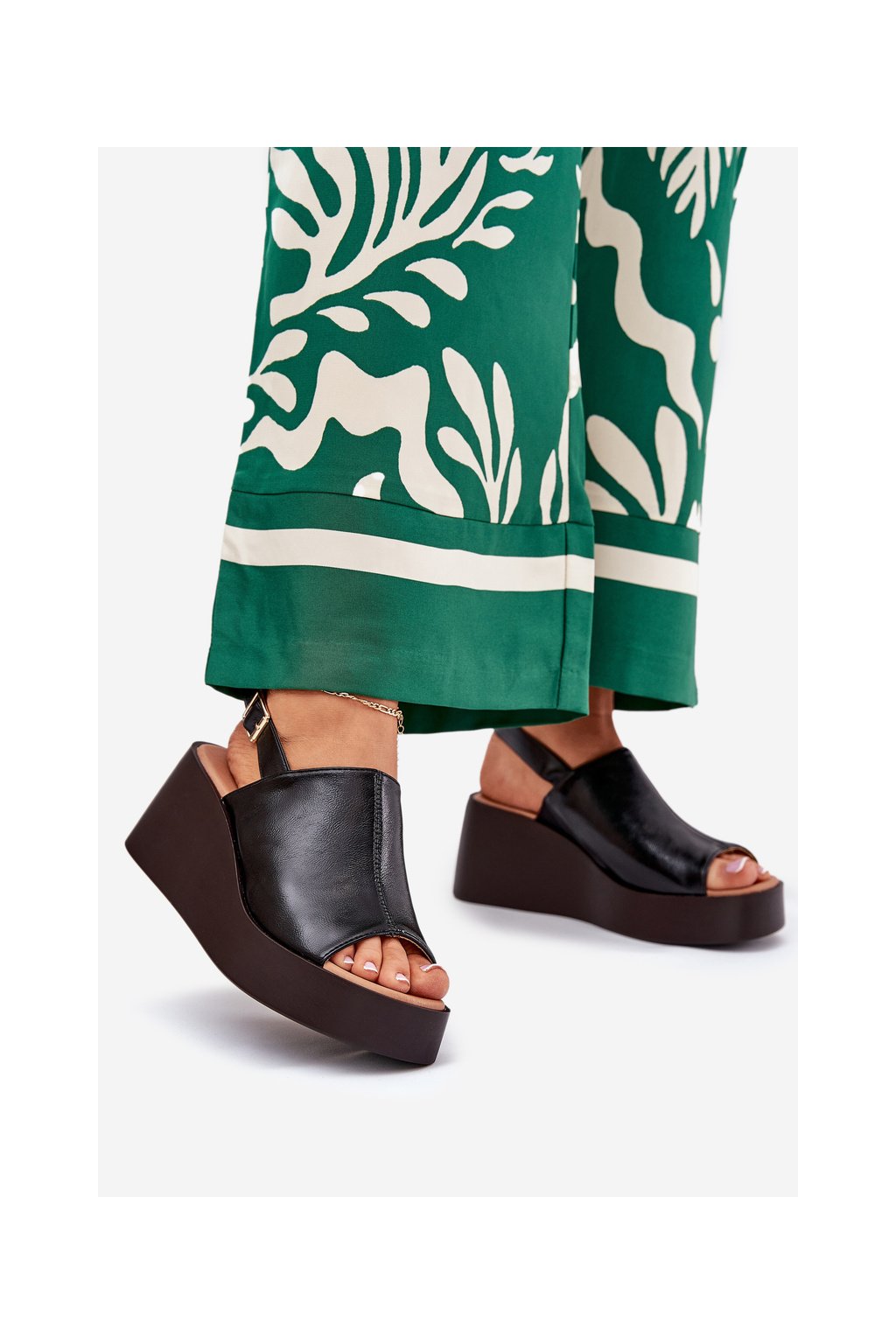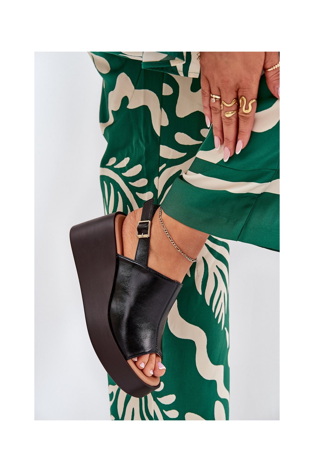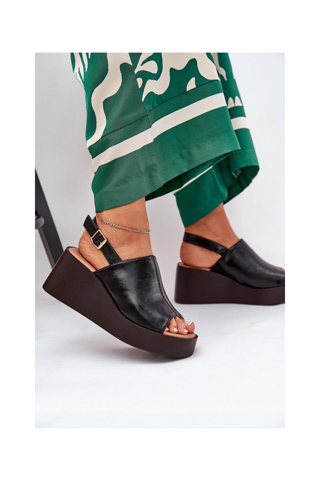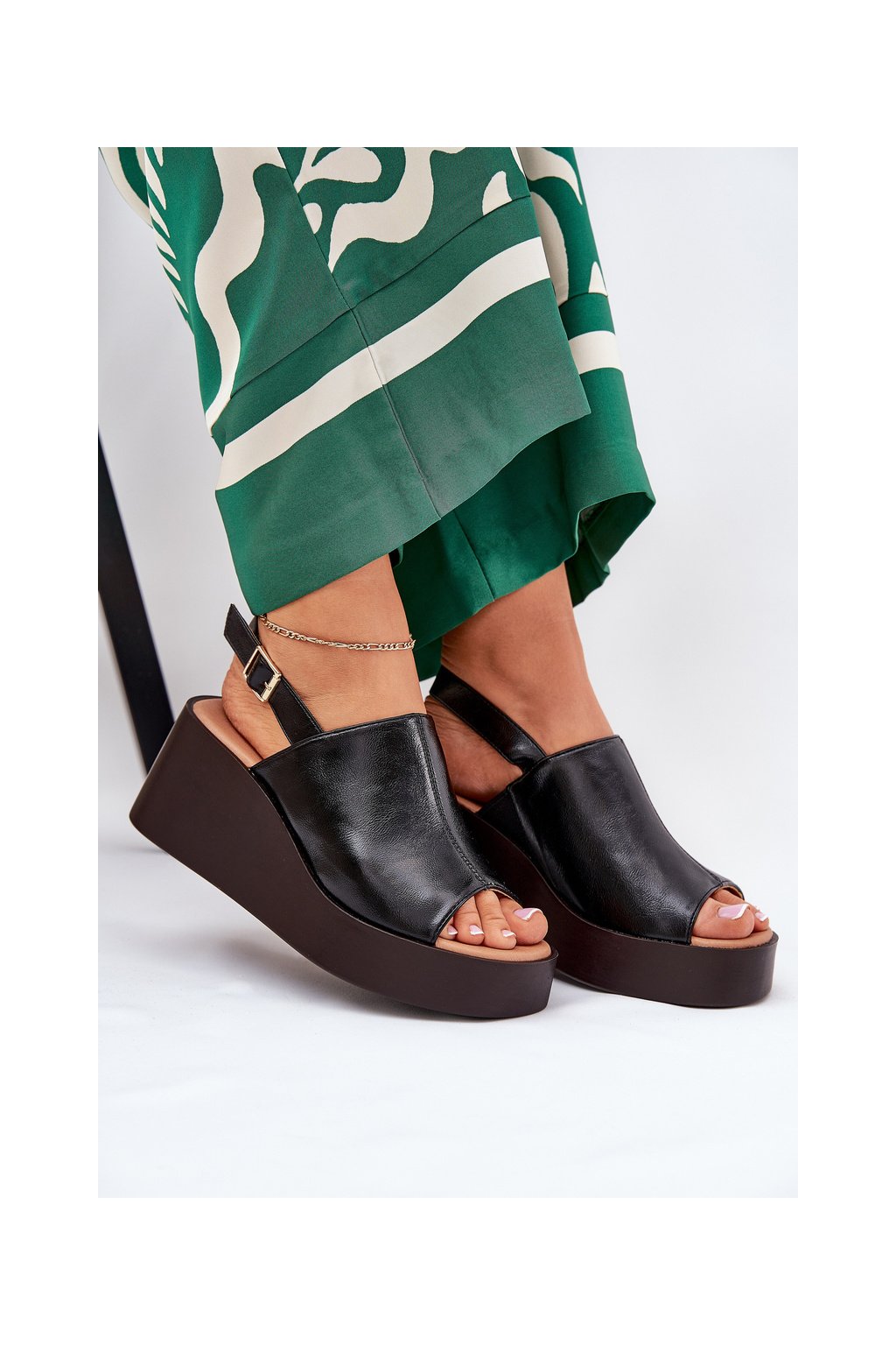 Čierne dámske sandále z eko kože na platforme a klinu, RMR24130-8 CZARNY