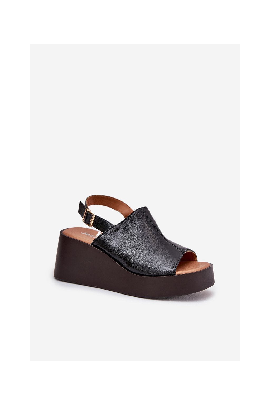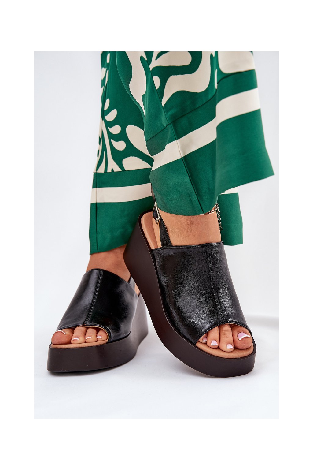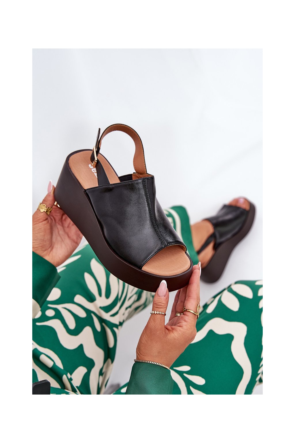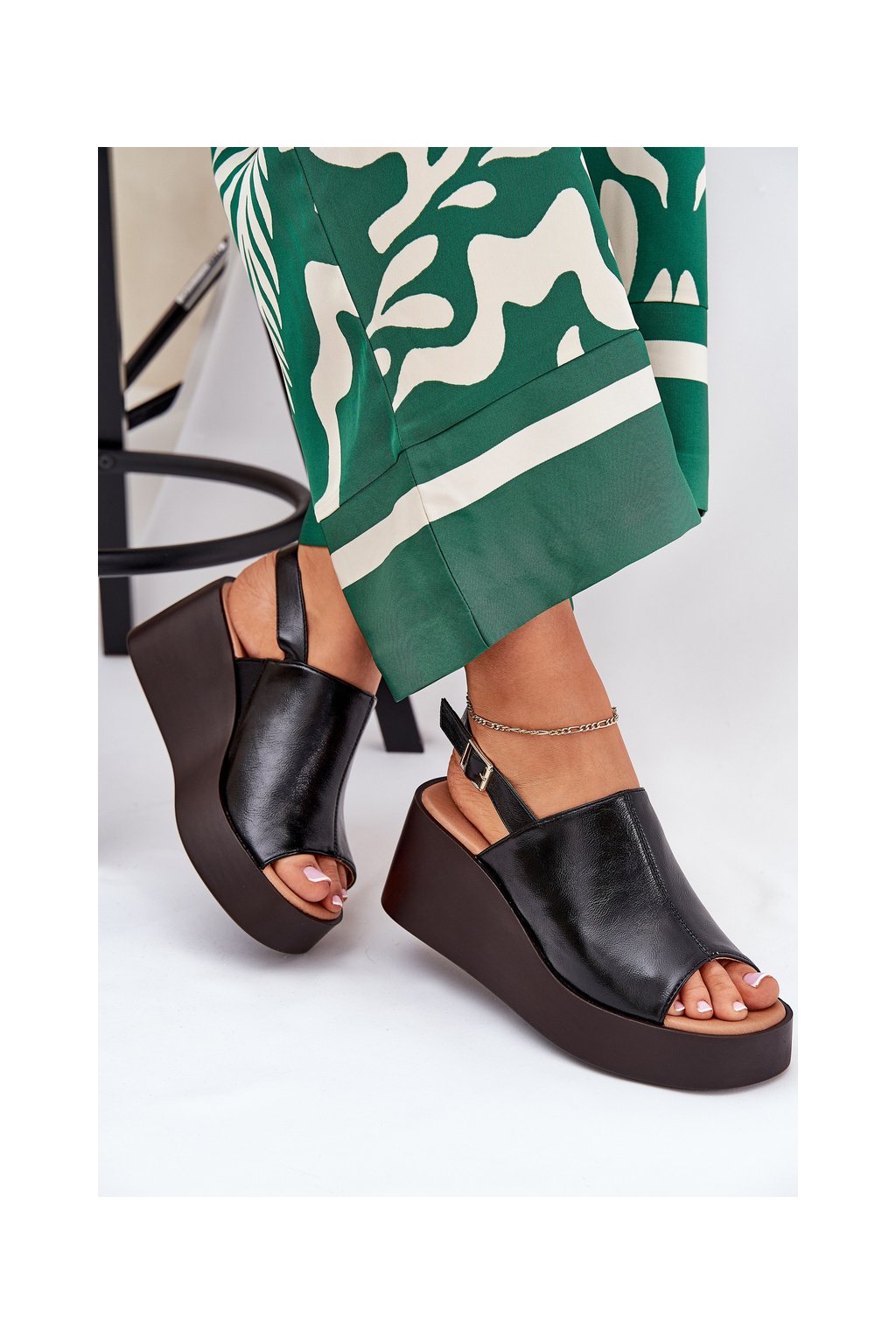Čierne dámske sandále z eko kože na platforme a klinu, RMR24130-8 CZARNY