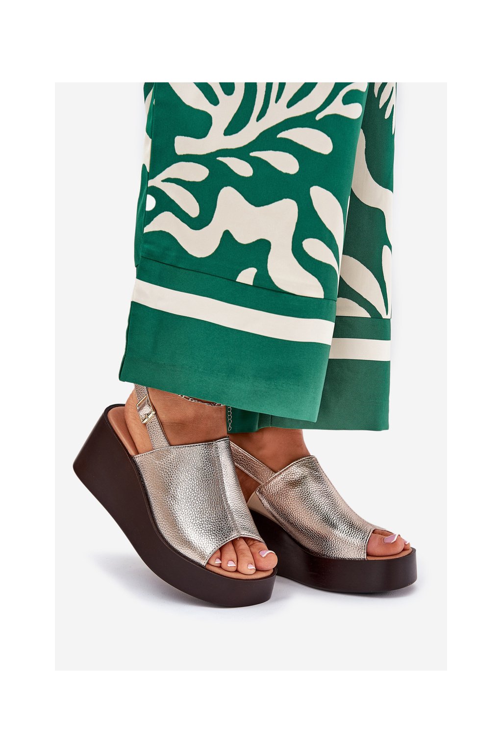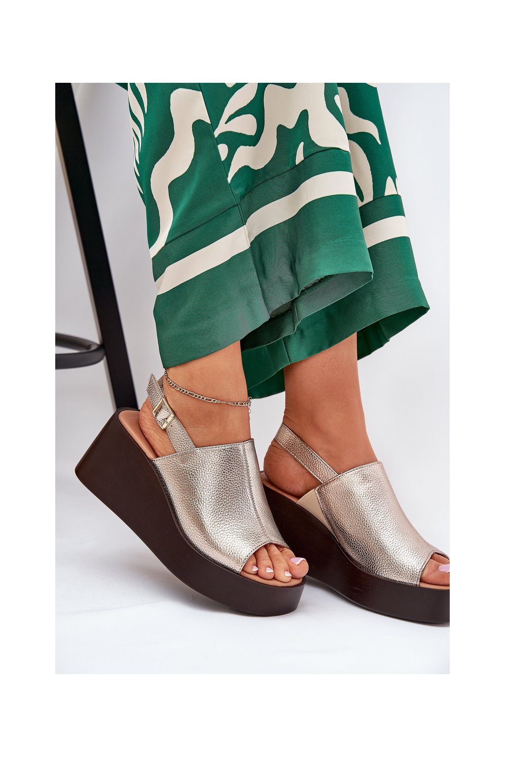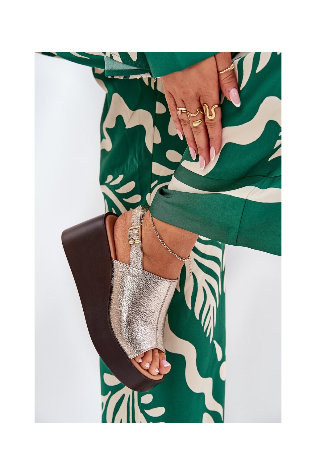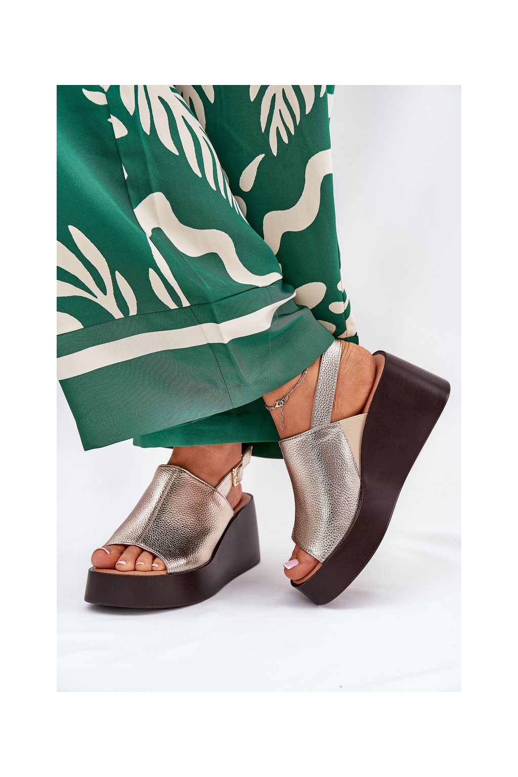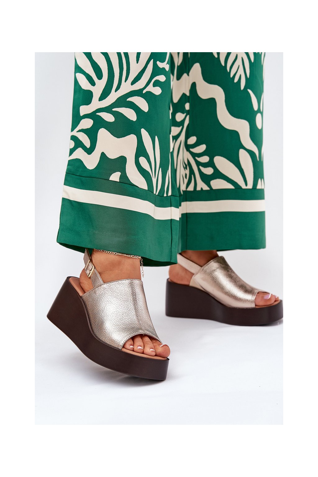 Žlté dámske sandále z ekokože na platforme a klinu, RMR24130-8 ZŁOTY