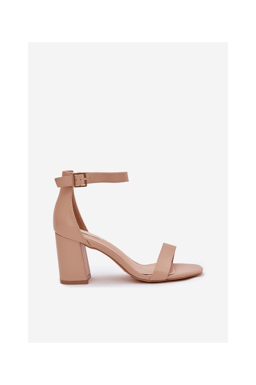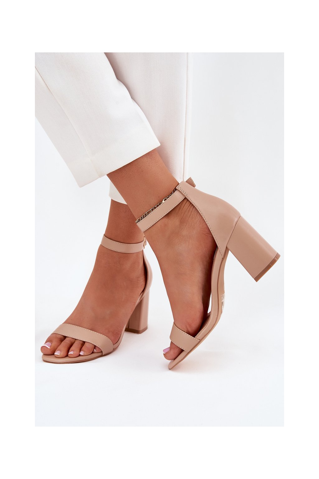 Béžové dámske sandále z eko kože na stĺpovom podpätku s prackou, kód produktu B-833 BEIGE