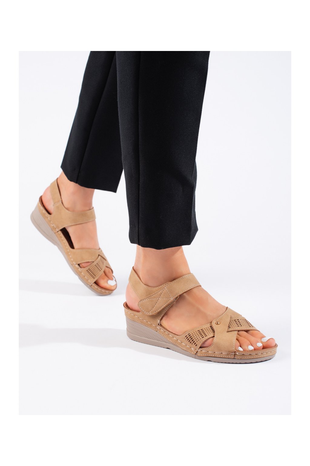 Dámské sandály na koturnie - styl a pohodlí v barvě camel