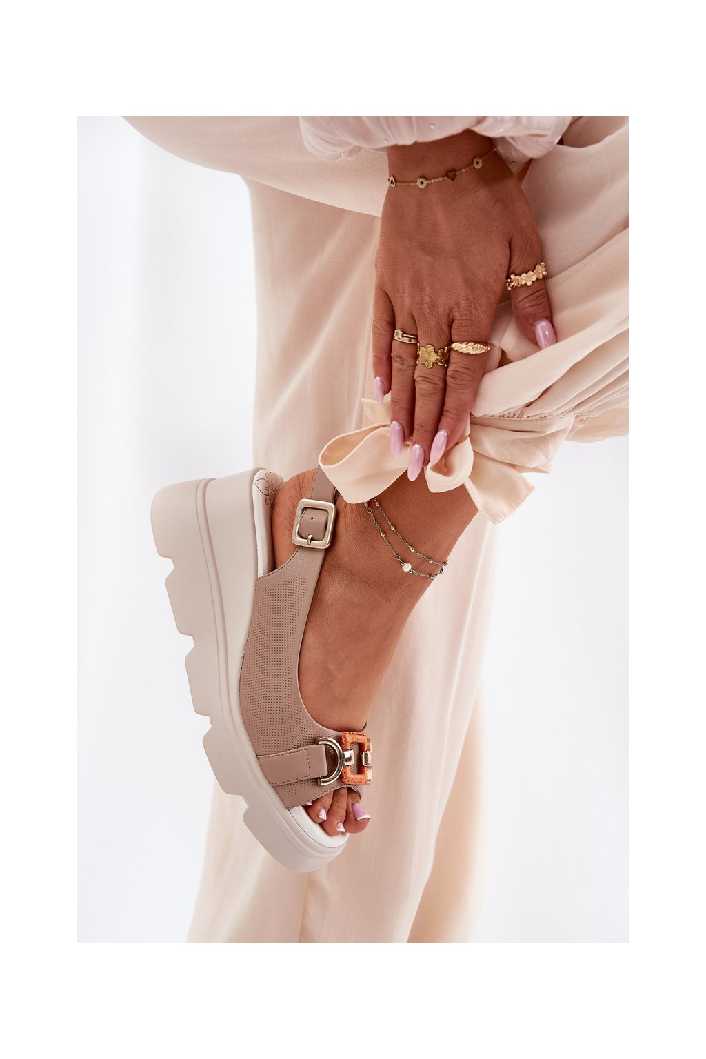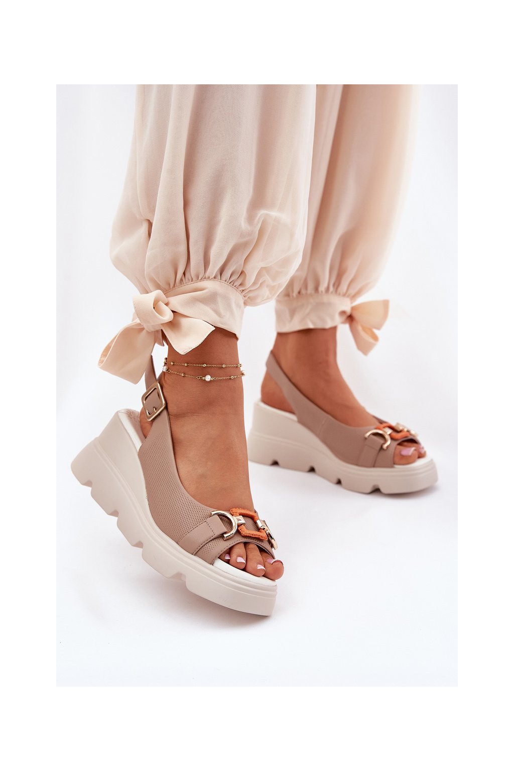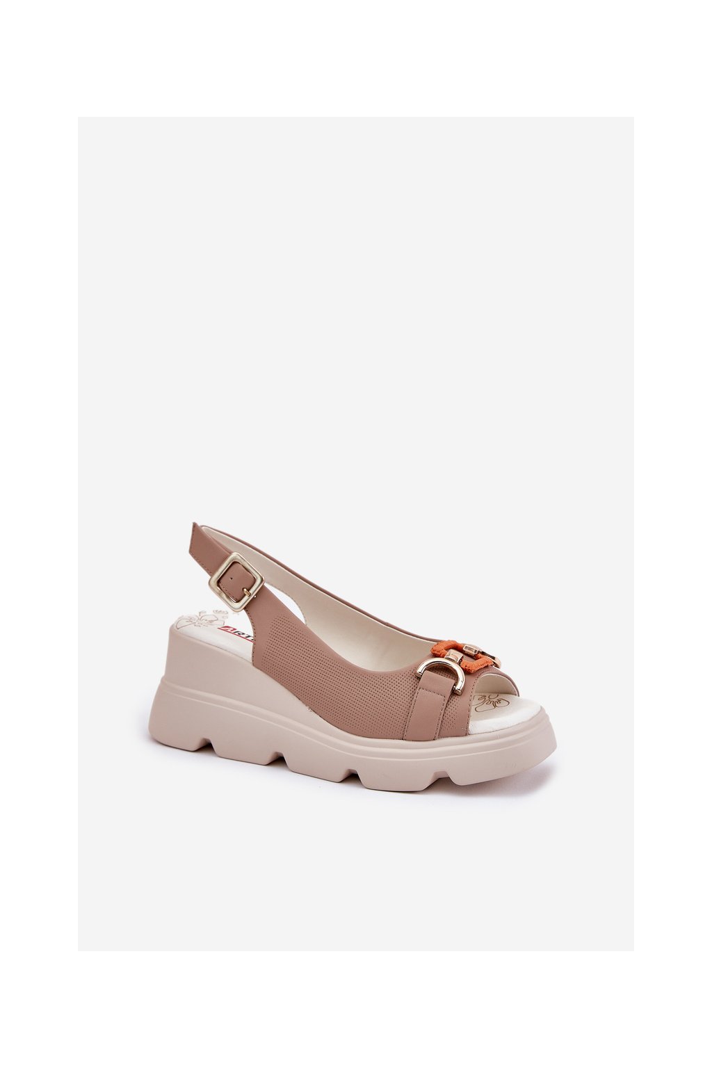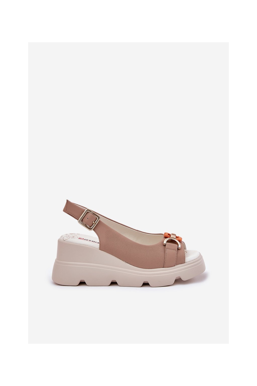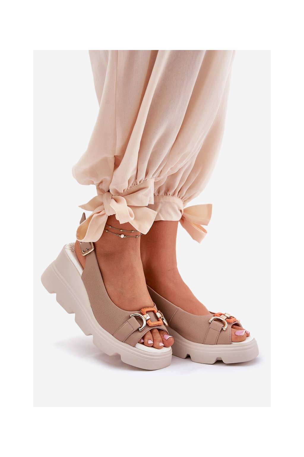 Dámske kožené sandále na platforme a klinčeku s ozdobou, hnedé Artiker 56C2208 DK.APRICOR