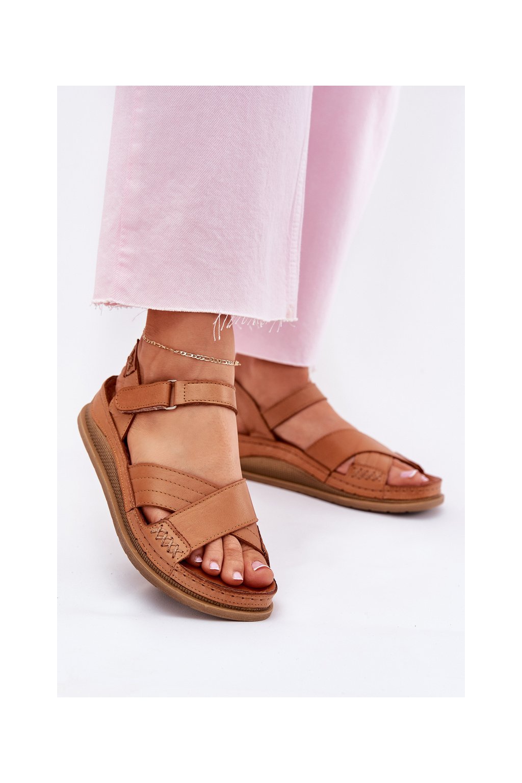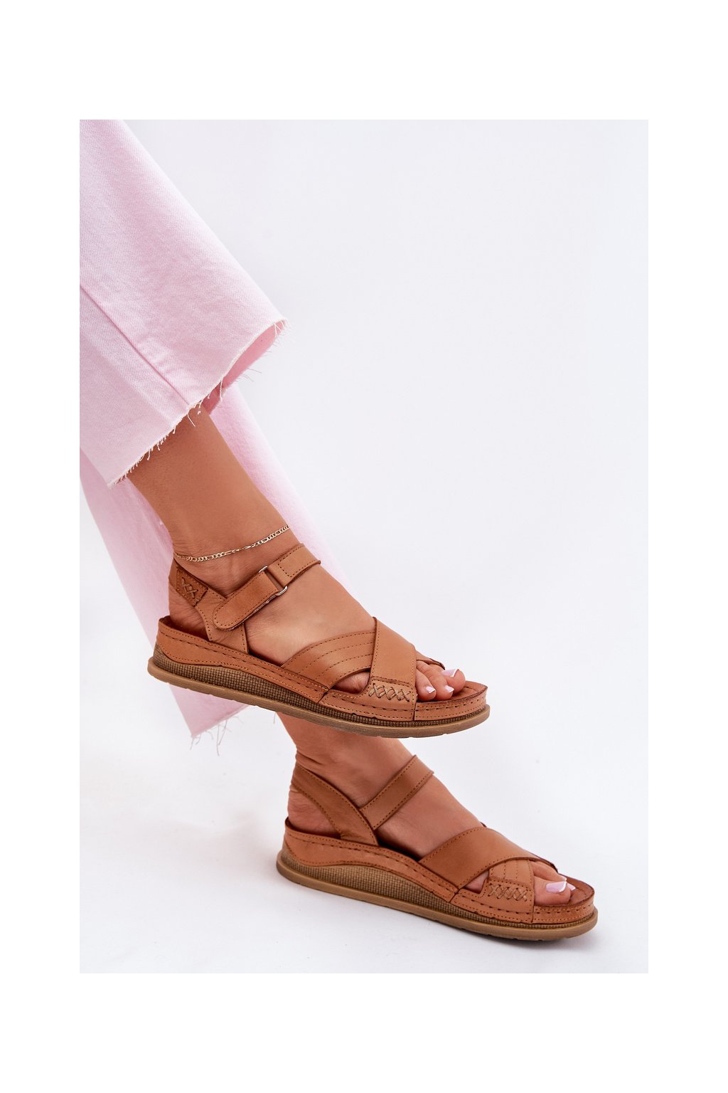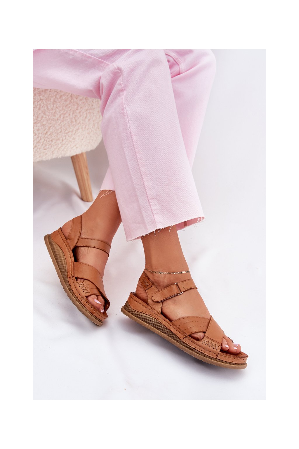 Hnedé dámske kožené sandále na platforme Maciejka L7064-04/00-1 BEŻ