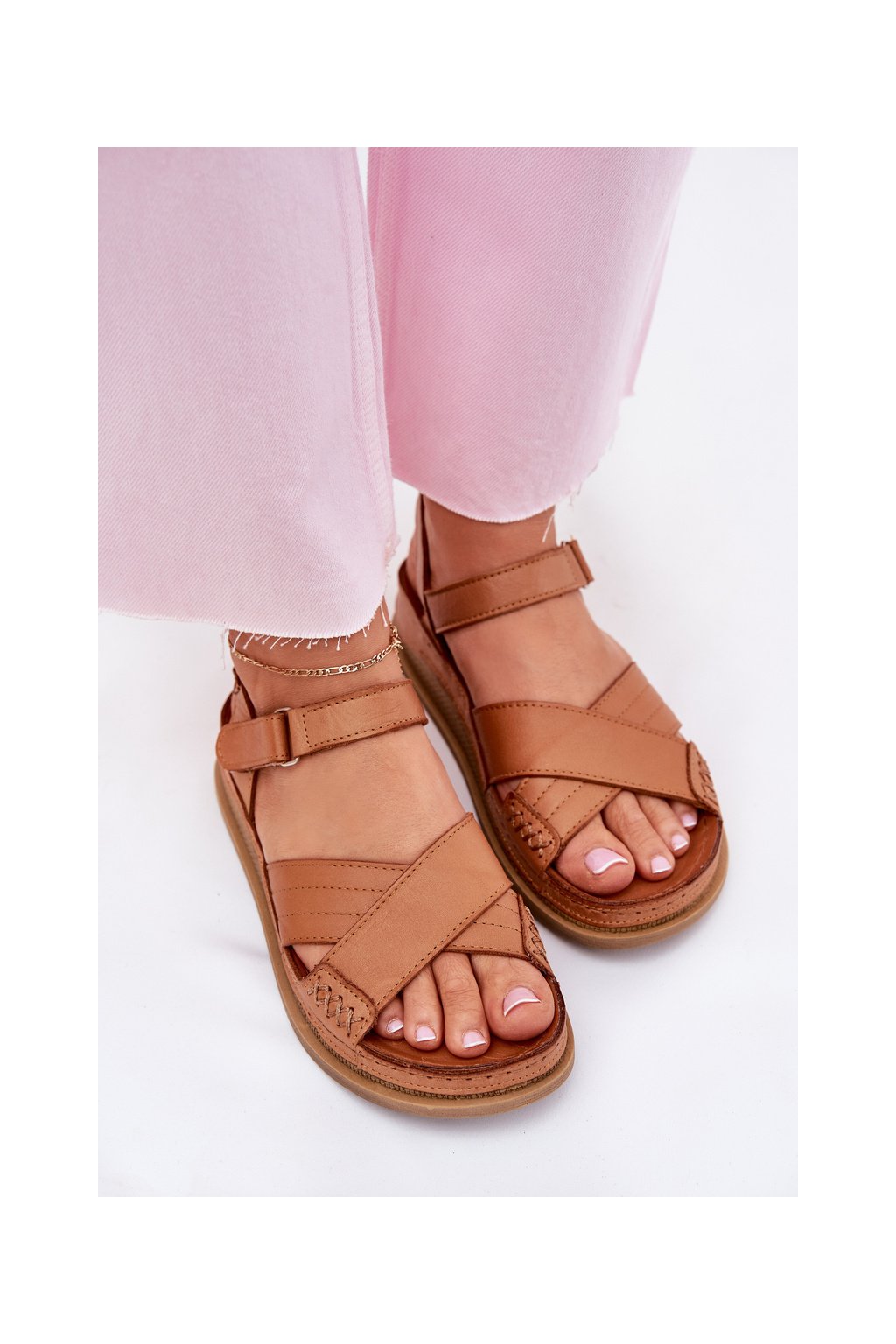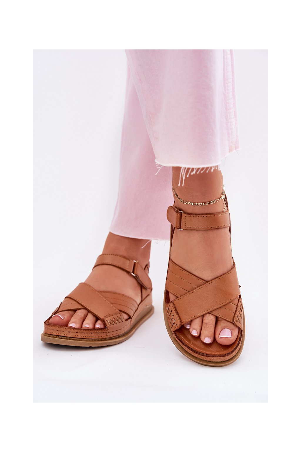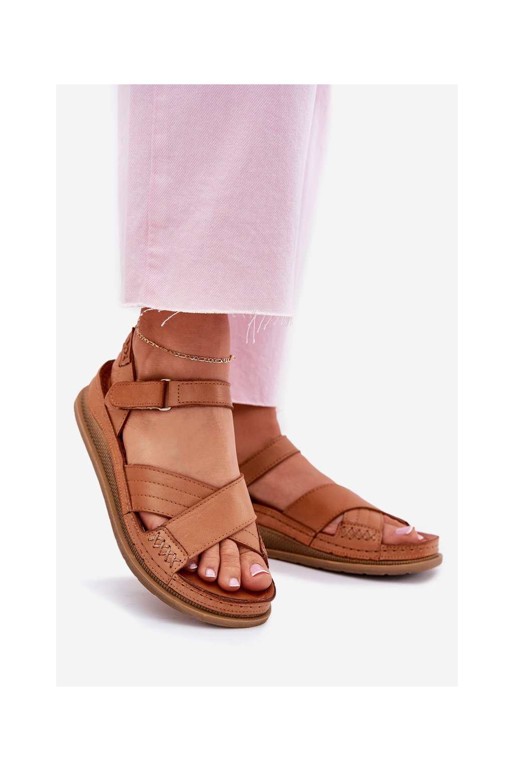 Hnedé dámske kožené sandále na platforme Maciejka L7064-04/00-1 BEŻ